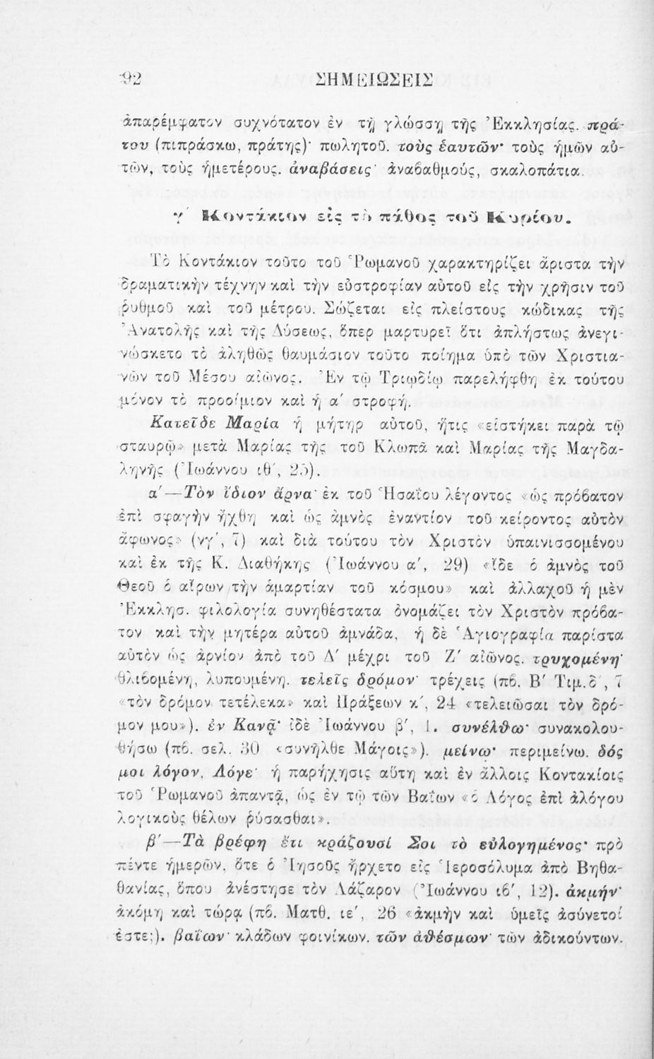 LDR 01124 2200217 4500 035 ## _a02-01614 040 ## _aΕλληνικό Λογοτεχνικό και Ιστορικό Αρχείο 041 ## _ael 100 ## _aΕμμανουήλ Γ. Παντελάκης 110 ## _a1929 ΠΑΝ 245 0# _aΚοντάκια και κανόνες της εκκλησιαστικής ποιήσεως : προς χρήσιν των μαθητών της Γ΄ τάξεως των Γυμνασίων 250 ## _a5η Έκδοση 260 ## _aΑθήνα _bΓεώργιος Χ. Κορνάρος _c1929 300 ## _a132 520 ## _aΣχολικό εγχειρίδιο Θρησκευτικών Γ΄ Γυμνασίου που περιλαμβάνει εισαγωγή στην εκκλησιαστική ποίηση, κοντάκια, κανόνες και ερμηνευτικές σημειώσεις. 521 ## _aΓ' Γυμνασίου 522 ## _aΕλλάδα 546 ## _aΚαθαρεύουσα 563 ## _aΜαλακό Εξώφυλλο 583 ## _a20987/7-7-1928 650 #4 _aΚανόνες _aΚοντάκια _aΡωμανός