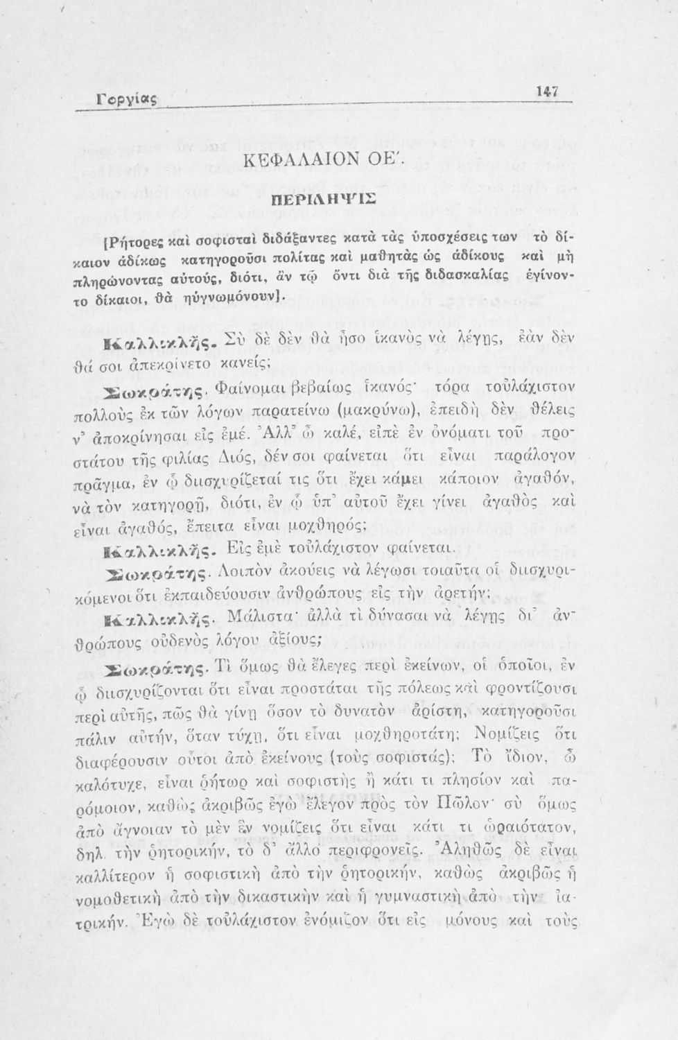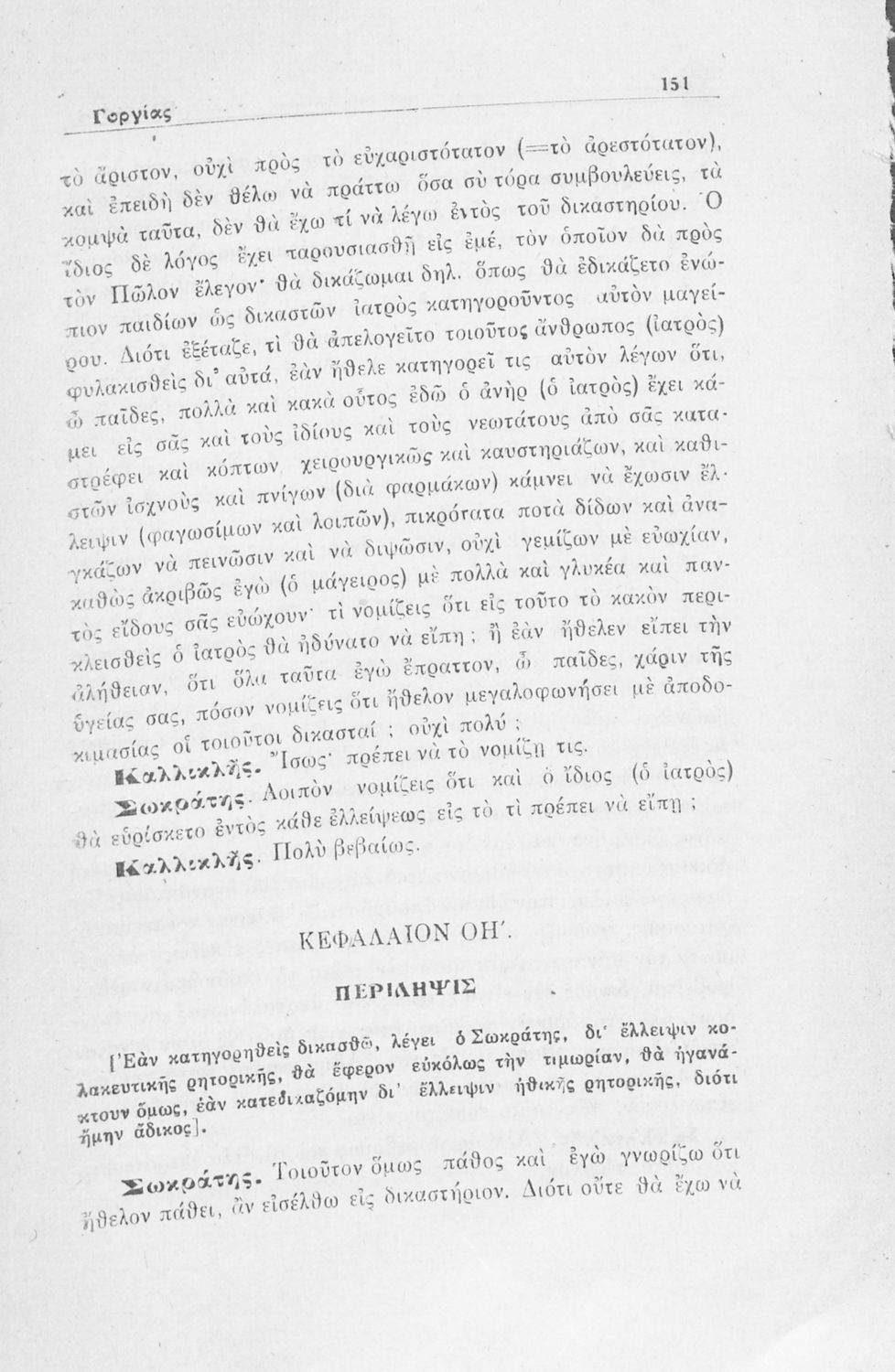 Πλάτωνος Γοργίας, μεταφρασθείς εις την νέαν ελληνικήν γλώσσαν, μετά εισαγωγής και περιλήψεων σχετικών, προς χρήσιν των μαθητών, των φοιτητών και παντός λογίου