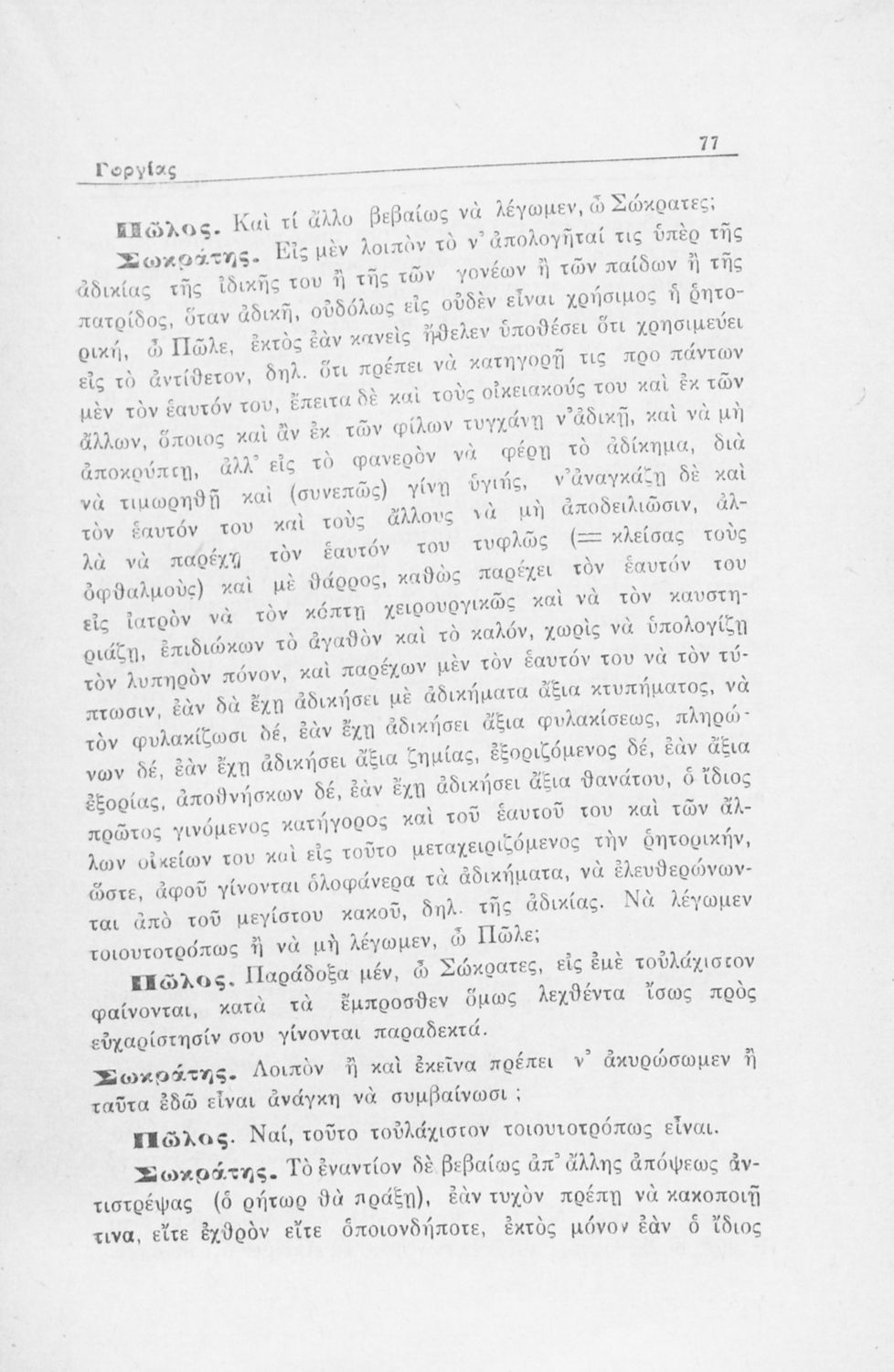 Πλάτωνος Γοργίας, μεταφρασθείς εις την νέαν ελληνικήν γλώσσαν, μετά εισαγωγής και περιλήψεων σχετικών, προς χρήσιν των μαθητών, των φοιτητών και παντός λογίου