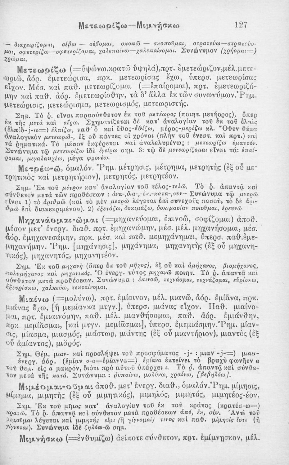 Μαθητικό βοήθημα Αρχαίων Ελληνικών για τα Ελληνικά Σχολεία, Παρθεναγωγεία και Γυμνάσια που περιλαμβάνει γραμματική της αρχαίας ελληνικής και κατάλογο ανωμάλων ρημάτων.