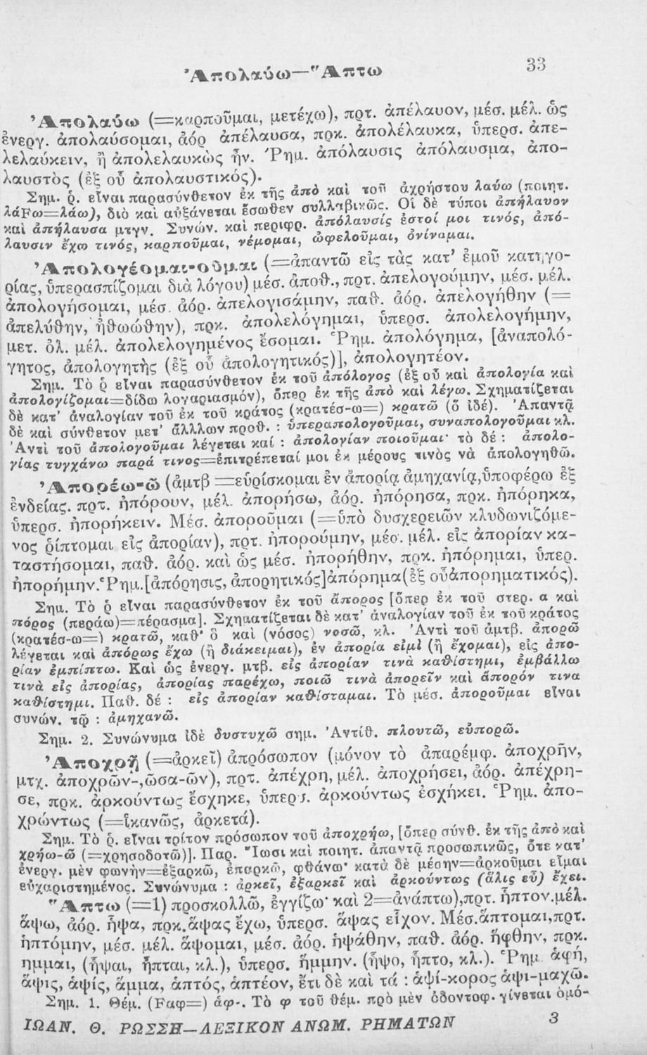 Λεξικόν ανωμάλων ρημάτων της αρχαίας ελληνικής γλώσσης μάλιστα δε της αττικής διαλέκτου, μετά ποικίλων και πρωτοτύπων τεχνολογικών σημειώσεων, προς χρήσιν των μαθητών των Ελληνικών σχολείων, Παρθεναγωγείων και Γυμνασίων
