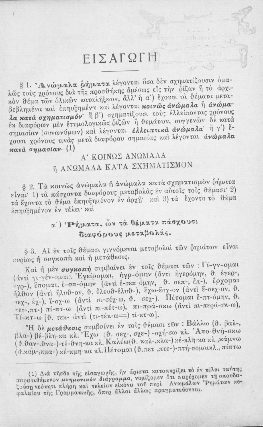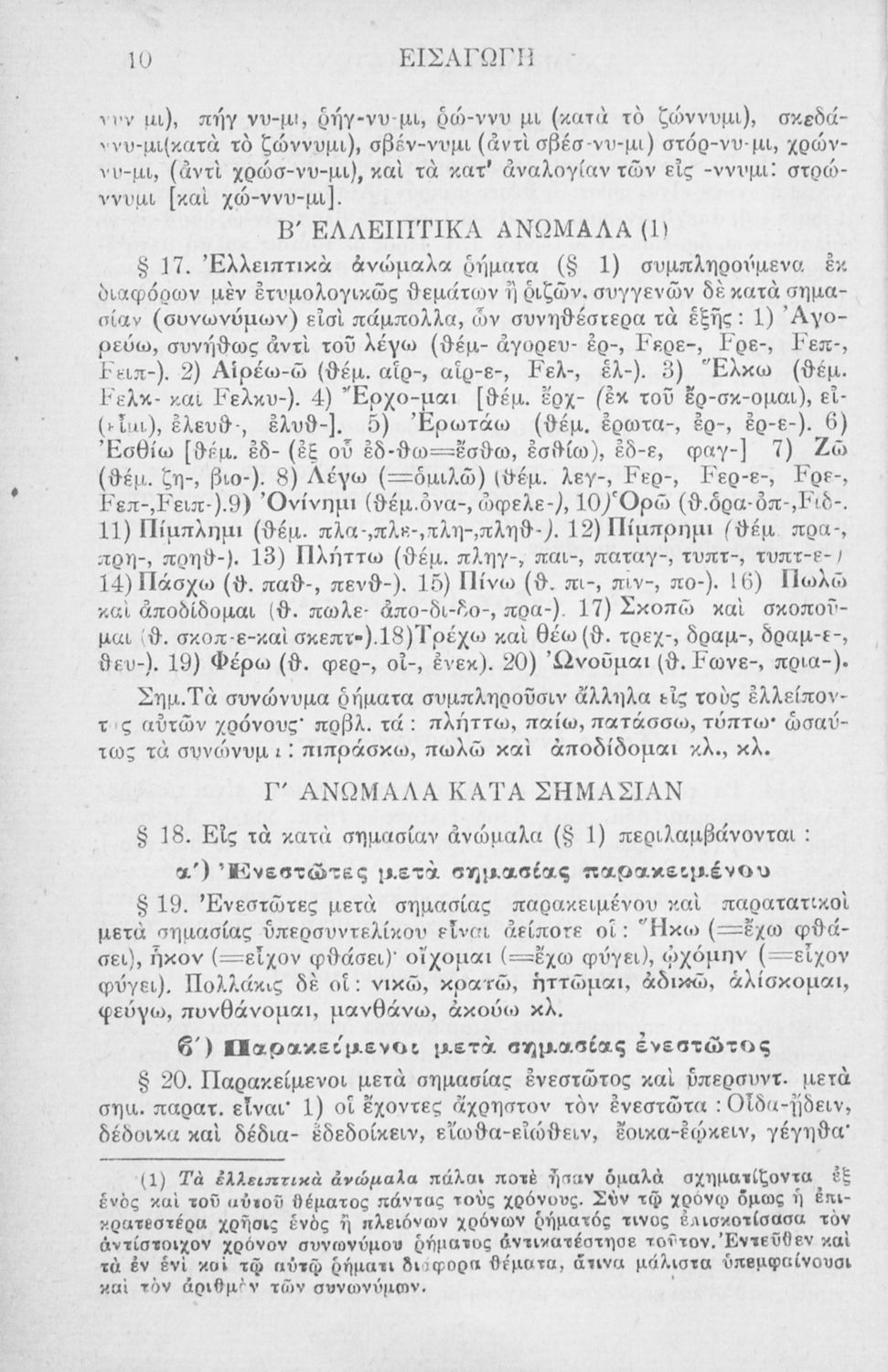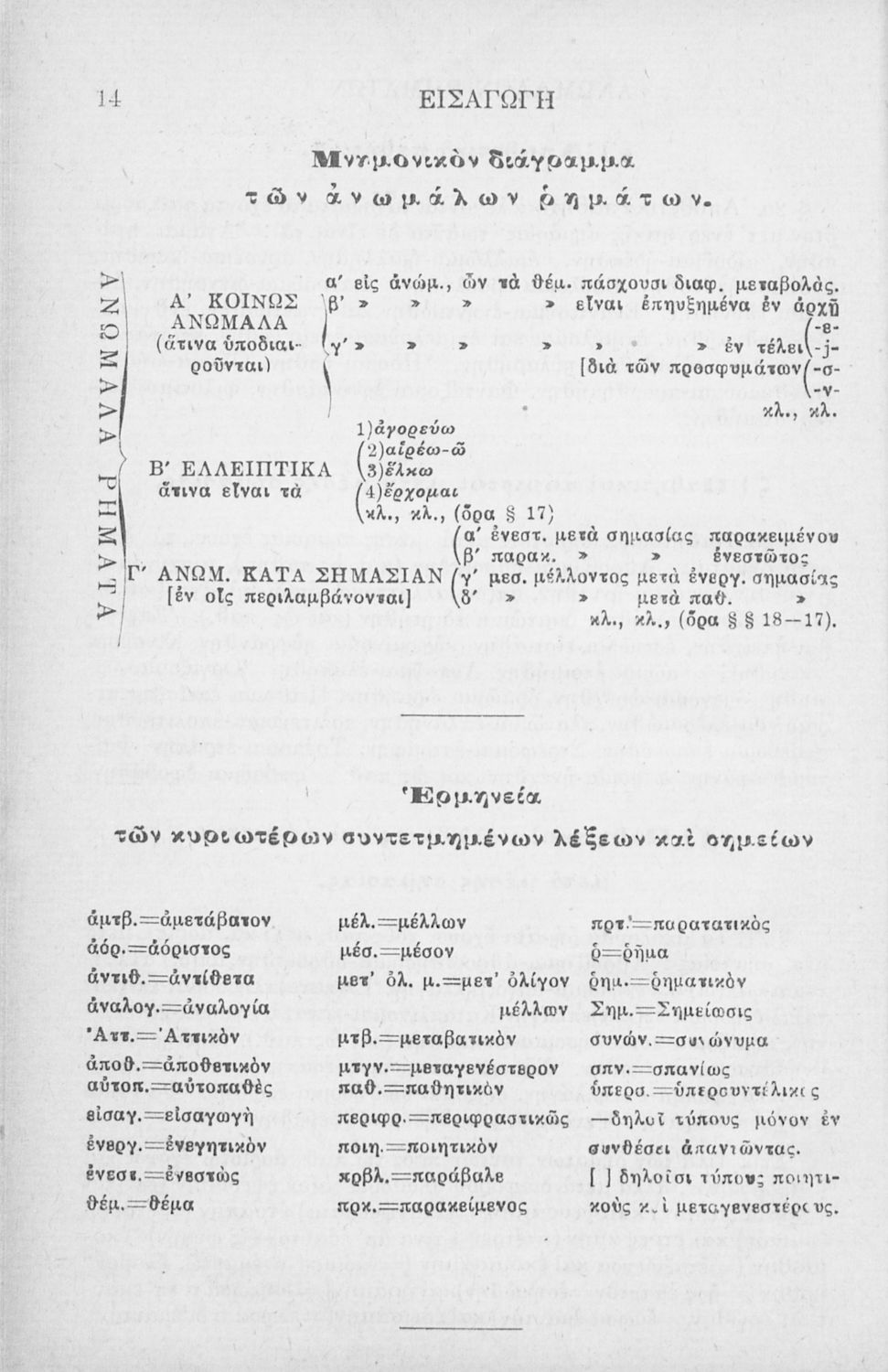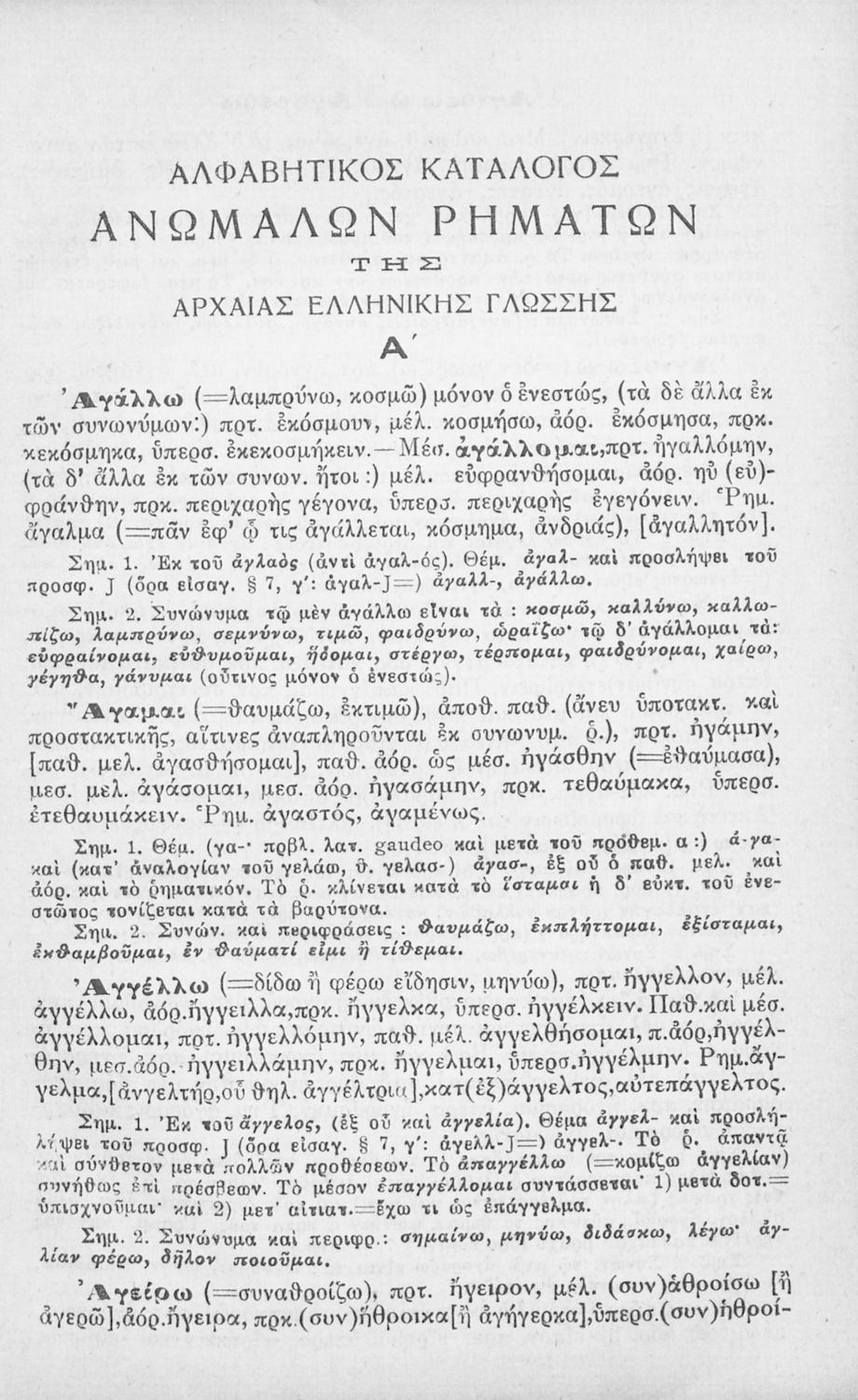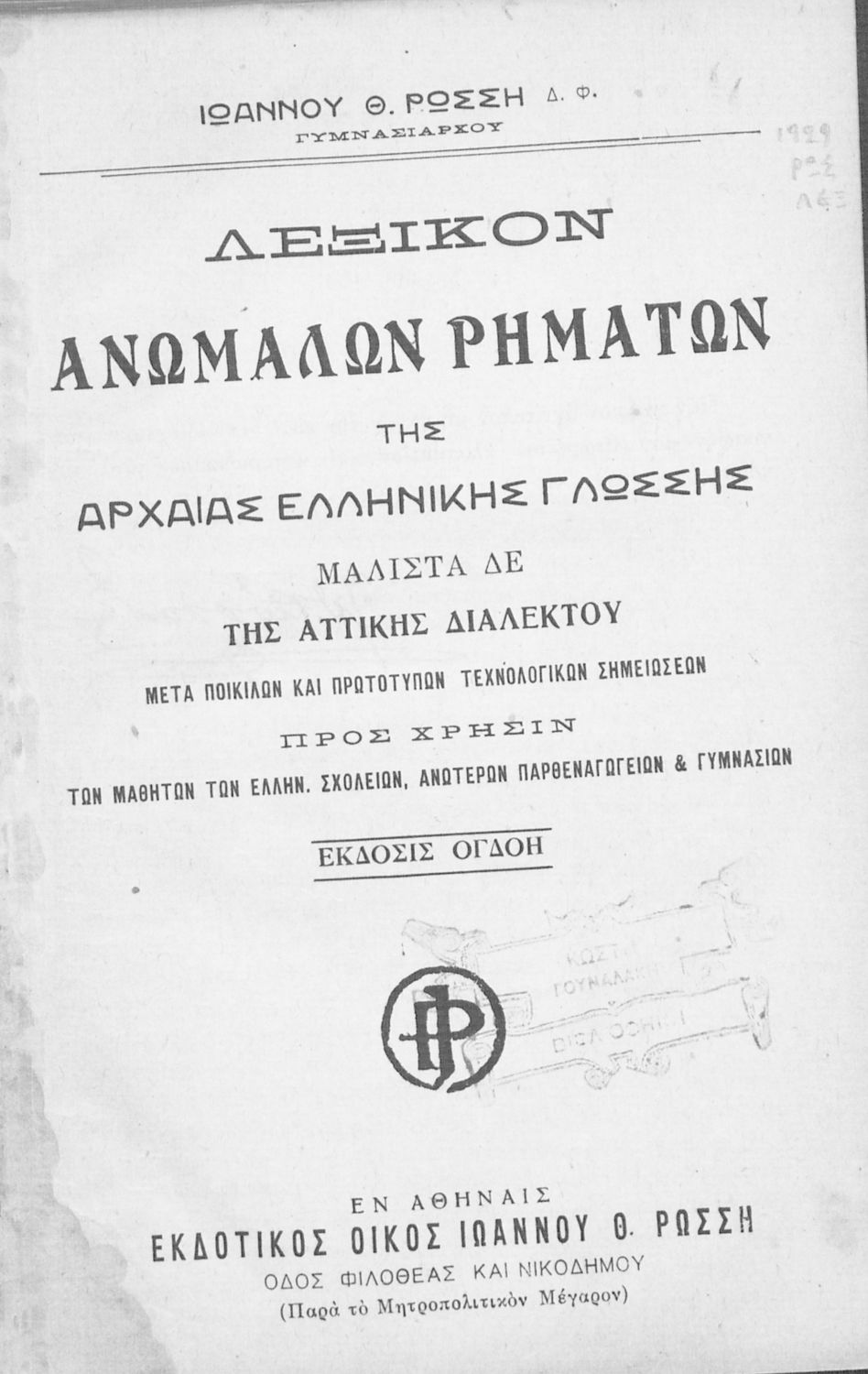 Μαθητικό βοήθημα Αρχαίων Ελληνικών για τα Γυμνάσια, Παρθεναγωγεία και Ελληνικά σχολεία το οποίο περιέχει κατάλογο ανωμάλων ρημάτων της Αττικής διαλέκτου.