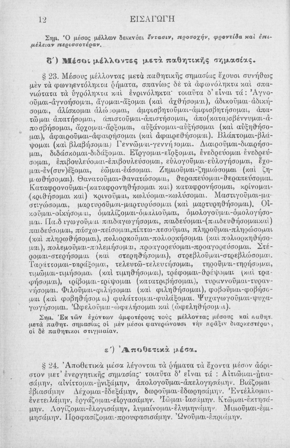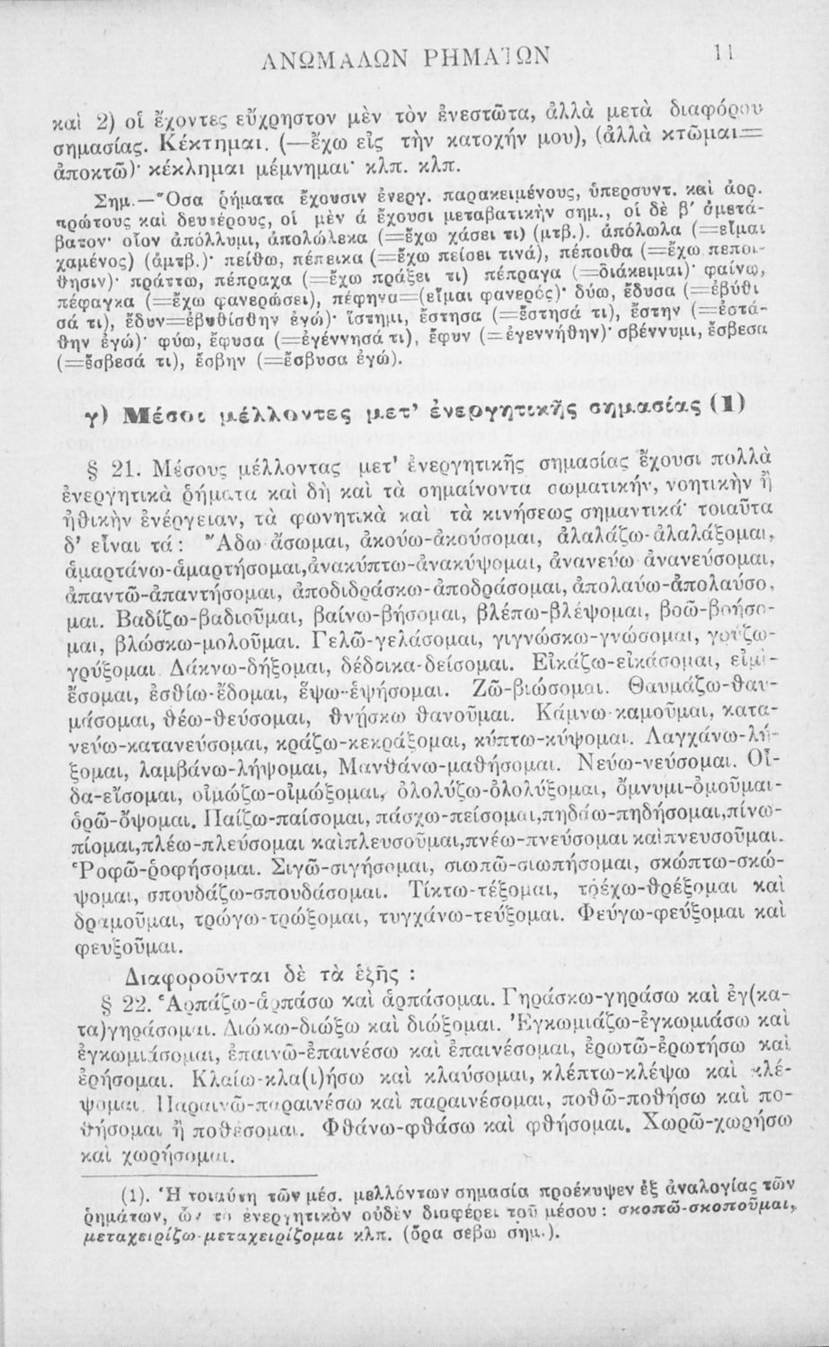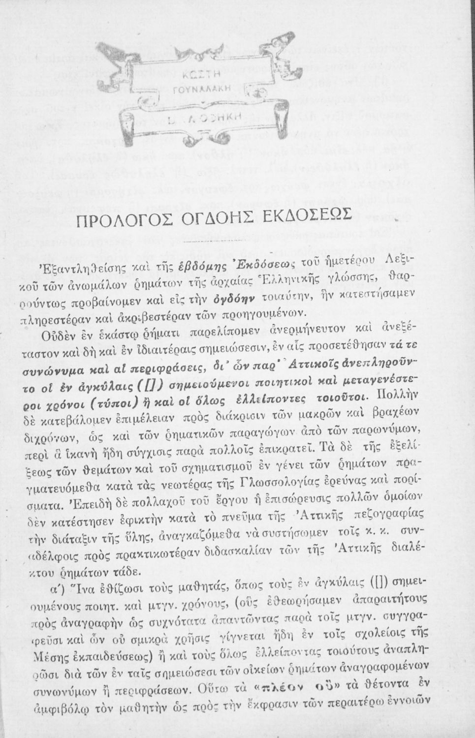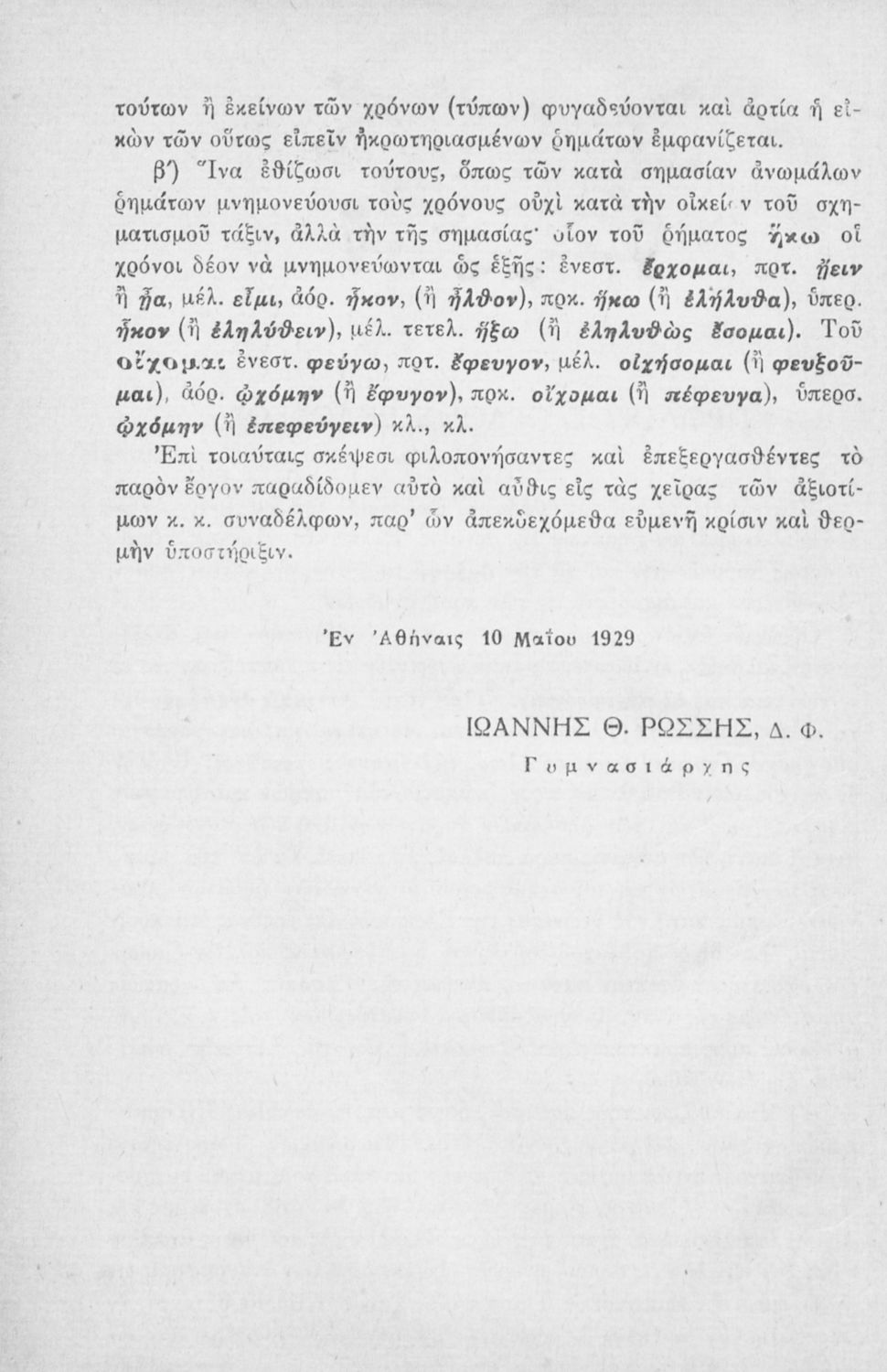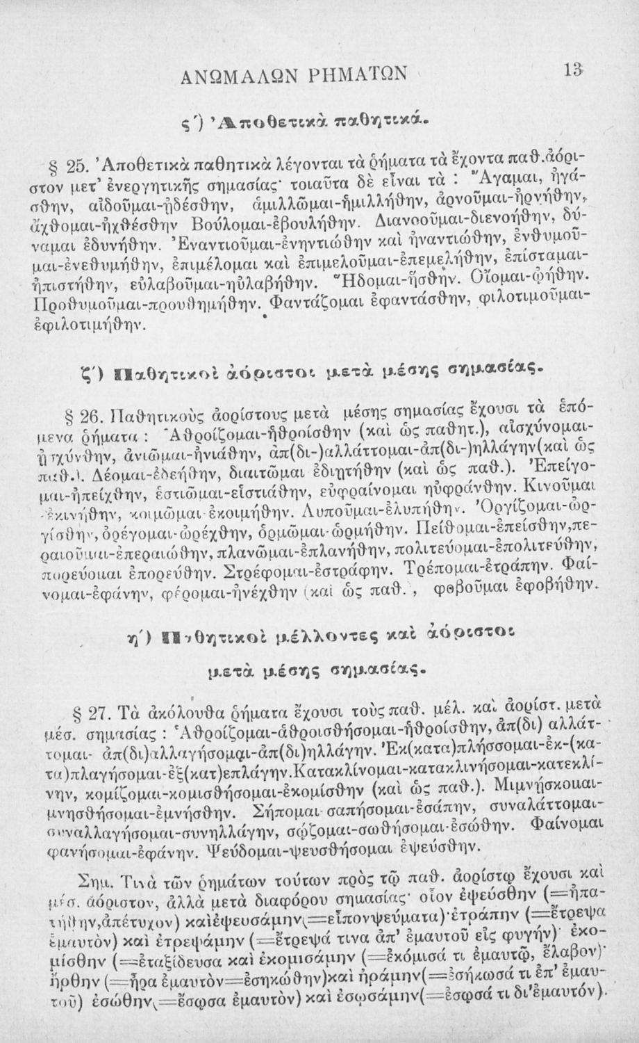 Μαθητικό βοήθημα Αρχαίων Ελληνικών για τα Γυμνάσια, Παρθεναγωγεία και Ελληνικά σχολεία το οποίο περιέχει κατάλογο ανωμάλων ρημάτων της Αττικής διαλέκτου.