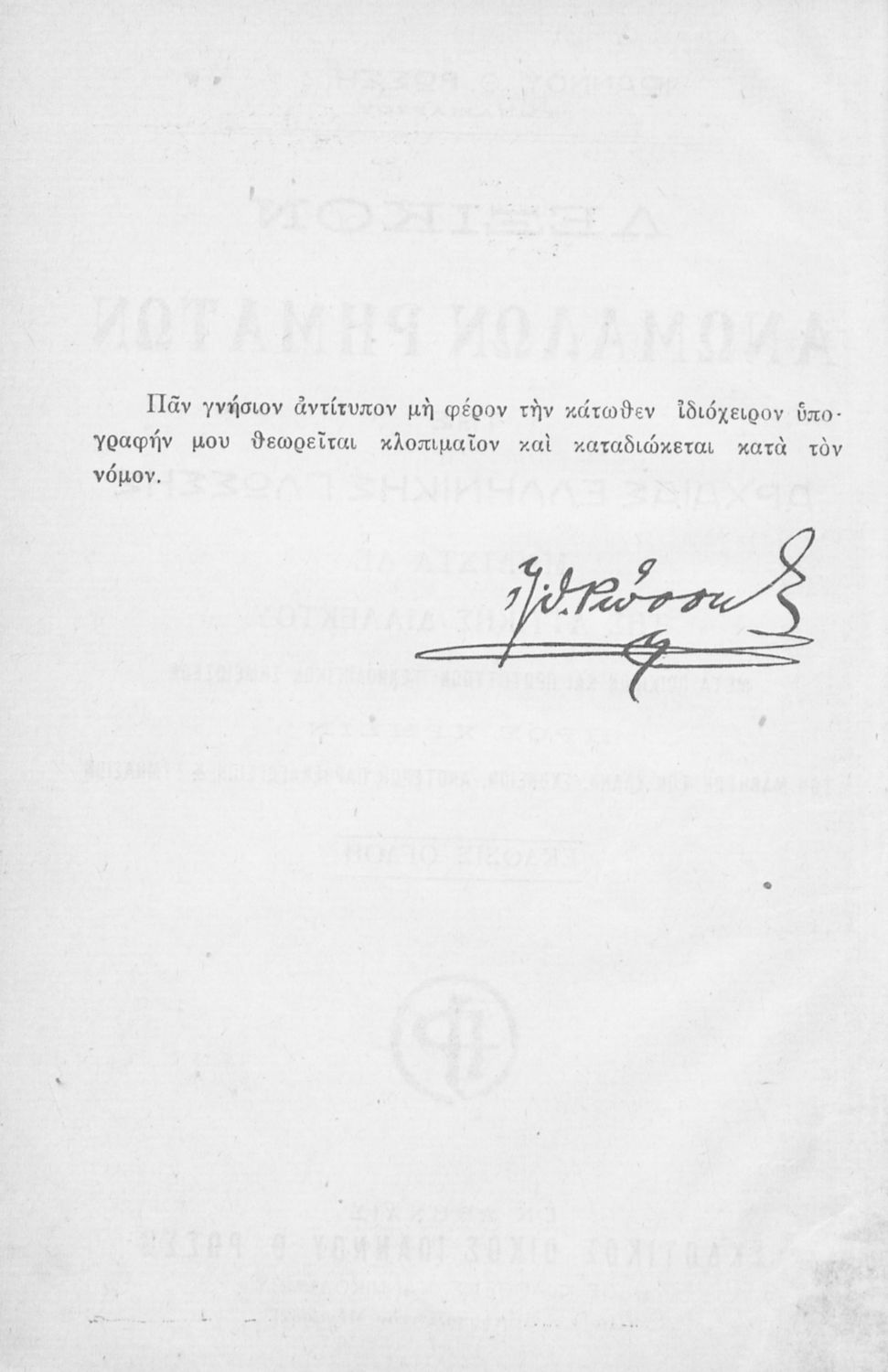 Εντοπισμός πρωτοτύπου: Ελληνικό Λογοτεχνικό και Ιστορικό Αρχείο Κωδικός βιβλιοθήκης: 1929 ΡΩΣ ΛΕΞ |