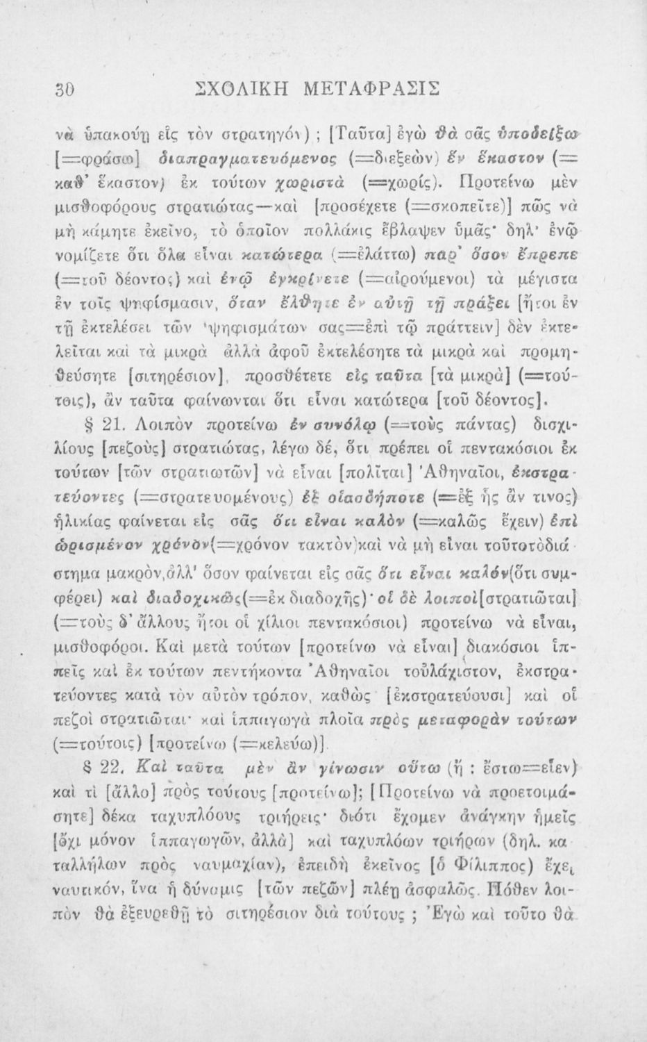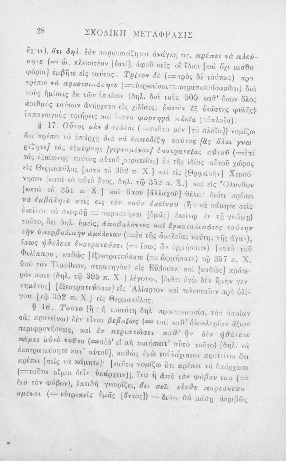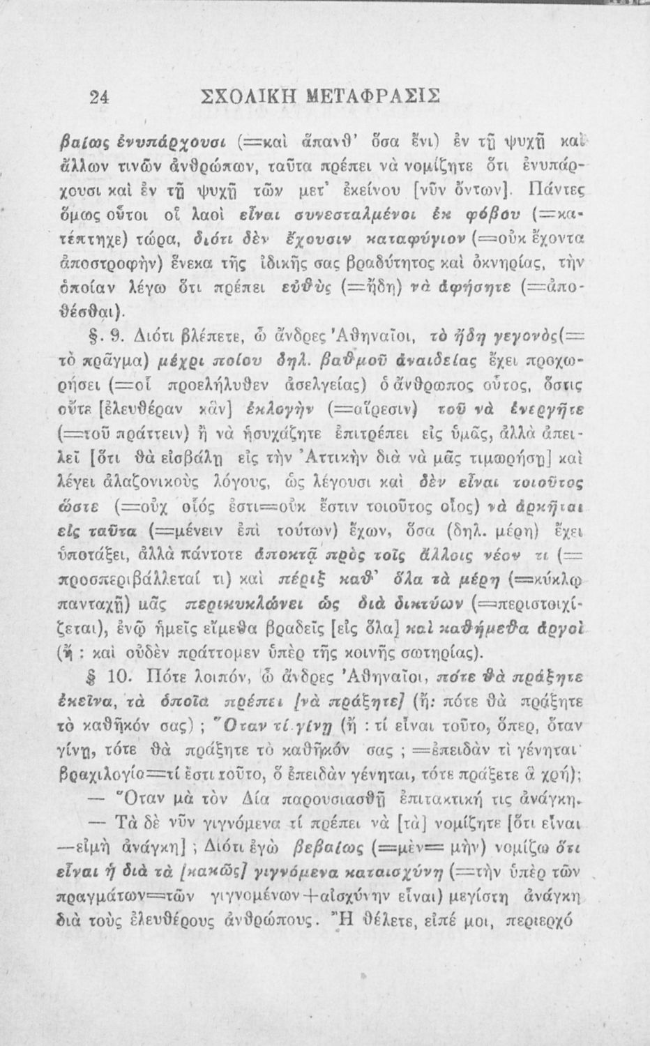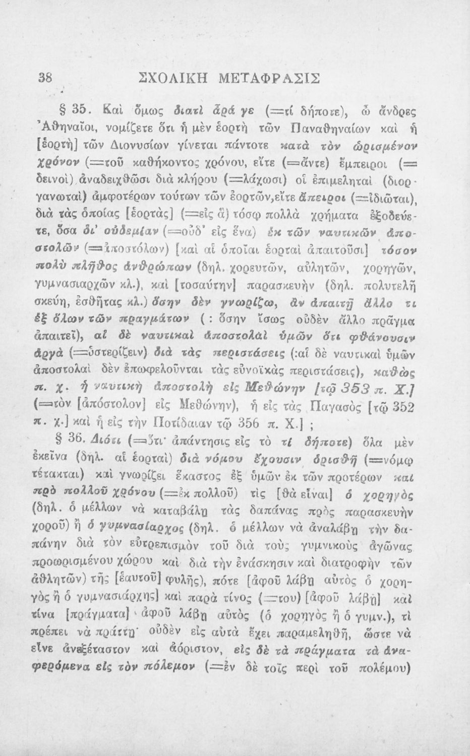 Μαθητικό βοήθημα Αρχαίων Ελληνικών της τρίτης τάξης των τετρατάξιων Γυμνασίων. Το βιβλίο περιέχει τα έργα του Δημοσθένη, Περί της ειρήνης και Α΄ Φιλιππικός από μετάφραση.