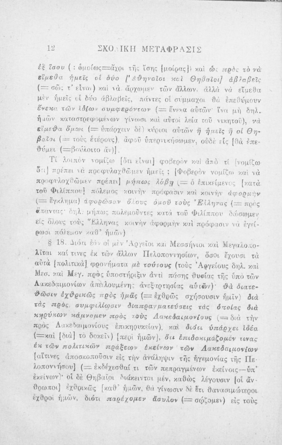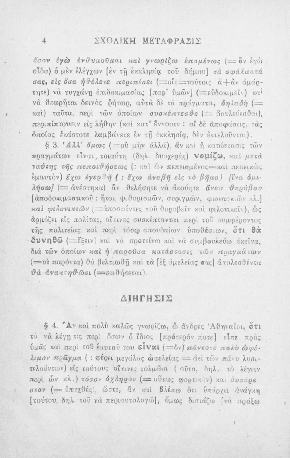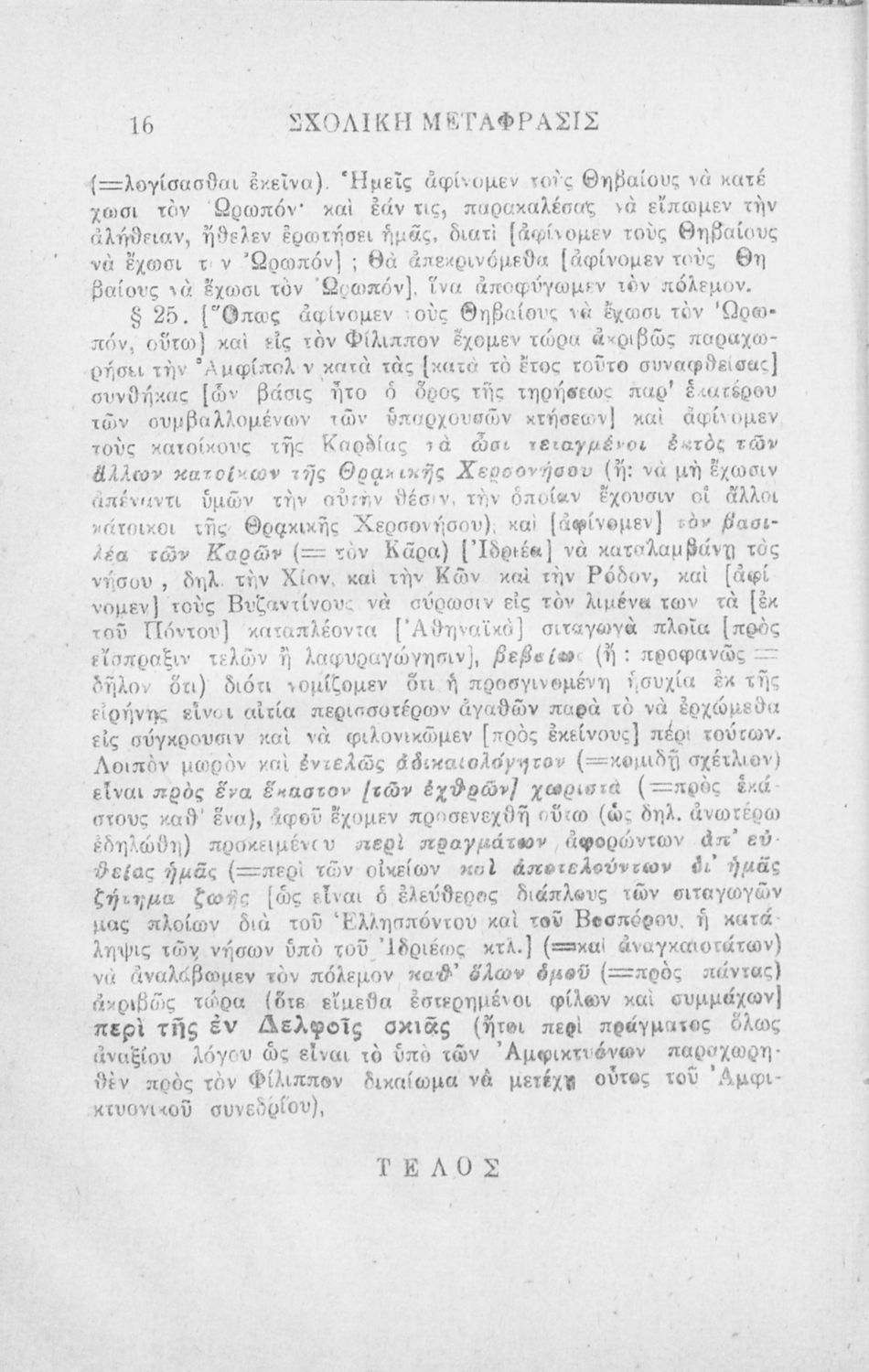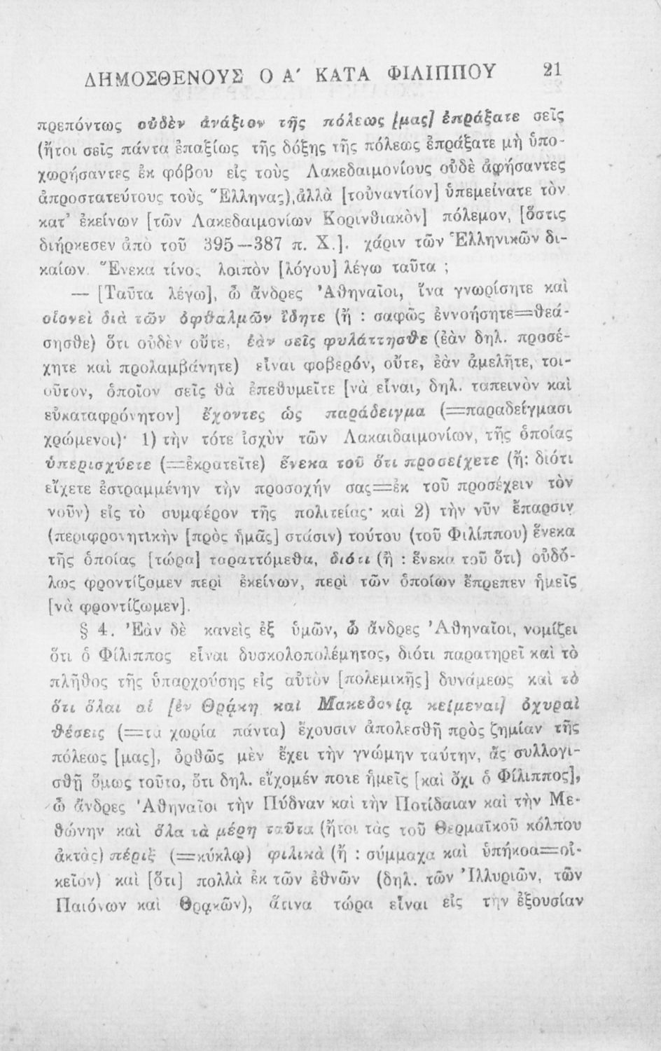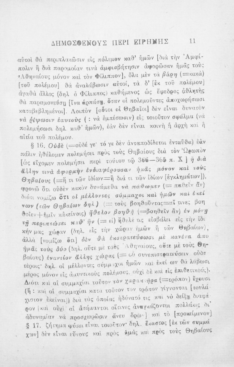 Μαθητικό βοήθημα Αρχαίων Ελληνικών της τρίτης τάξης των τετρατάξιων Γυμνασίων. Το βιβλίο περιέχει τα έργα του Δημοσθένη, Περί της ειρήνης και Α΄ Φιλιππικός από μετάφραση.