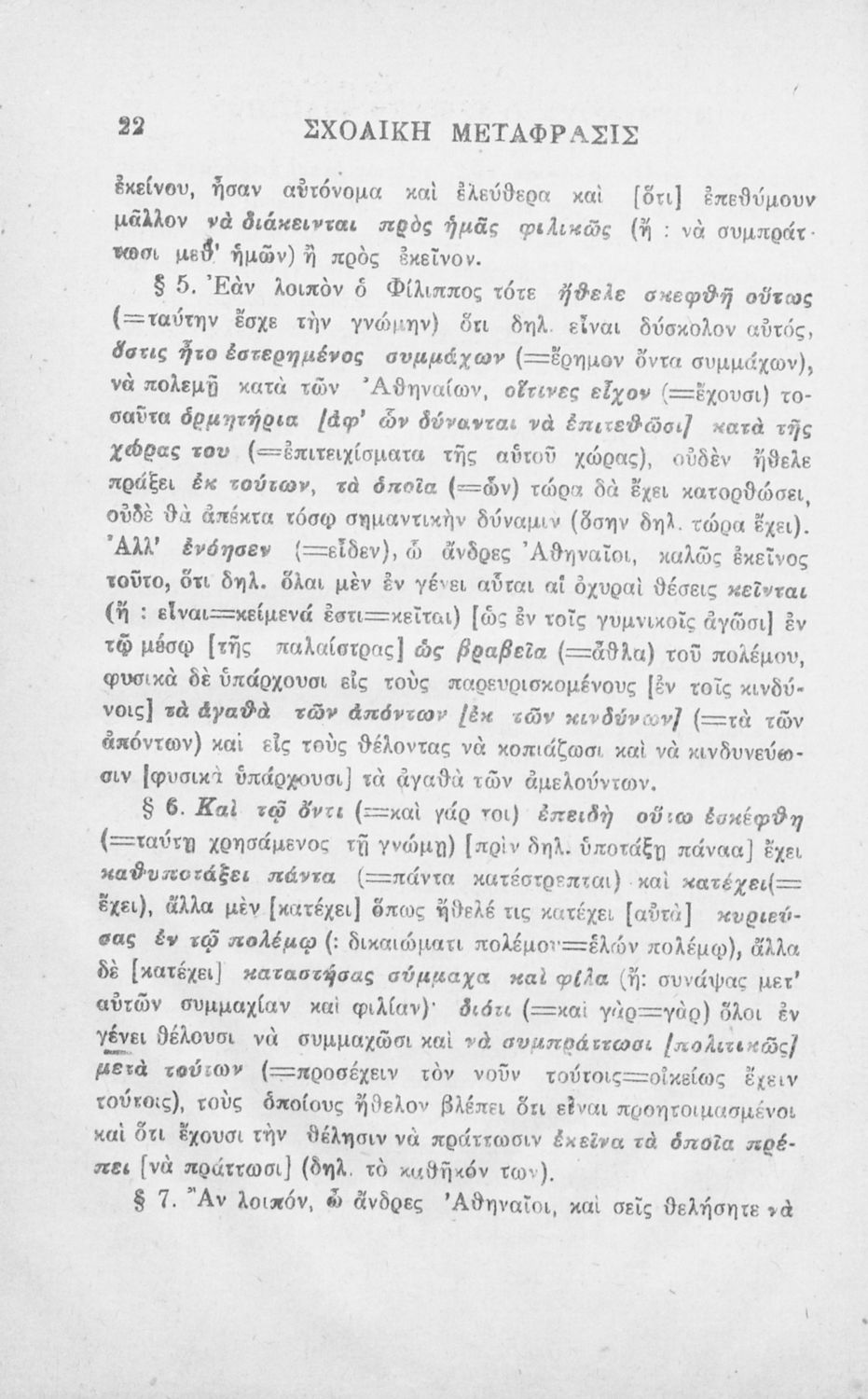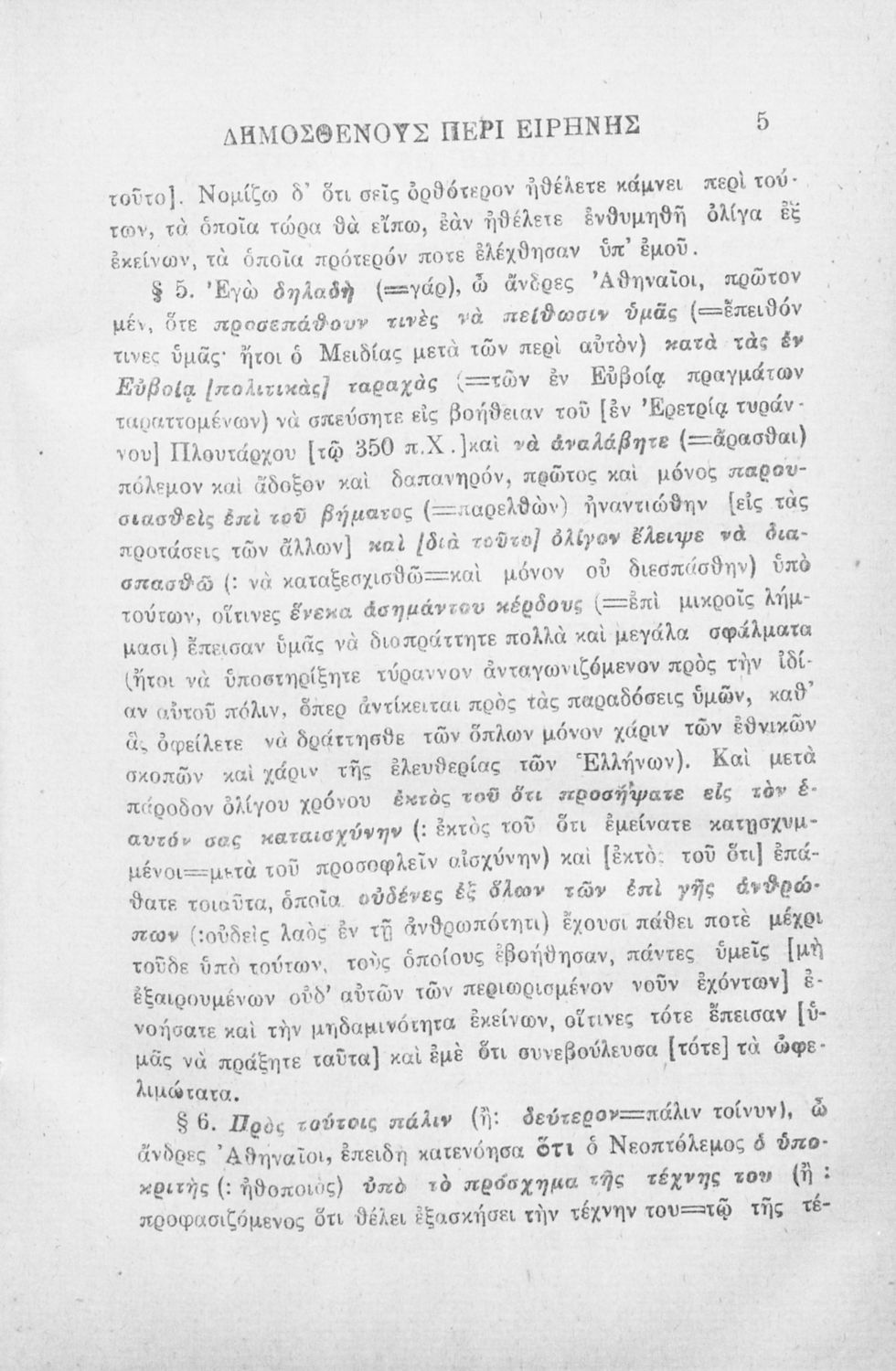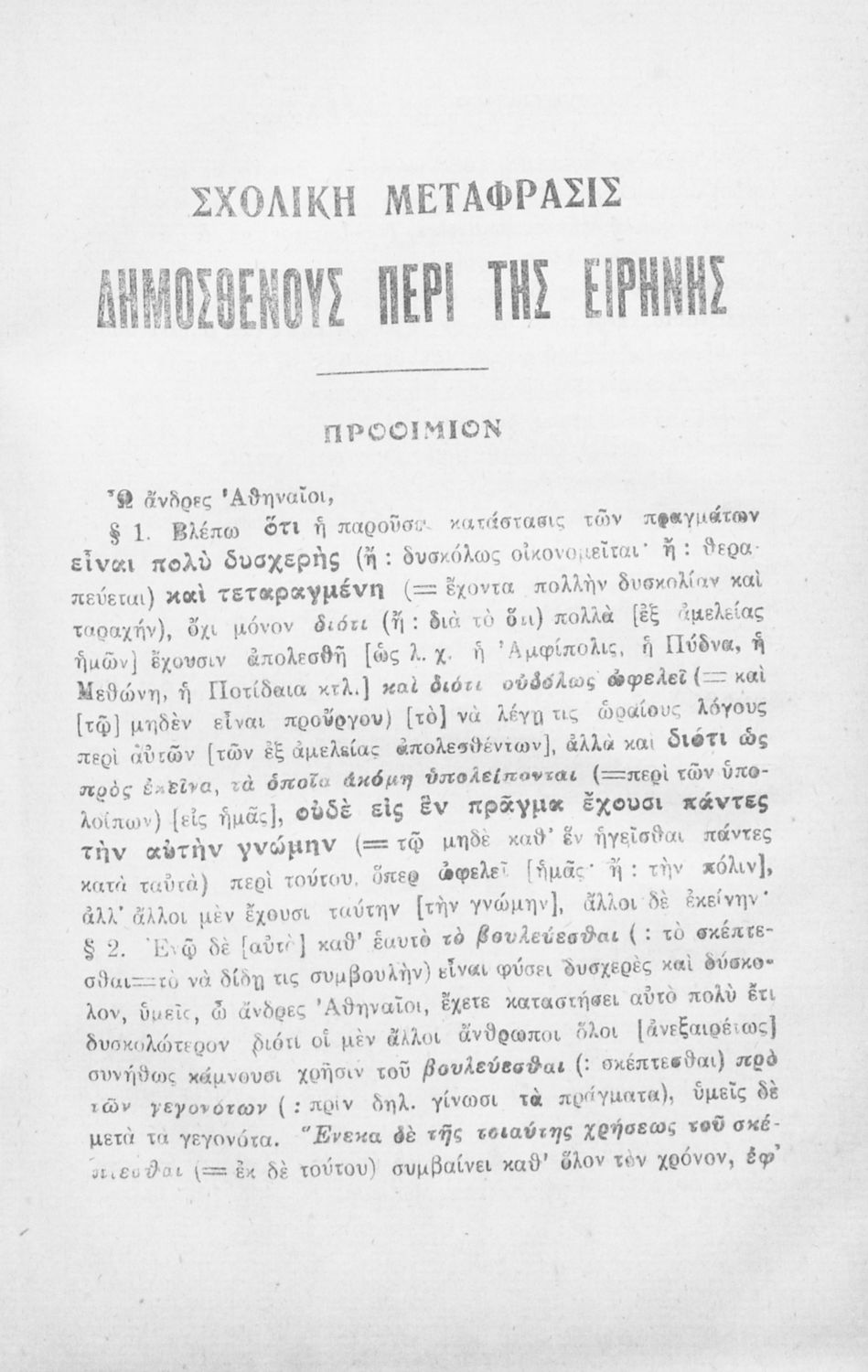 Σχολική μετάφρασις Δημοσθένους Περί της ειρήνης κατά και Φιλίππου Α΄, προς χρήσιν των μαθητών της τρίτης τάξεως των τετραταξίων Γυμνασίων και της αντιστοίχου τάξεως των λοιπών σχολείων της Μέσης Εκπαιδεύσεως