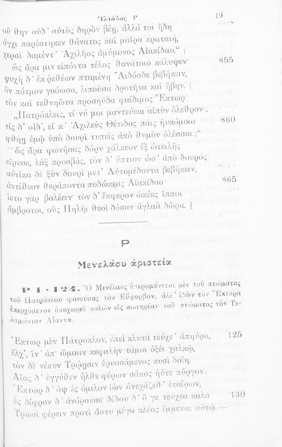 Μαθητικό βοήθημα Αρχαίων Ελληνικών της Δ΄ Γυμνασίου το οποίο περιέχει τις ραψωδίες Ρ΄ και Σ΄ της ΄ Ιλιάδας' σε μετάφραση για ευκολότερη ανάγνωση και κατανόηση από τους μαθητές.