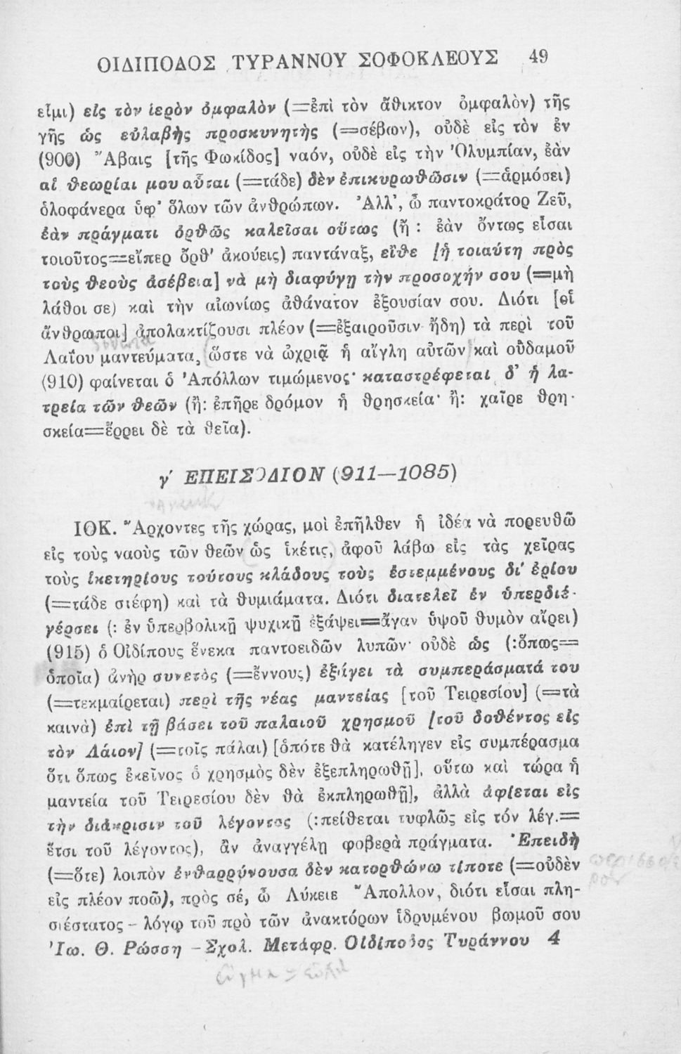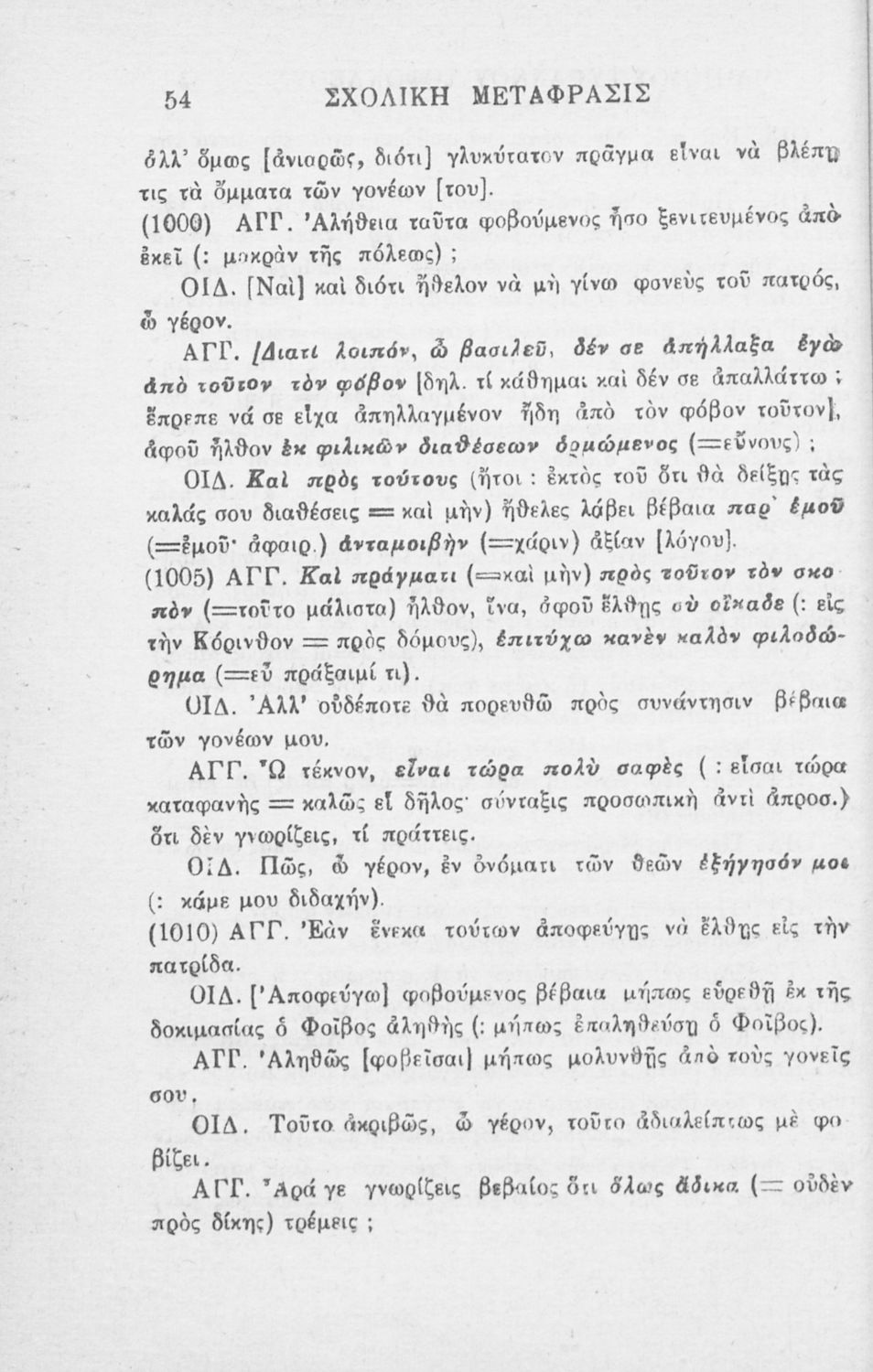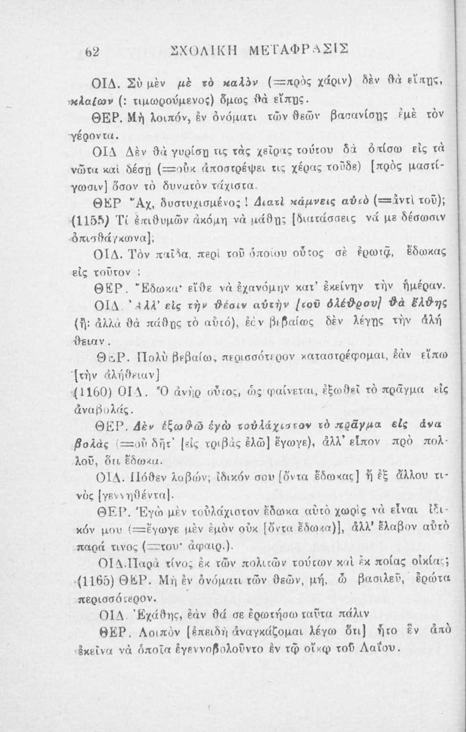 Σχολική μετάφρασις Οιδίποδος τυράννου Σοφοκλέους, προς χρήσιν των μαθητών της τετάρτης τάξεως των Τετραταξίων Γυμνασίων και της αντιστοίχου τάξεως των λοιπών σχολείων της Μέσης Εκπαιδεύσεως