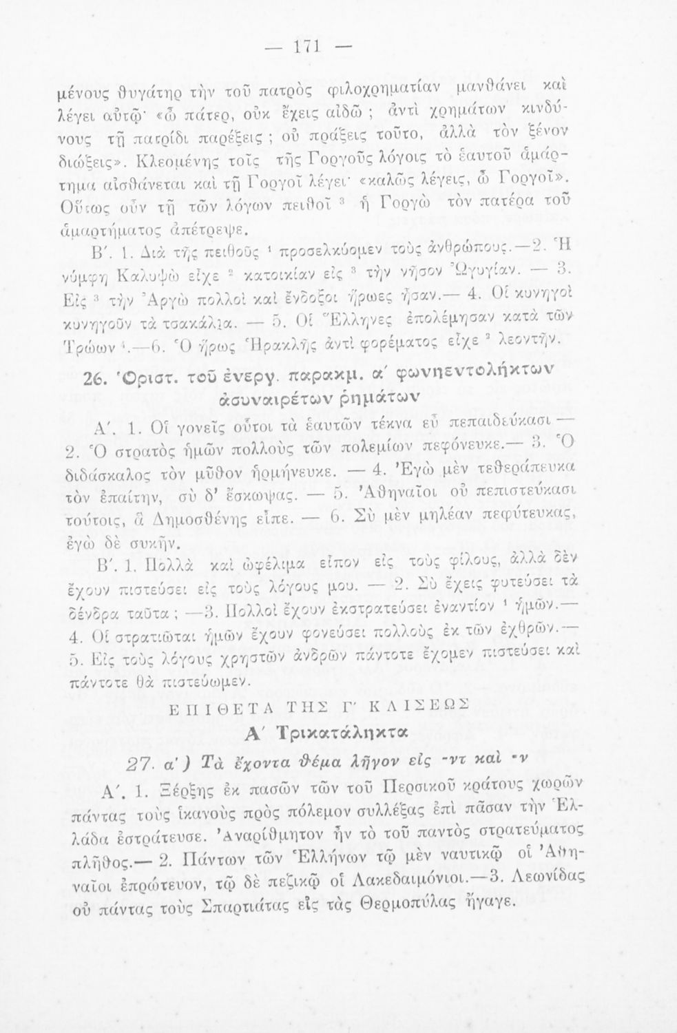 Γραμματική της αρχαίας ελληνικής γλώσσης, μετ΄ ασκήσεων