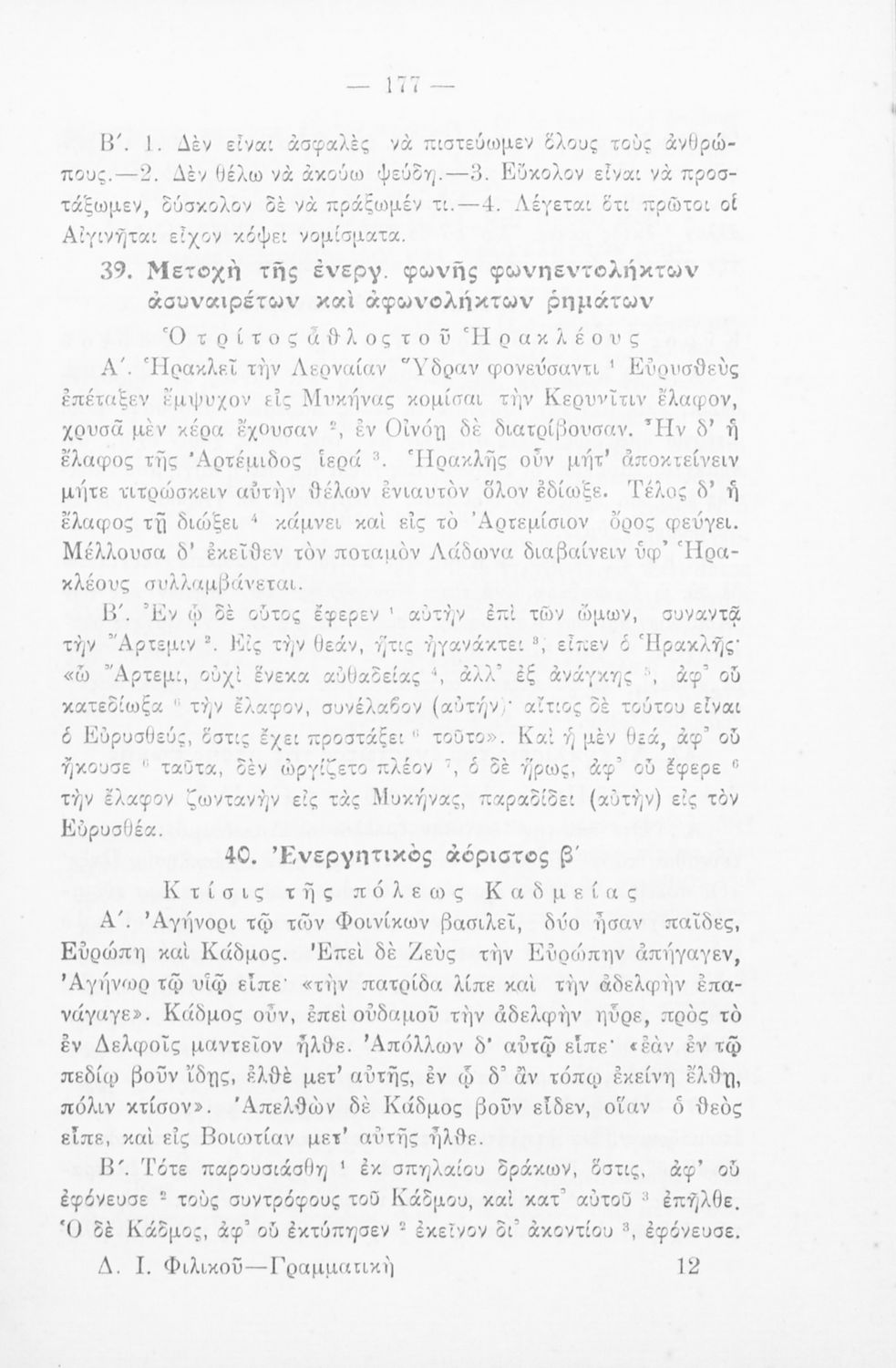 Παρουσίαση περιεχομένου: Σχολικό εγχειρίδιο Αρχαίων Ελληνικών που αποτελεί γραμματική της αρχαίας ελληνικής και είναι χωρισμένο σε φθογγολογικό και τυπολογικό μέρος.