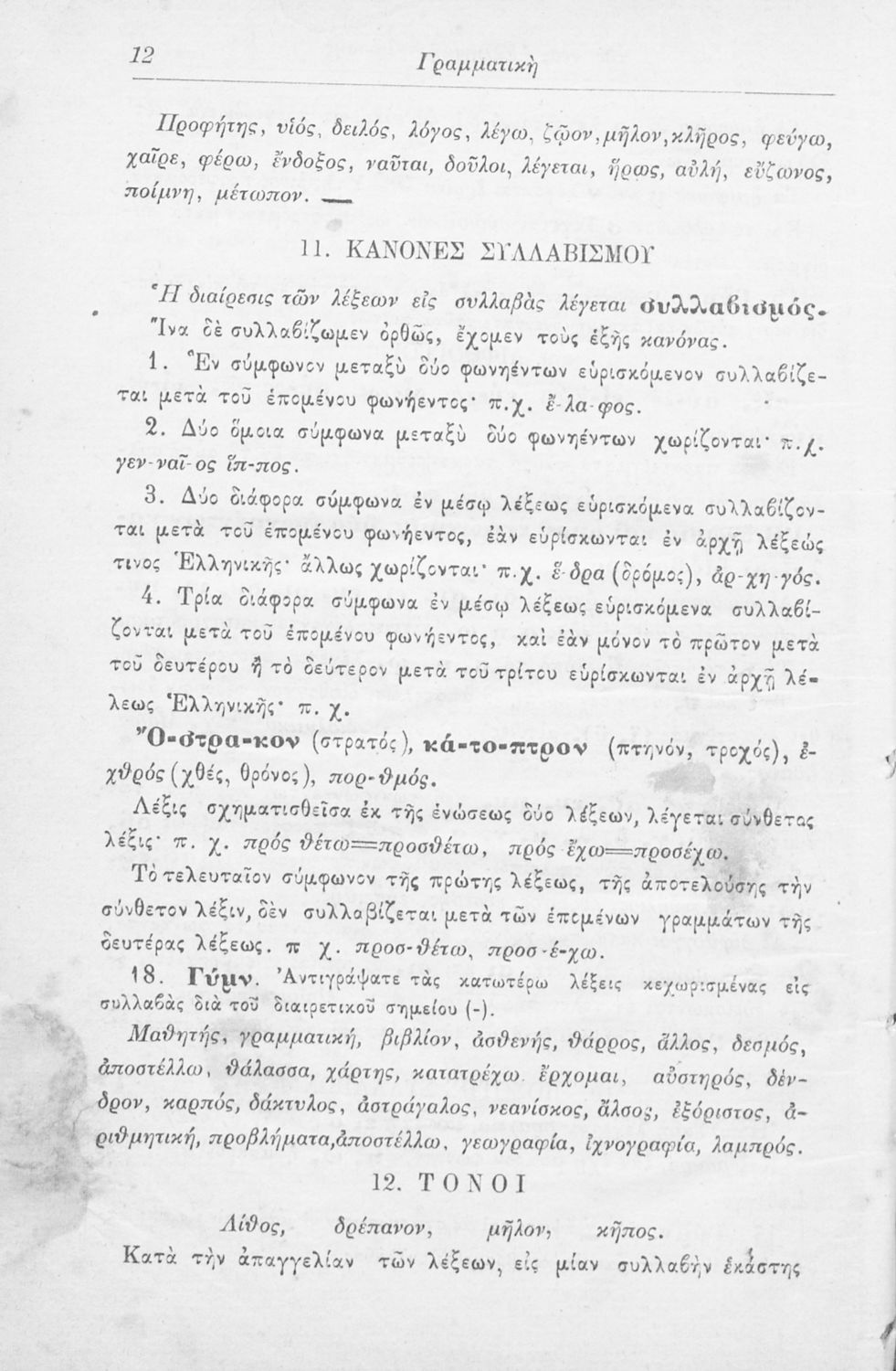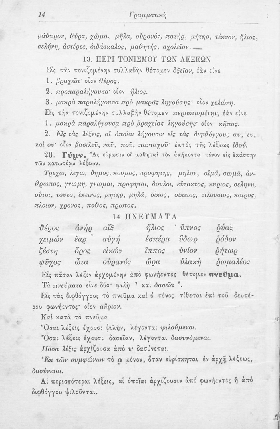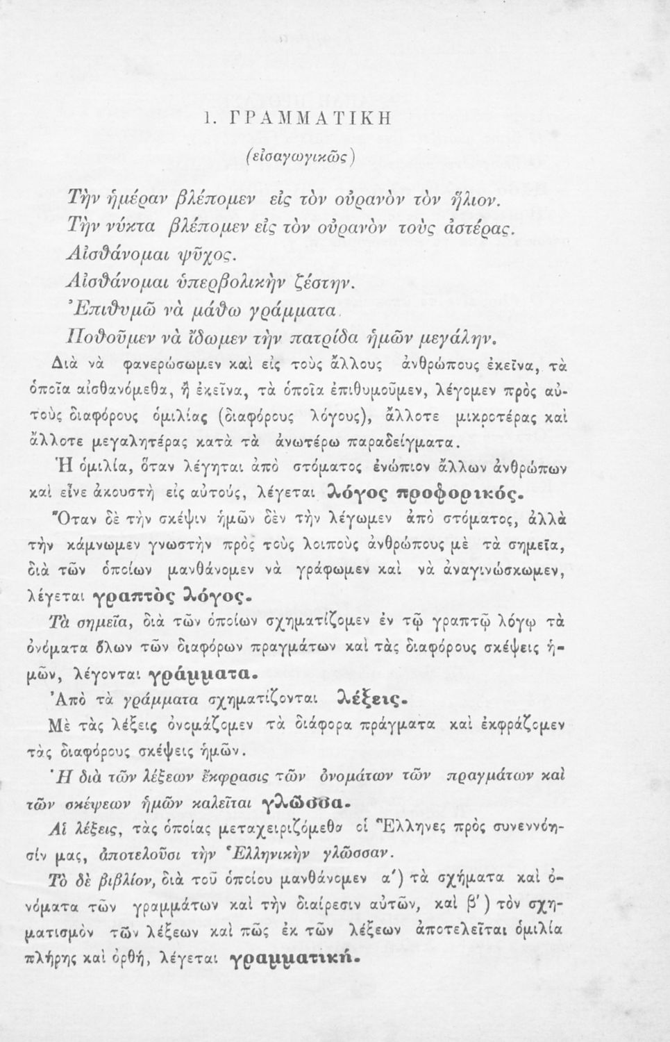 Σχολικό εγχειρίδιο Αρχαίων Ελληνικών Γυμνασίου που περιλαμβάνει τους κανόνες γραμματικής και είναι χωρισμένη στο φθογγολογικό, το τυπολογικό και ετυμολογικό μέρος.