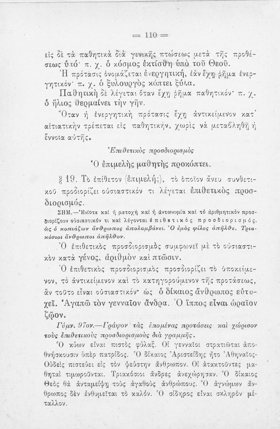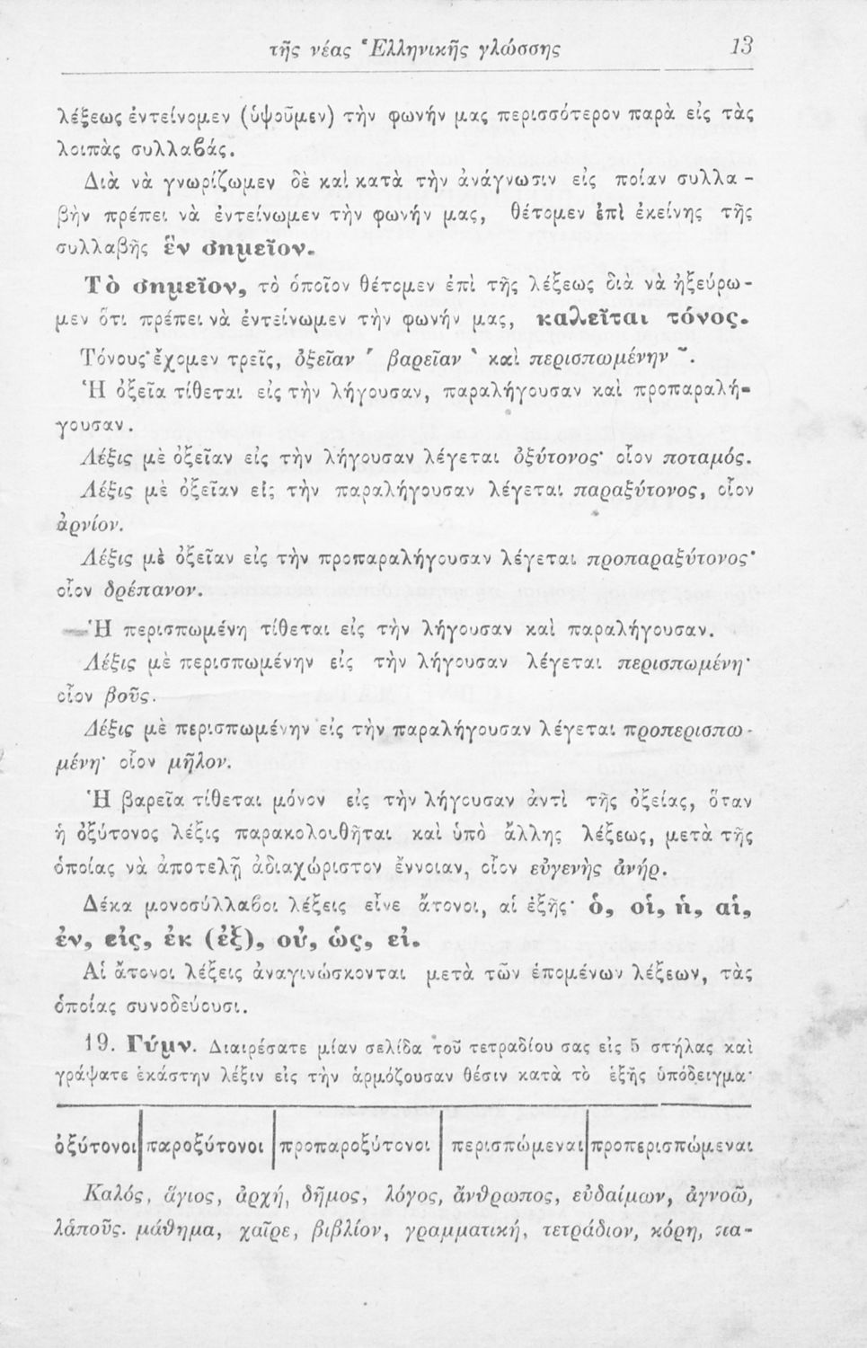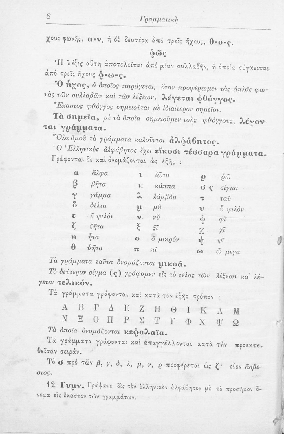Σχολικό εγχειρίδιο Αρχαίων Ελληνικών Γυμνασίου που περιλαμβάνει τους κανόνες γραμματικής και είναι χωρισμένη στο φθογγολογικό, το τυπολογικό και ετυμολογικό μέρος.