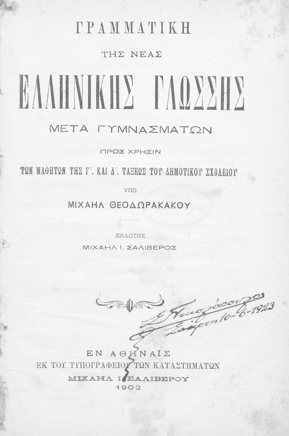 Σχολικό εγχειρίδιο Αρχαίων Ελληνικών που αποτελεί γραμματική της αρχαίας ελληνικής και είναι χωρισμένο σε φθογγολογικό και τυπολογικό μέρος.