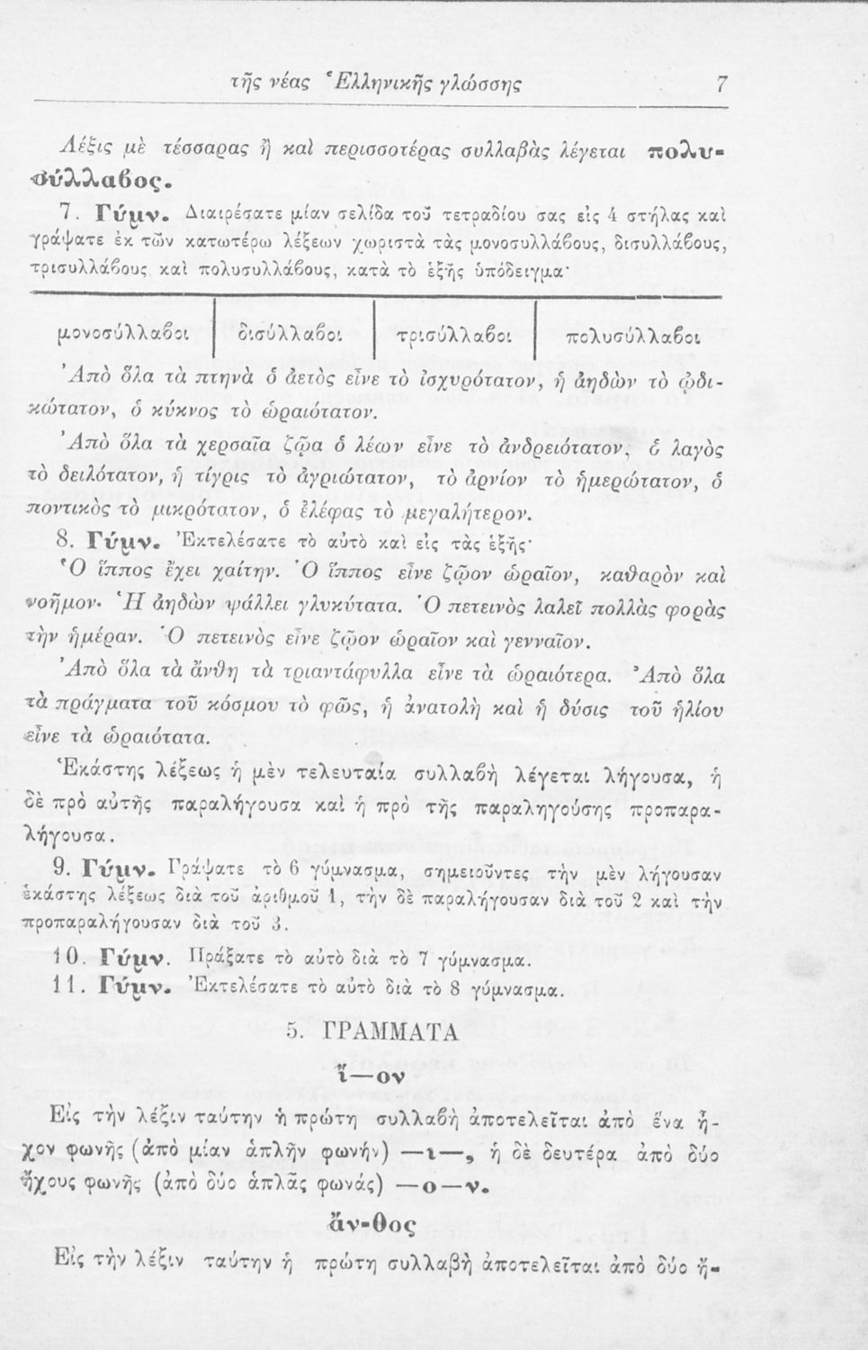 Μαθητικό βοήθημα που περιλαμβάνει τους βασικούς κανόνες γραμματικής (φθογγολογικό και τυπολογικό μέρος) της νέας ελληνικής αλλά και επιγραμματικά της αρχαίας ελληνικής.