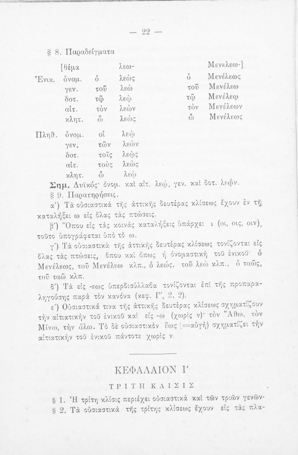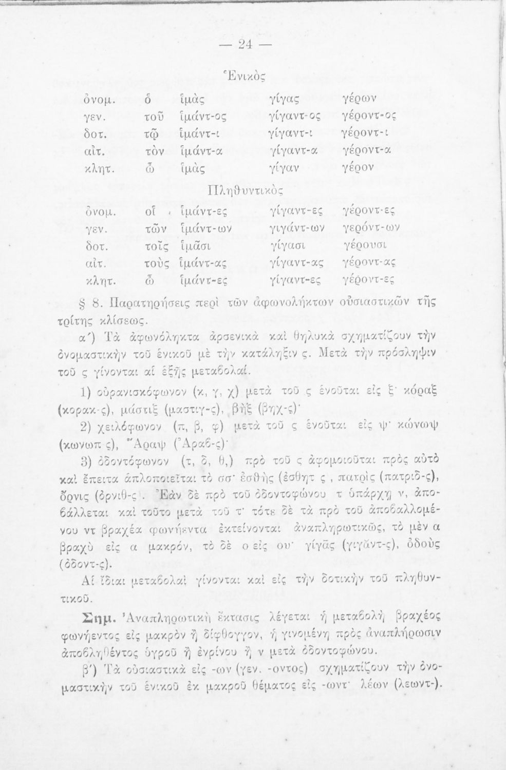 Σχολικό εγχειρίδιο Αρχαίων Ελληνικών για τα Ελληνικά Σχολεία και Παρθεναγωγεία που αποτελεί γραμματική της αρχαίας ελληνικής και είναι χωρισμένο σε φθογγολογικό, τυπολογικό και ετυμολογικό μέρος.