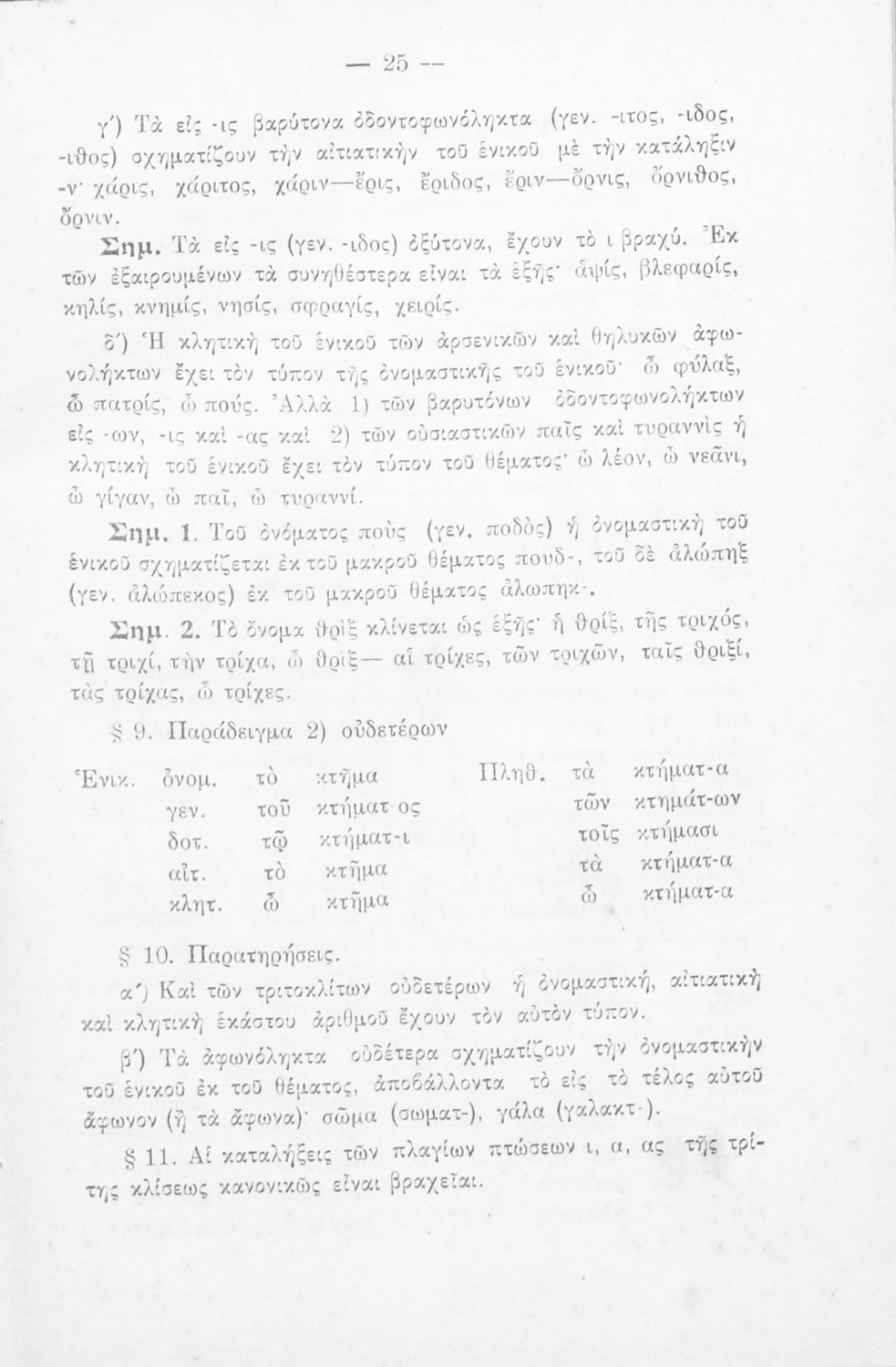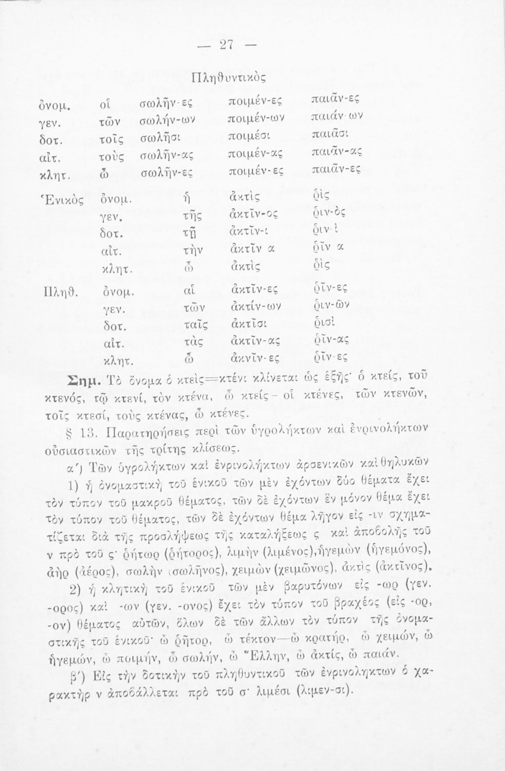 Σχολικό εγχειρίδιο Αρχαίων Ελληνικών για τα Ελληνικά Σχολεία και Παρθεναγωγεία που περιέχει τους κανόνες γραμματικής και είναι χωρισμένο σε φθογγολογικό, τυπολογικό και ετυμολογικό μέρος.
