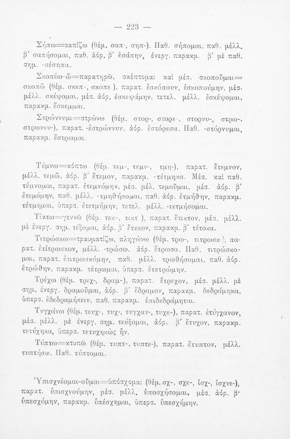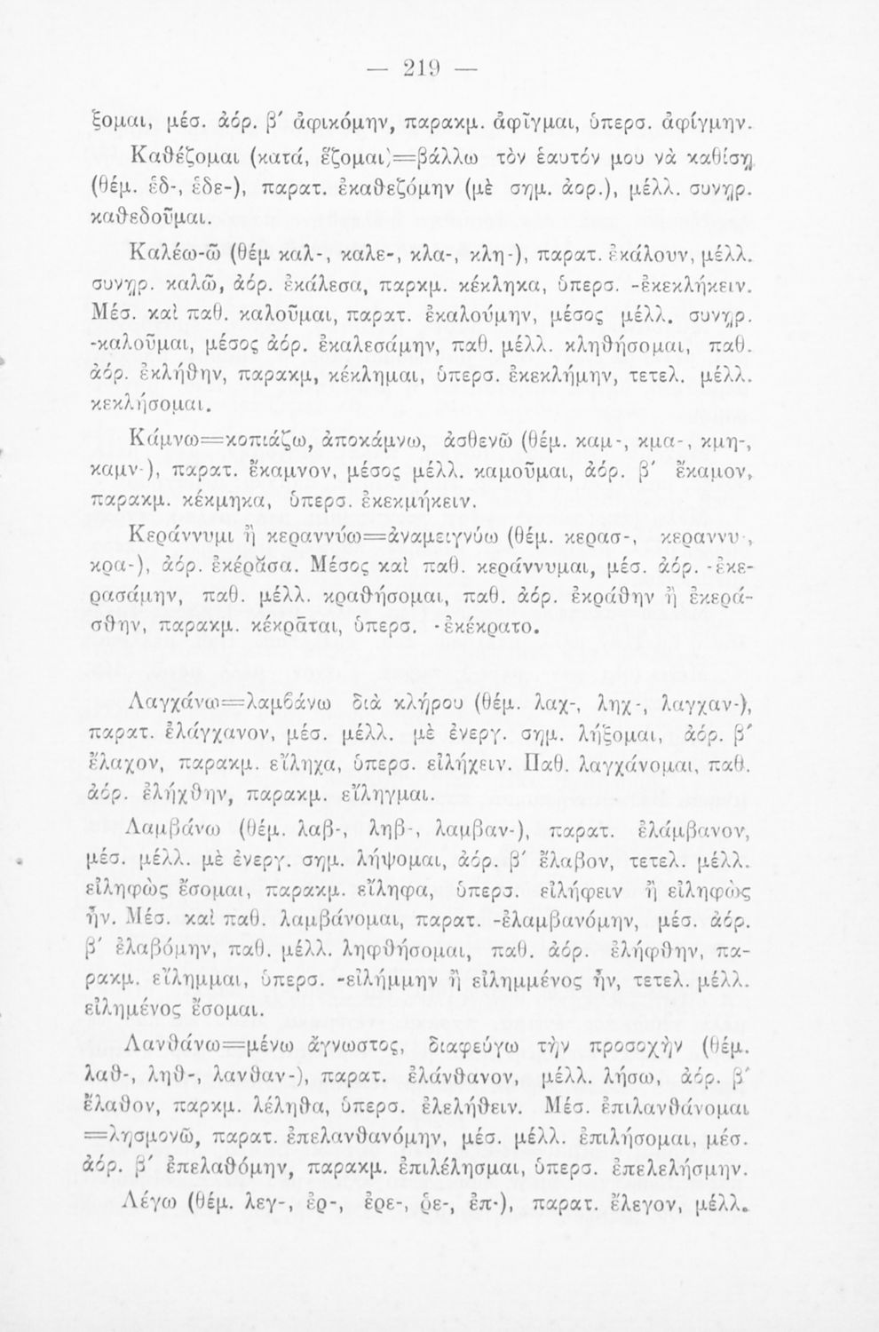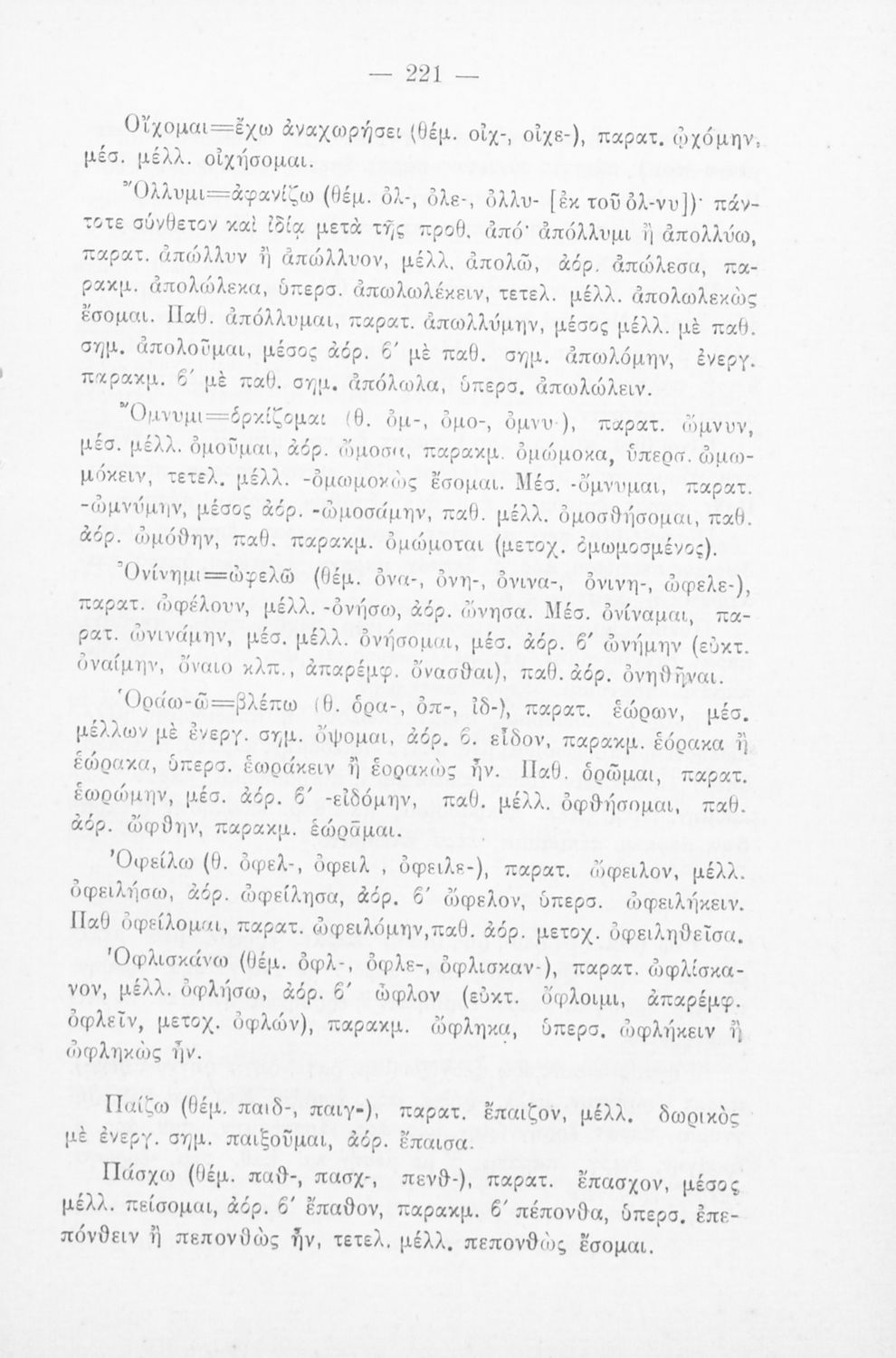 Σχολικό εγχειρίδιο που περιλαμβάνει τη γραμματική της αρχαίας ελληνικής, λεξικό ρημάτων και τους βασικότερους κανόνες του συντακτικού.
