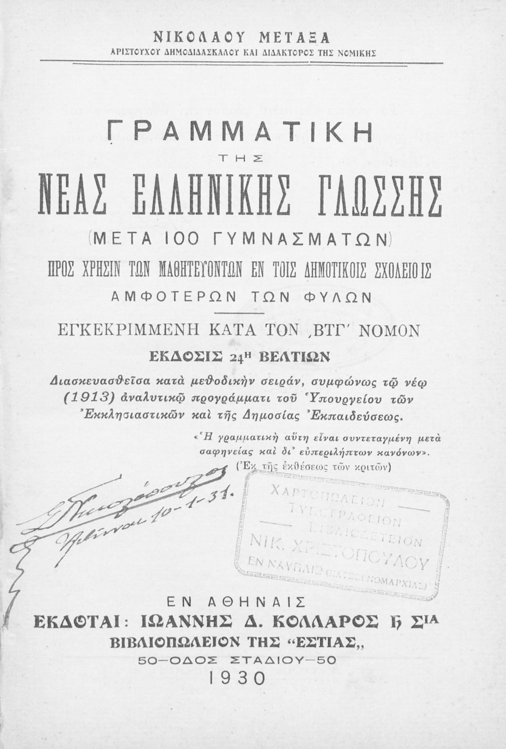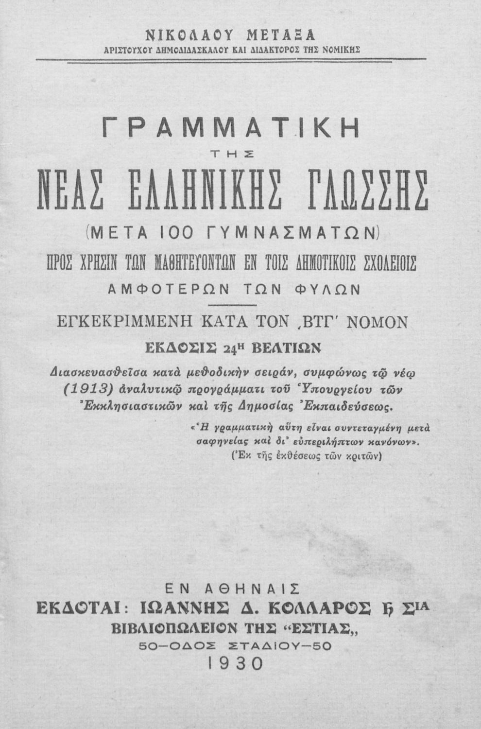 [1930, 24η Έκδοση]