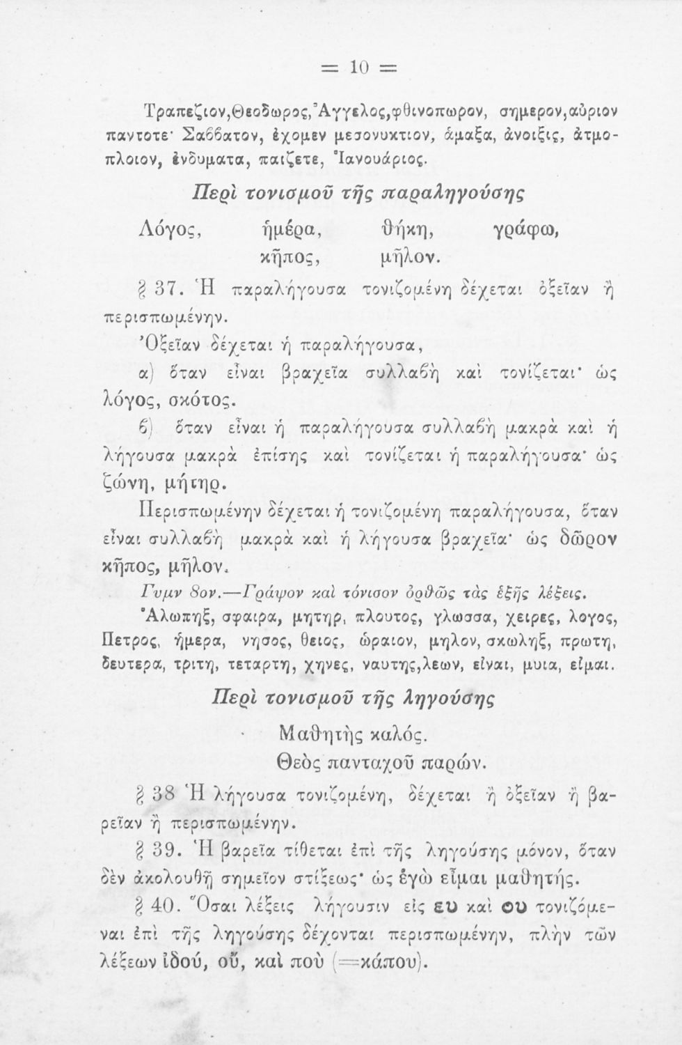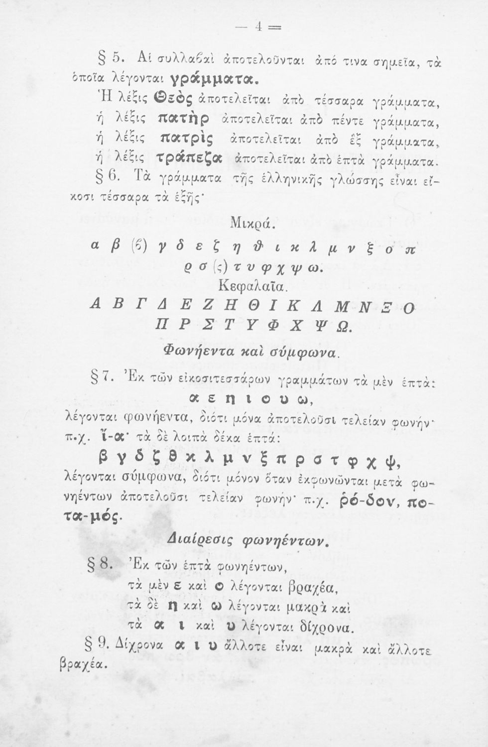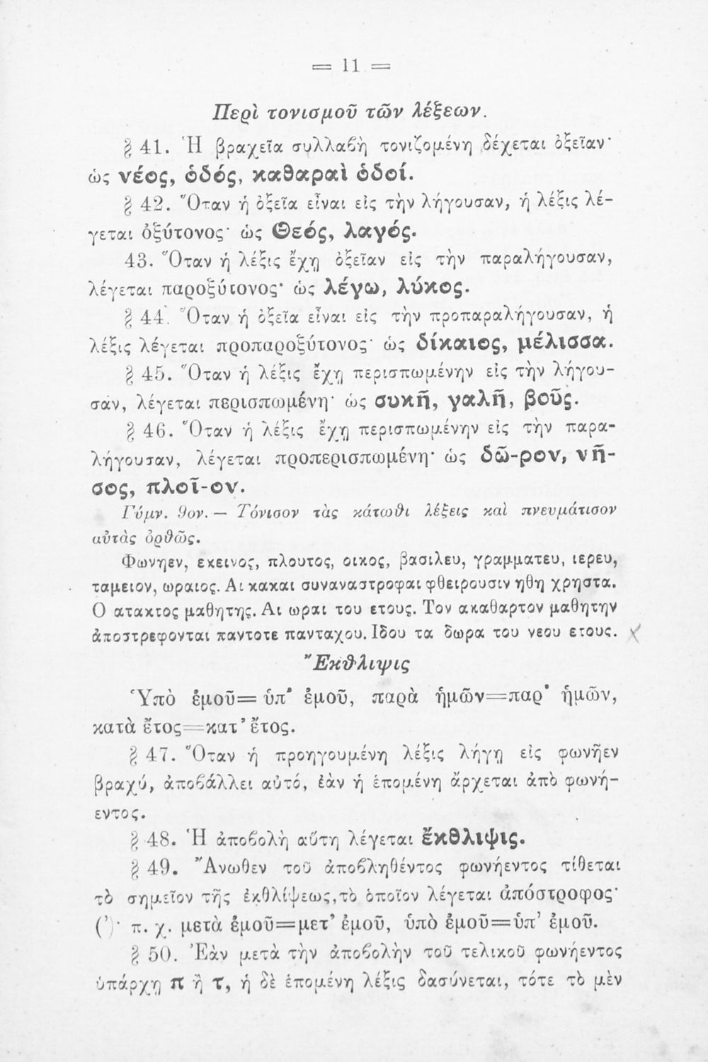 Σχολικό εγχειρίδιο Αρχαίων Ελληνικών για τα Ελληνικά Σχολεία και Παρθεναγωγεία που περιέχει τους κανόνες γραμματικής και είναι χωρισμένο σε φθογγολογικό, τυπολογικό και ετυμολογικό μέρος.