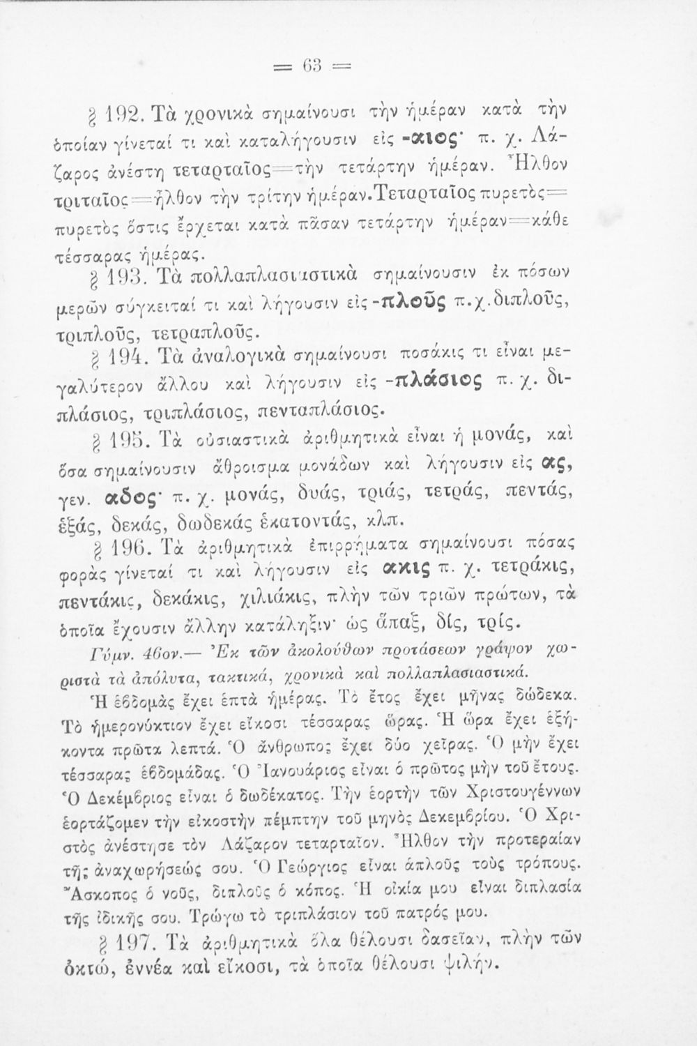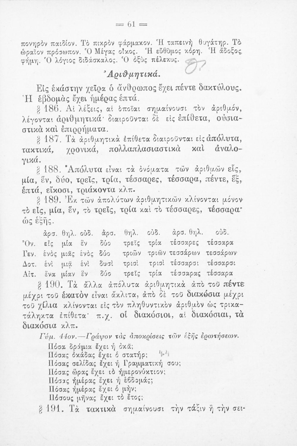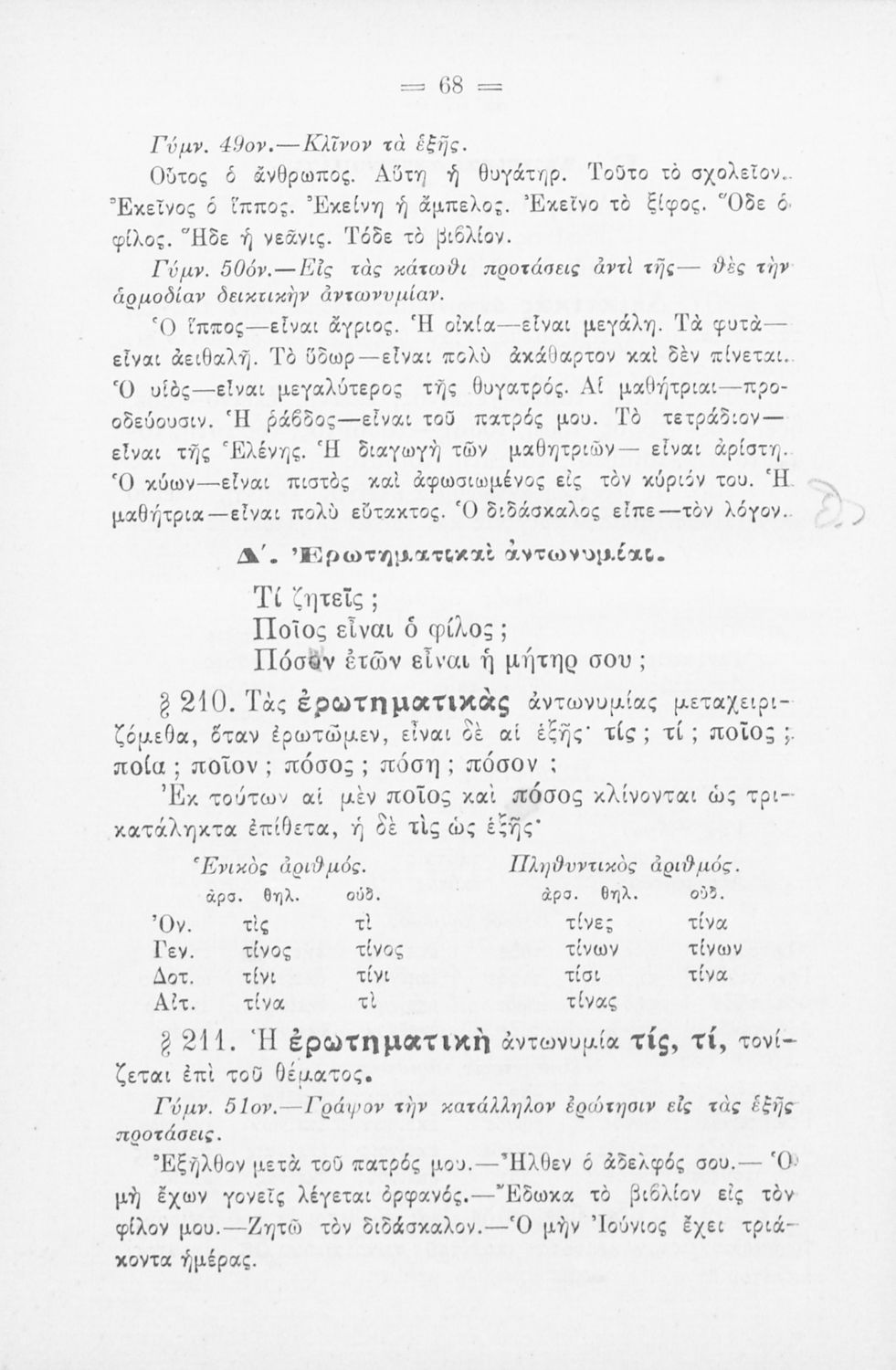 Σχολικό εγχειρίδιο Αρχαίων Ελληνικών για τα Ελληνικά Σχολεία και Παρθεναγωγεία που περιέχει τους κανόνες γραμματικής και είναι χωρισμένο σε φθογγολογικό, τυπολογικό και ετυμολογικό μέρος.