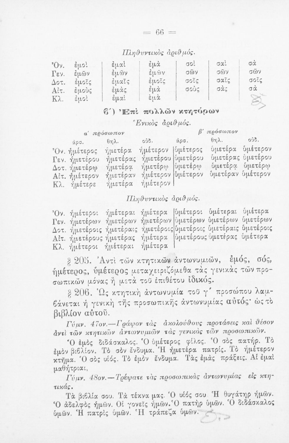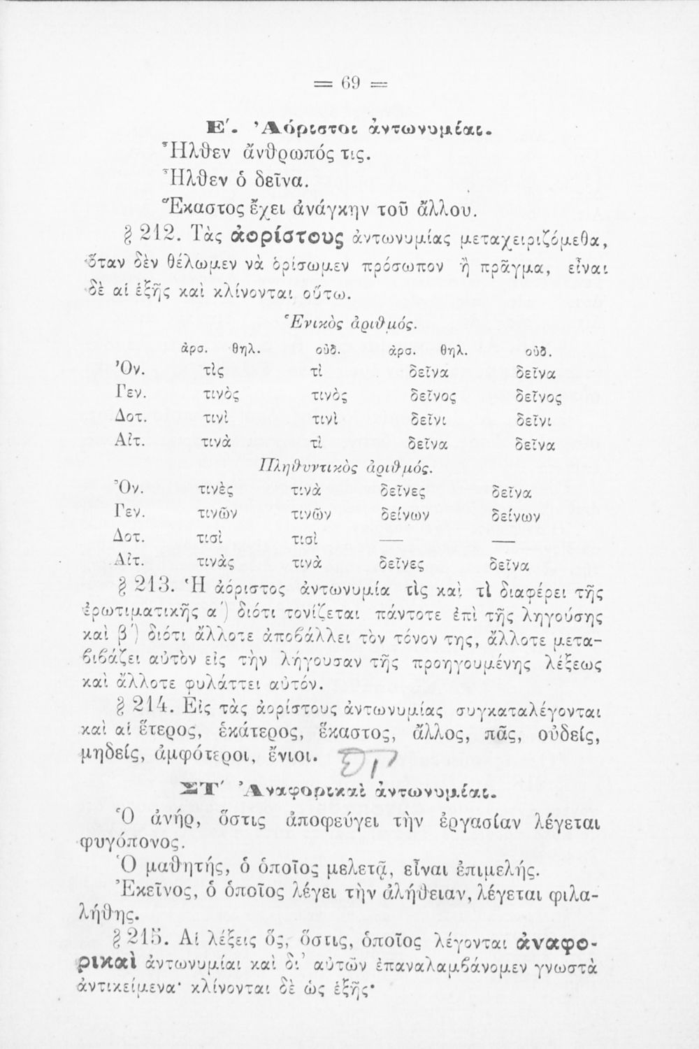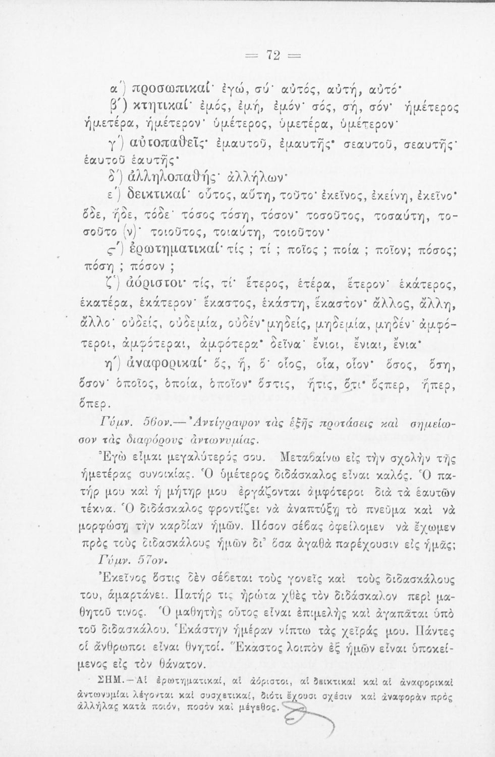 Σχολικό εγχειρίδιο Αρχαίων Ελληνικών για τα Ελληνικά Σχολεία και Παρθεναγωγεία που περιέχει τους κανόνες γραμματικής και είναι χωρισμένο σε φθογγολογικό, τυπολογικό και ετυμολογικό μέρος.
