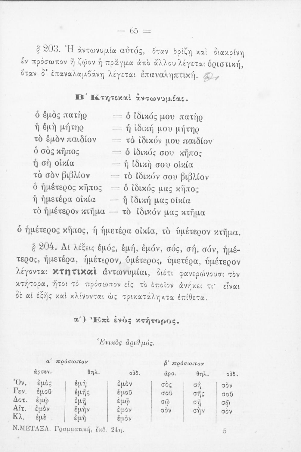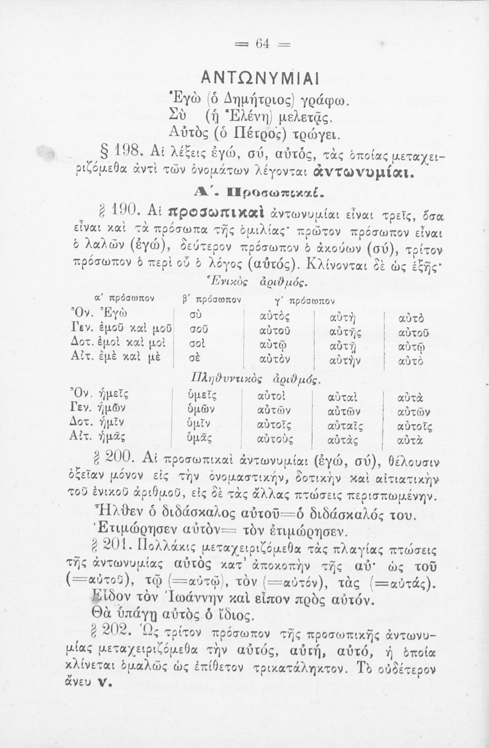Σχολικό εγχειρίδιο Αρχαίων Ελληνικών για τα Ελληνικά Σχολεία και Παρθεναγωγεία που αποτελεί γραμματική της αρχαίας ελληνικής και είναι χωρισμένο σε φθογγολογικό, τυπολογικό και ετυμολογικό μέρος.