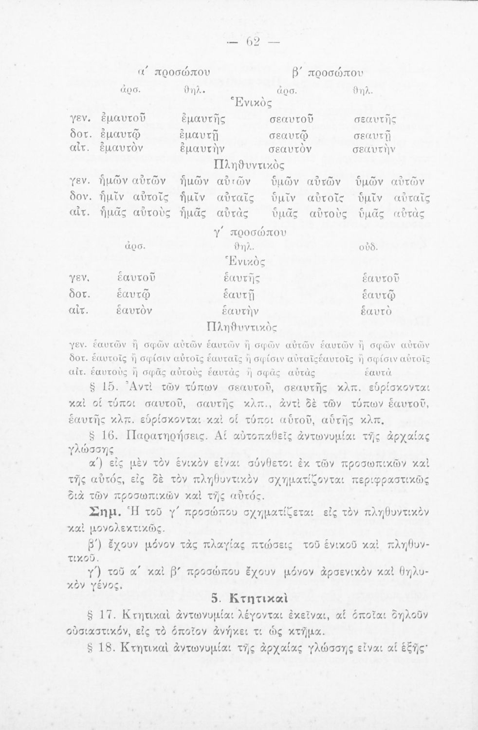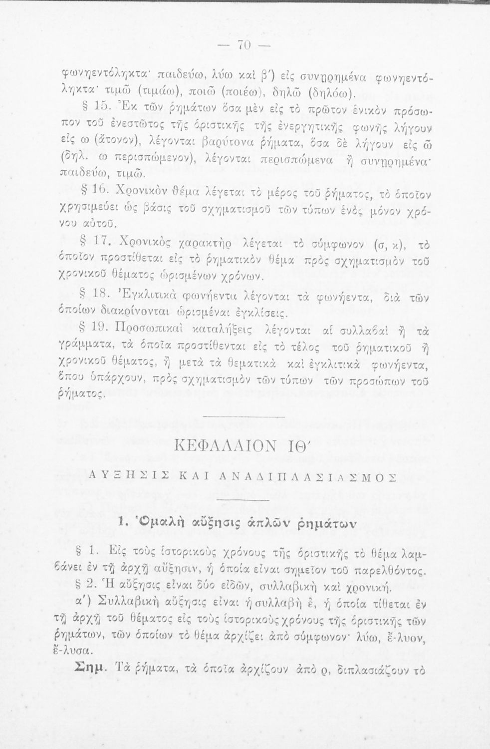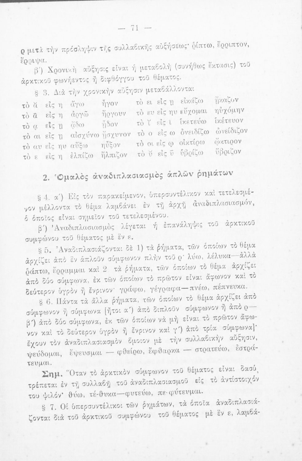Σχολικό εγχειρίδιο Αρχαίων Ελληνικών για τα Ελληνικά Σχολεία και Παρθεναγωγεία που περιέχει τους κανόνες γραμματικής και είναι χωρισμένο σε φθογγολογικό, τυπολογικό και ετυμολογικό μέρος.