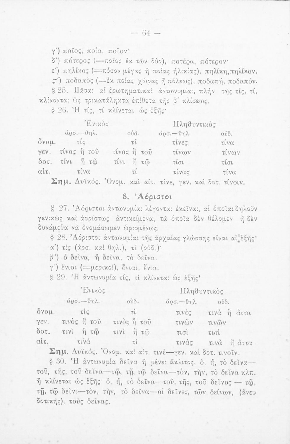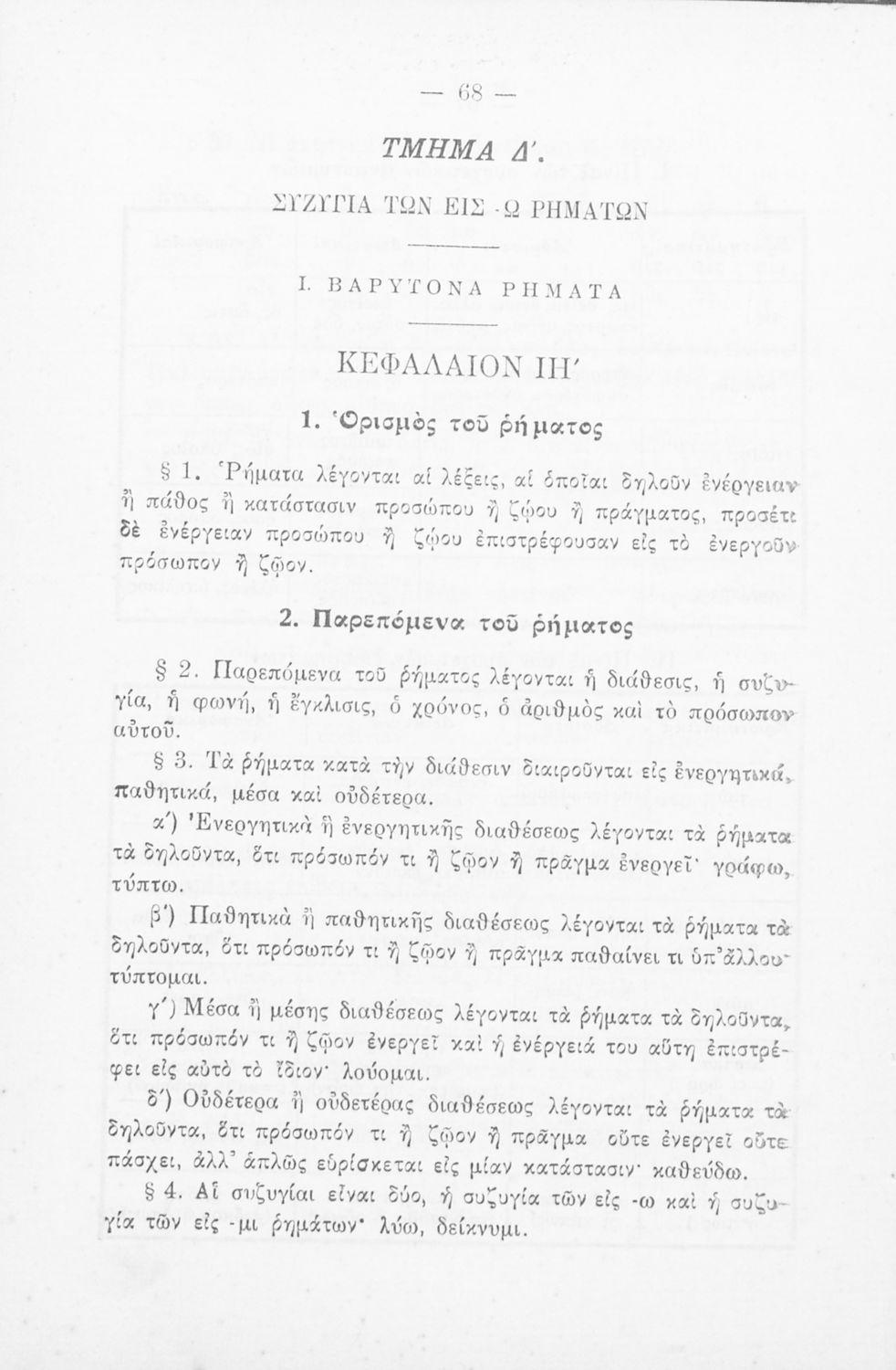 Σχολικό εγχειρίδιο Αρχαίων Ελληνικών για τα Ελληνικά Σχολεία και Παρθεναγωγεία που αποτελεί γραμματική της αρχαίας ελληνικής και είναι χωρισμένο σε φθογγολογικό, τυπολογικό και ετυμολογικό μέρος.