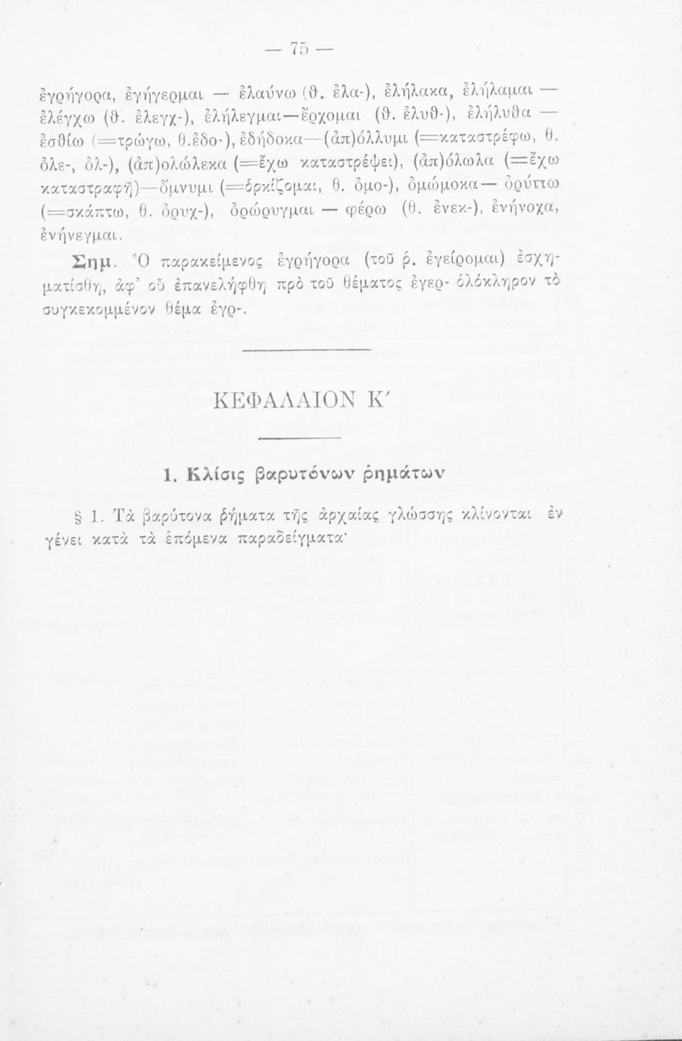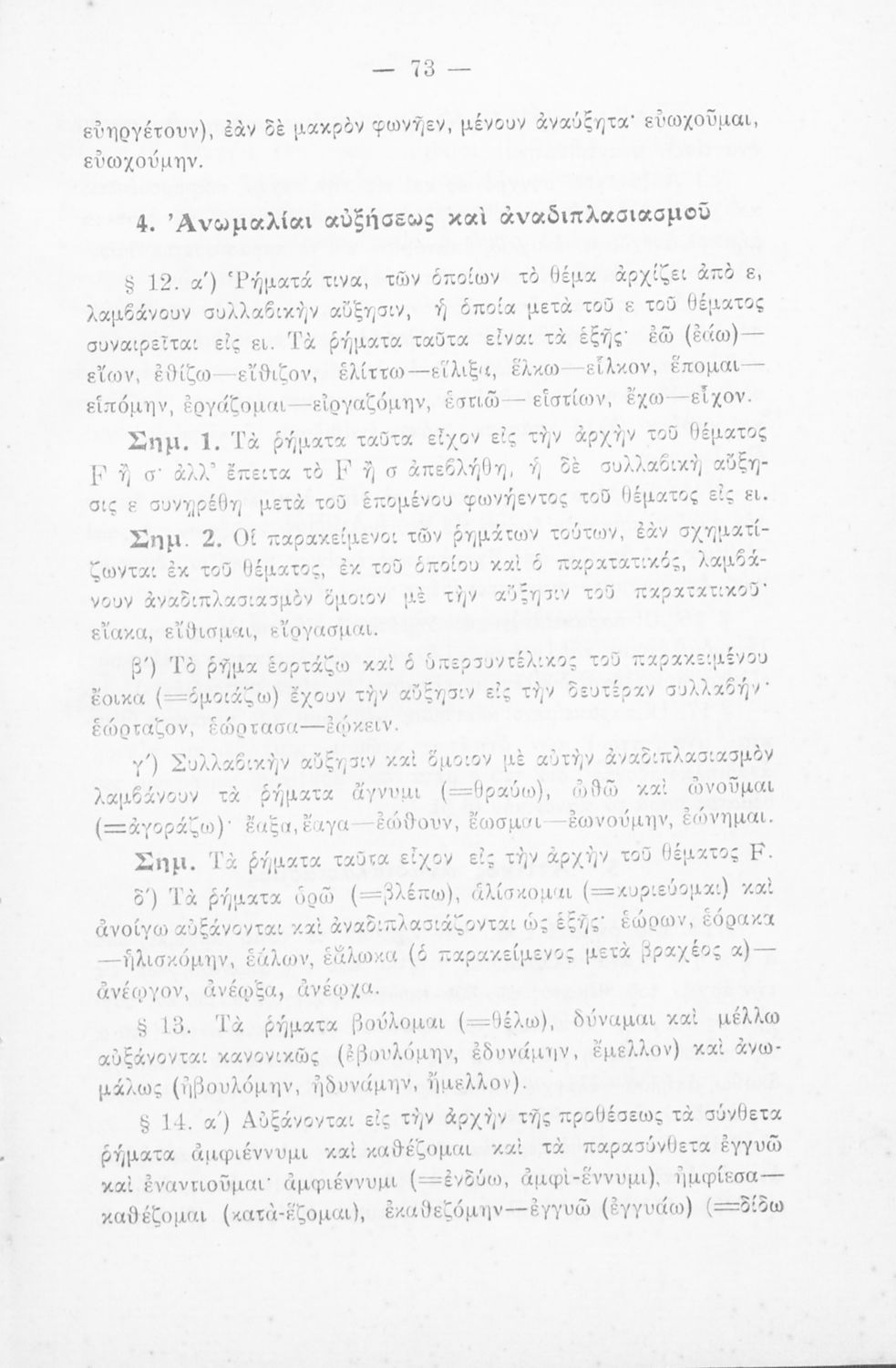 Σχολικό εγχειρίδιο που περιλαμβάνει τη γραμματική της αρχαίας ελληνικής, λεξικό ρημάτων και τους βασικότερους κανόνες του συντακτικού.