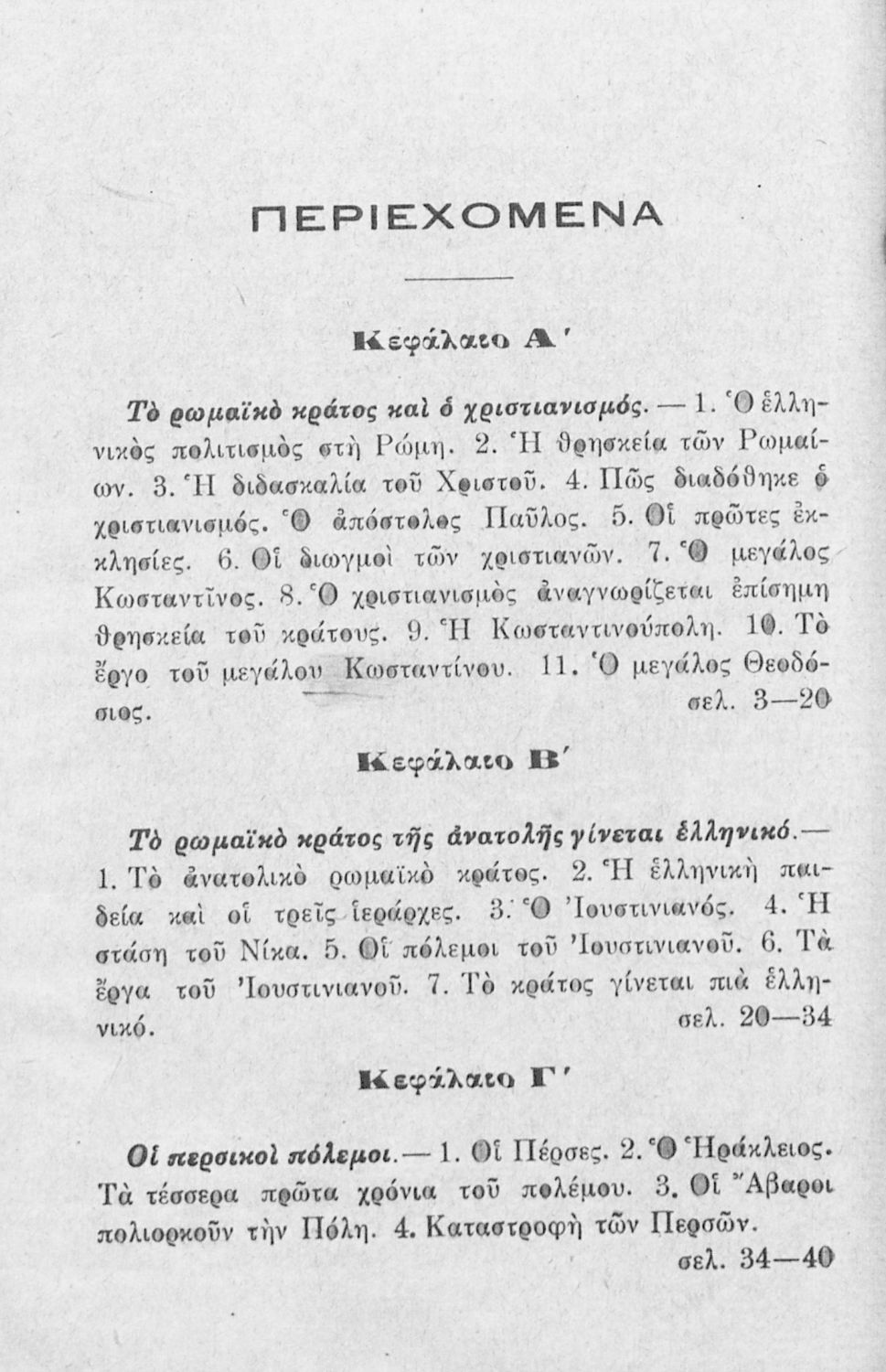 Μαθητικό βοήθημα Ιστορίας Δ΄ Δημοτικού που καλύπτει την περίοδο της Ρωμαϊκής και Βυζαντινής Αυτοκρατορίας μέχρι και την άλωση της Κωνσταντινούπολης. Ο συγγραφέας ήταν επιθεωρητής Δημοτικών Σχολείων.