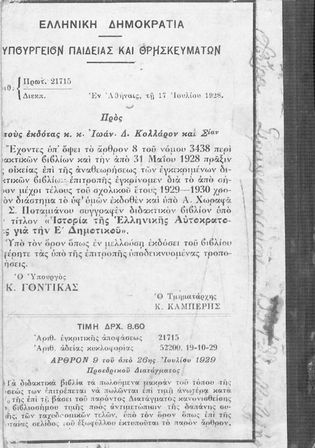 Υπουργική απόφαση / Σύμβαση: 21715/17-7-1928