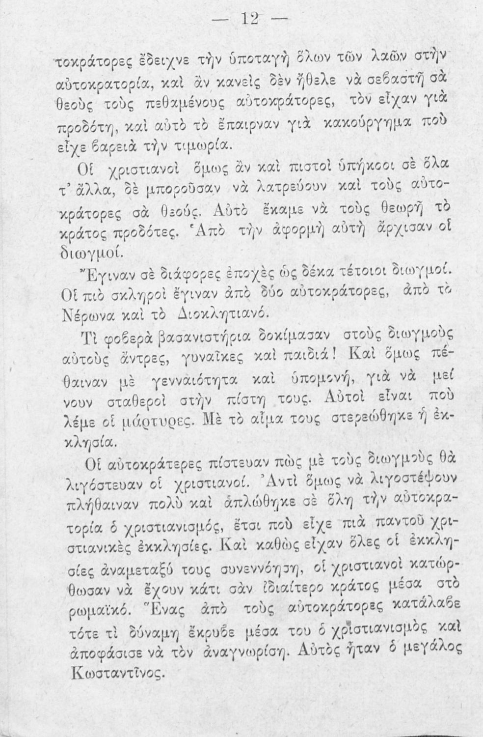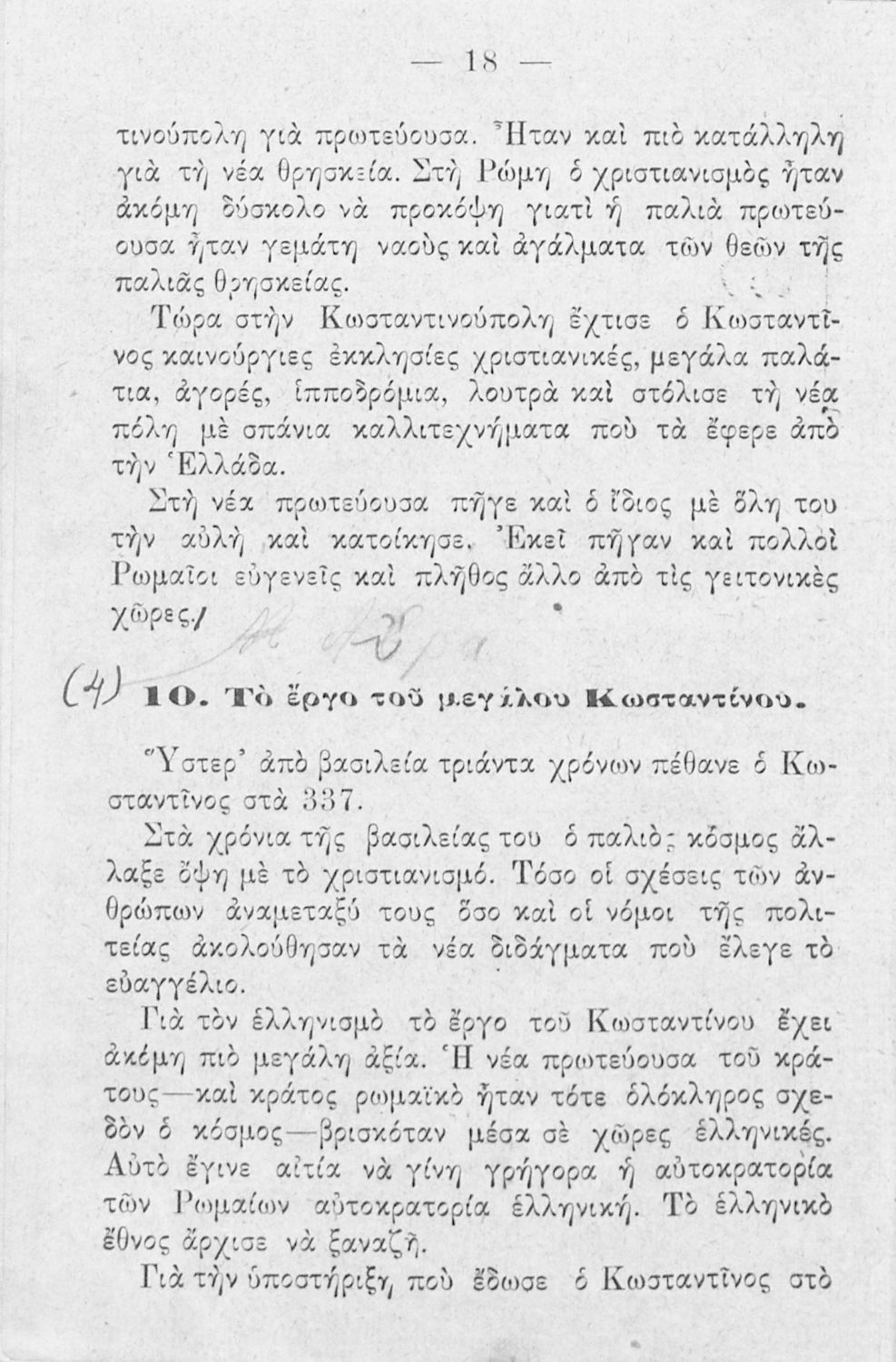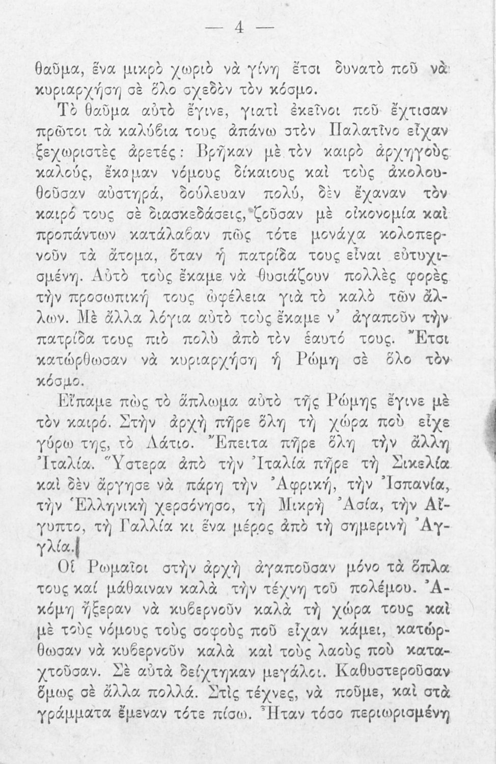 Μαθητικό βοήθημα Ιστορίας Δ΄ Δημοτικού που καλύπτει την περίοδο της Ρωμαϊκής και Βυζαντινής Αυτοκρατορίας μέχρι και την άλωση της Κωνσταντινούπολης. Ο συγγραφέας ήταν επιθεωρητής Δημοτικών Σχολείων.