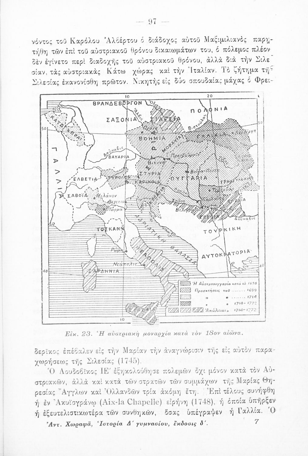 Κωδικός αναγνώρισης: 02-01628 Τίτλος: Ιστορία της νέας Ελλάδος (1453-1924) και η σύγχρονος της όλης Ευρώπης εγκεκριμένη δια την Δ΄ τάξιν των Τετραταξίων Γυμνασίων και την αντίστοιχον των λοιπών σχολείων της Μέσης Εκπαιδεύσεως Συγγραφέας: Αντώνιος Χωραφάς Μέγεθος και υπόστρωμα: Σχολικό εγχειρίδιο, σκληρό εξώφυλλο, 408 σελίδες. Εικόνες (ασπρόμαυρες), σκίτσα (ασπρόμαυρα), χάρτες (ασπρόμαυροι). |