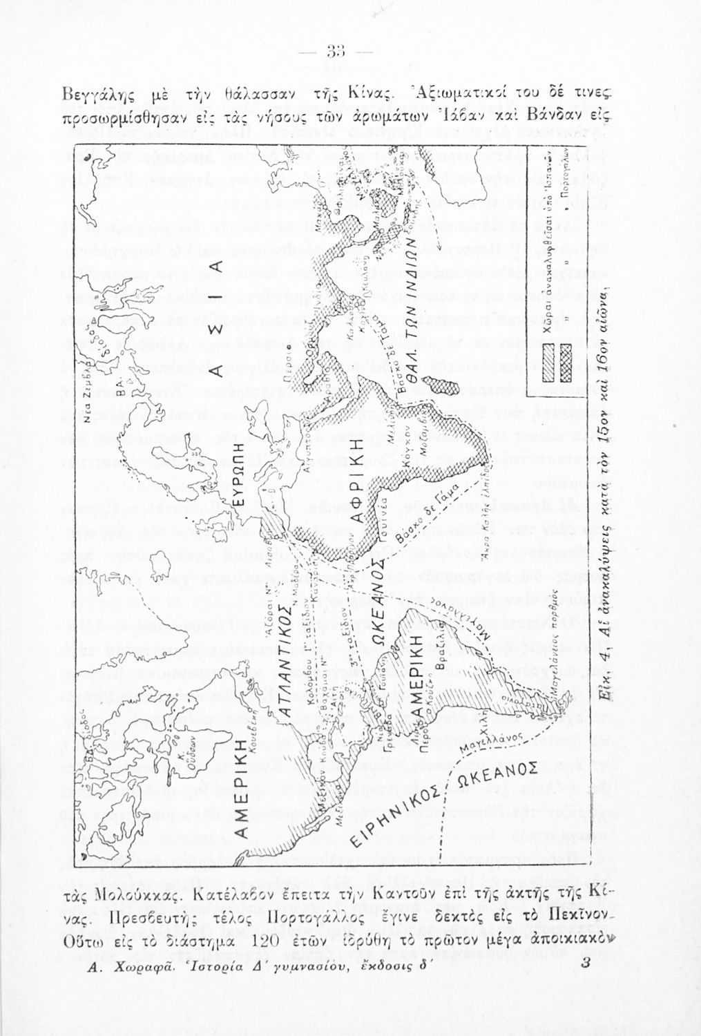 Κωδικός αναγνώρισης: 02-01628 Τίτλος: Ιστορία της νέας Ελλάδος (1453-1924) και η σύγχρονος της όλης Ευρώπης εγκεκριμένη δια την Δ΄ τάξιν των Τετραταξίων Γυμνασίων και την αντίστοιχον των λοιπών σχολείων της Μέσης Εκπαιδεύσεως Συγγραφέας: Αντώνιος Χωραφάς Μέγεθος και υπόστρωμα: Σχολικό εγχειρίδιο, σκληρό εξώφυλλο, 408 σελίδες. Εικόνες (ασπρόμαυρες), σκίτσα (ασπρόμαυρα), χάρτες (ασπρόμαυροι). |