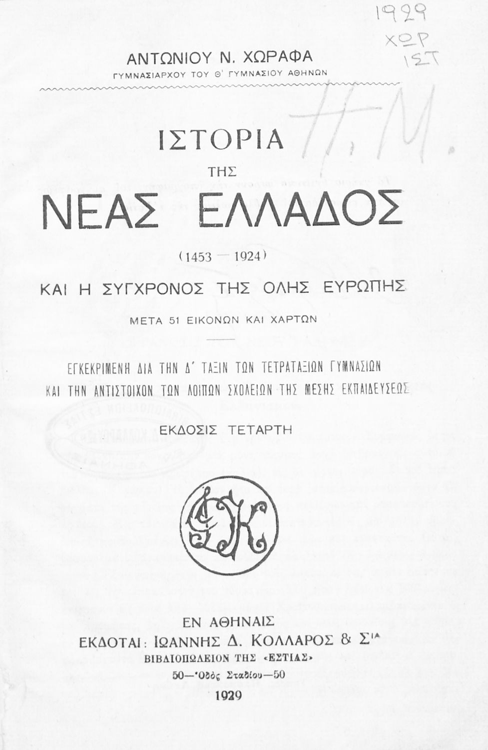 Εκδότης: Ιωάννης Δ. Κολλάρος και ΣΙΑ Έτος έκδοσης: 1929 Τόπος έκδοσης: Αθήνα Έκδοση: 4η |