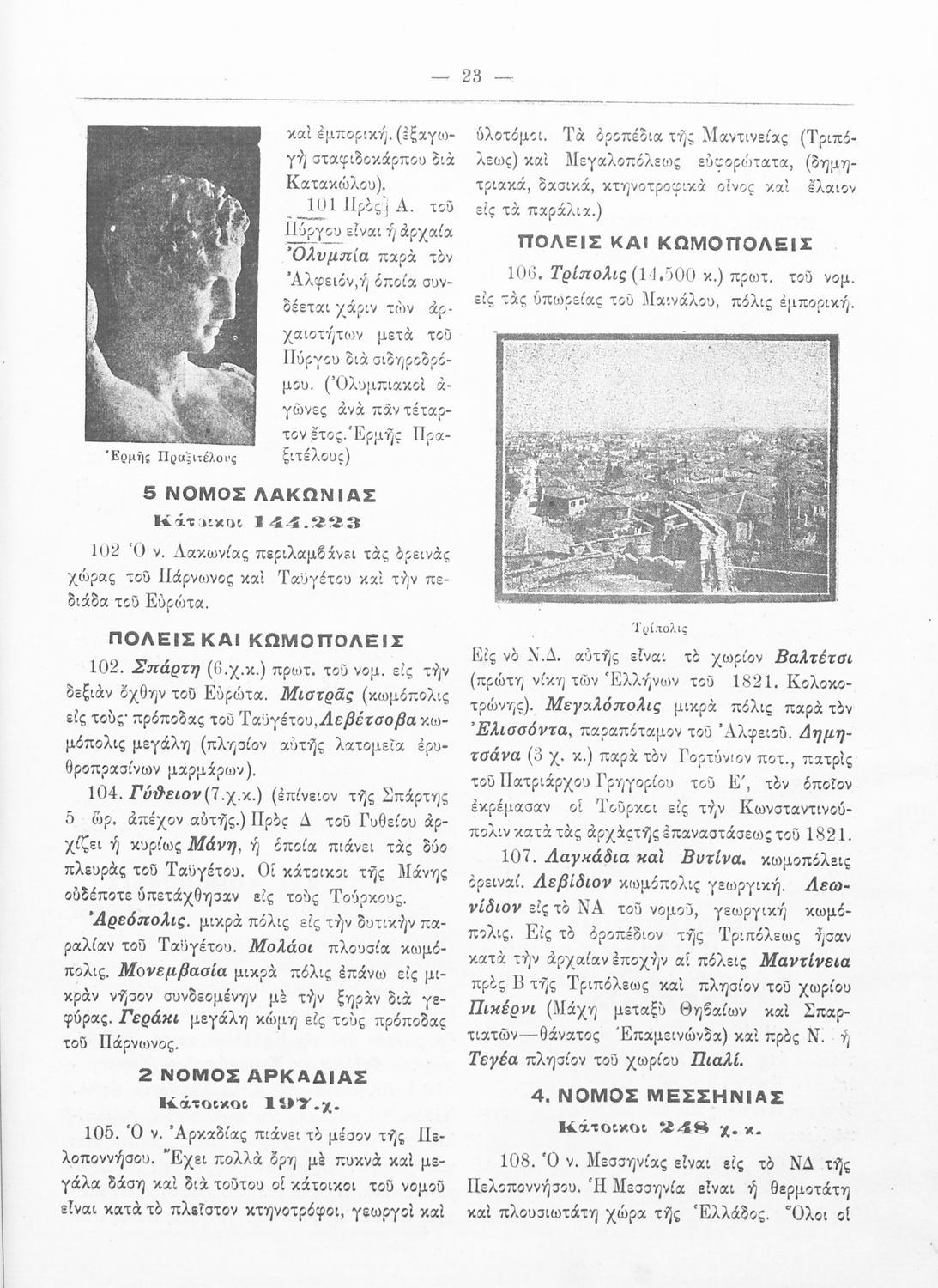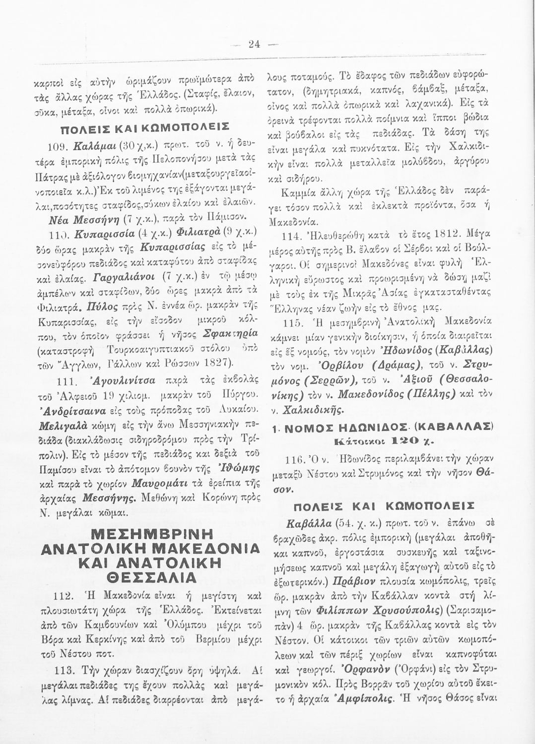 Βαθμίδα εκπαίδευσης: Πρωτοβάθμια Τάξη: Γ' Δημοτικού / Δ' Δημοτικού Μάθημα: Γεωγραφία Γλώσσα: Απλή καθαρεύουσα Παρουσίαση περιεχομένου: Μαθητικό Βοήθημα Γεωγραφίας Γ΄ και Δ΄ Δημοτικού που εστιάζει στη γεωμορφολογία της Ελλάδας και στους επιμέρους νομούς της και περιλαμβάνειν συνοπτικά στοιχεία για την Κύπρο και τα Βαλκάνια. |