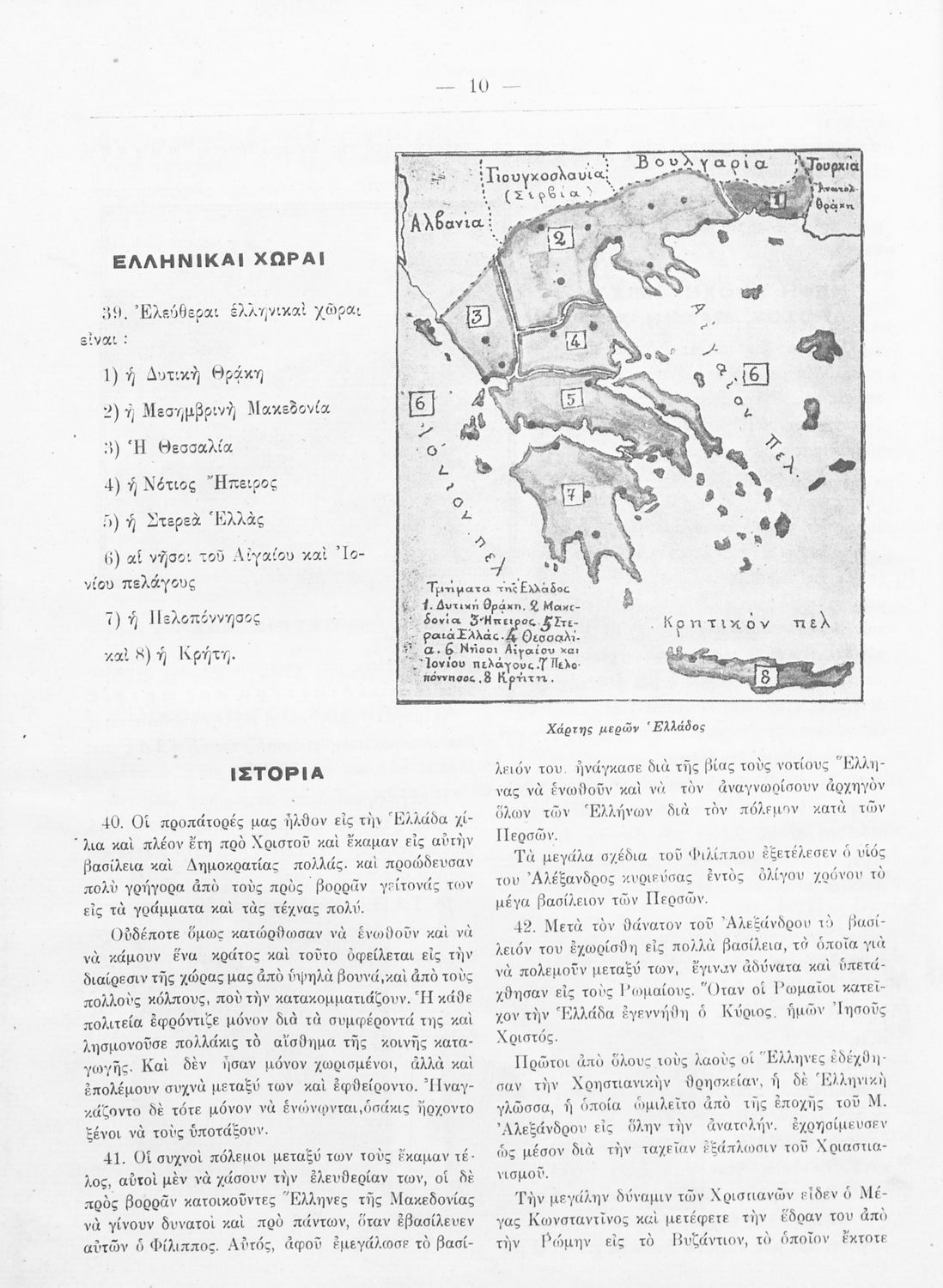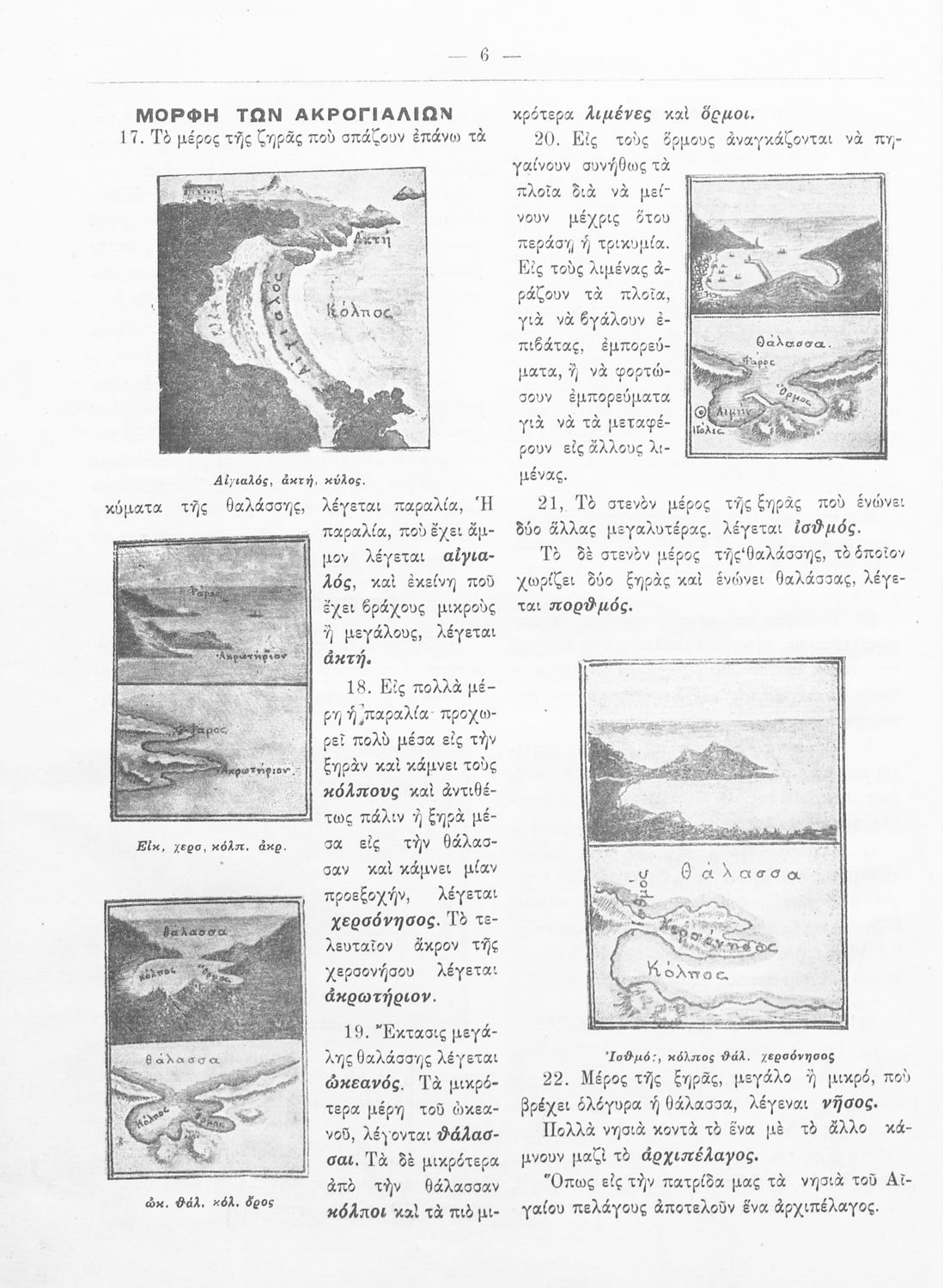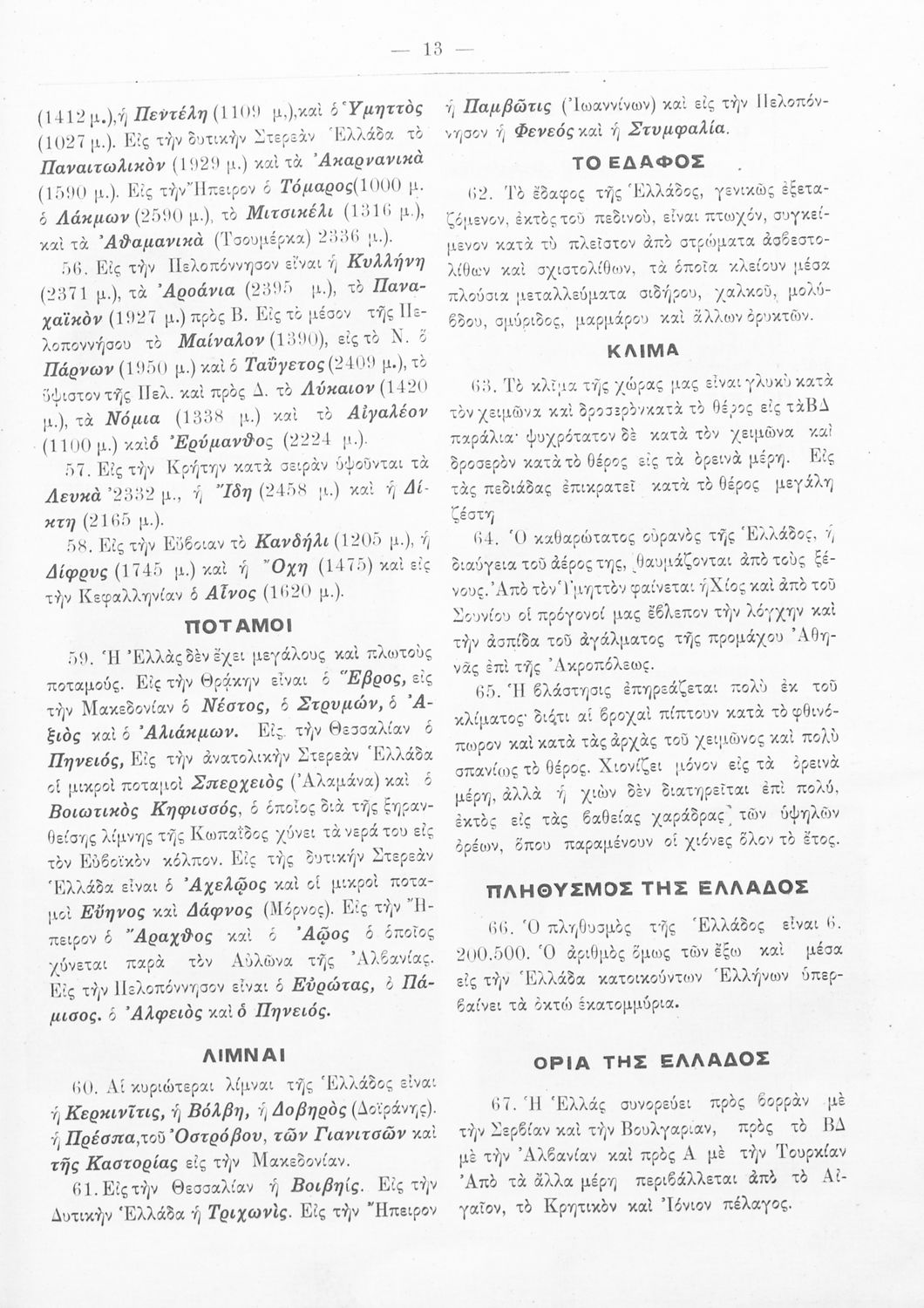 Βαθμίδα εκπαίδευσης: Πρωτοβάθμια Τάξη: Γ' Δημοτικού / Δ' Δημοτικού Μάθημα: Γεωγραφία Γλώσσα: Απλή καθαρεύουσα Παρουσίαση περιεχομένου: Μαθητικό Βοήθημα Γεωγραφίας Γ΄ και Δ΄ Δημοτικού που εστιάζει στη γεωμορφολογία της Ελλάδας και στους επιμέρους νομούς της και περιλαμβάνειν συνοπτικά στοιχεία για την Κύπρο και τα Βαλκάνια. |