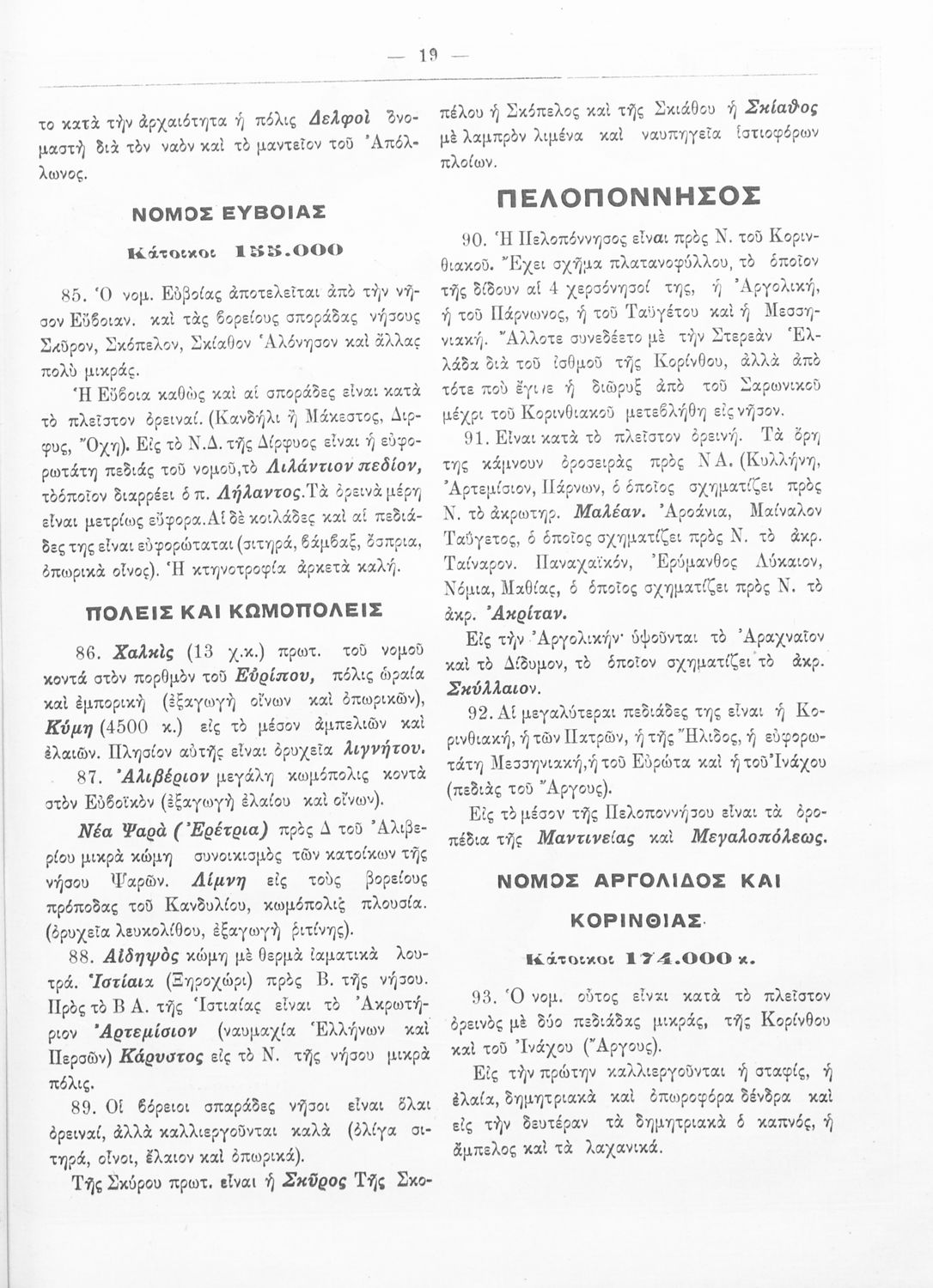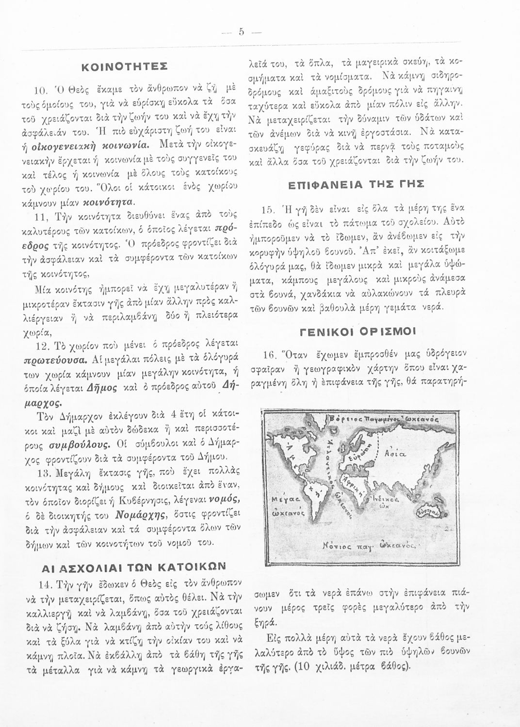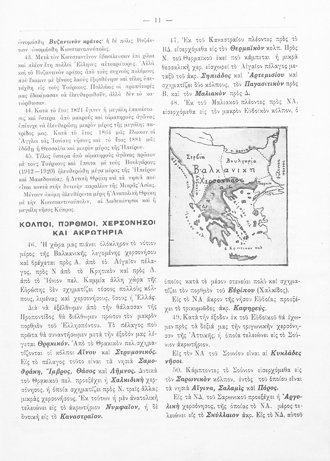 Βαθμίδα εκπαίδευσης: Πρωτοβάθμια Τάξη: Γ' Δημοτικού / Δ' Δημοτικού Μάθημα: Γεωγραφία Γλώσσα: Απλή καθαρεύουσα Παρουσίαση περιεχομένου: Μαθητικό Βοήθημα Γεωγραφίας Γ΄ και Δ΄ Δημοτικού που εστιάζει στη γεωμορφολογία της Ελλάδας και στους επιμέρους νομούς της και περιλαμβάνειν συνοπτικά στοιχεία για την Κύπρο και τα Βαλκάνια. |