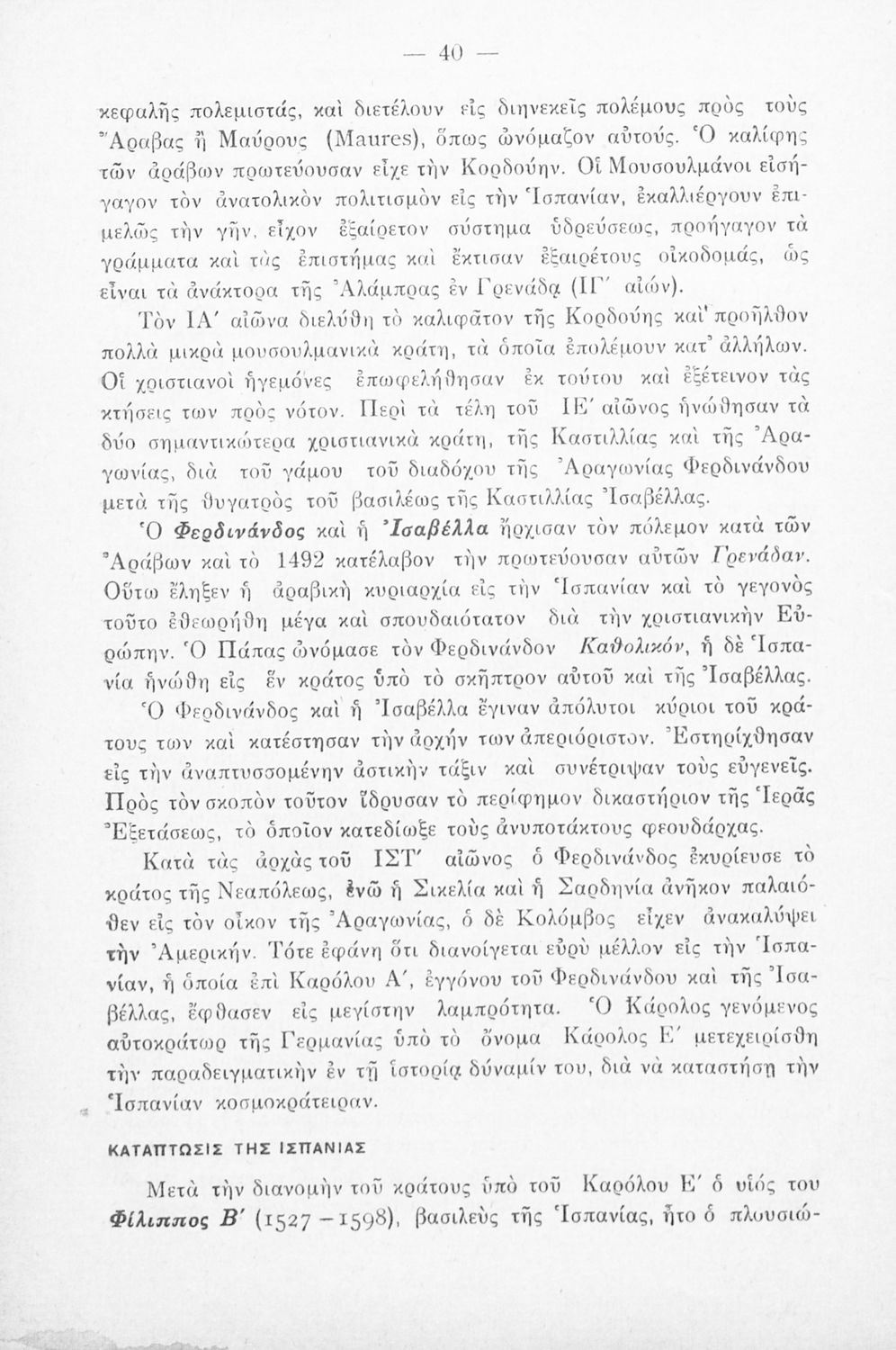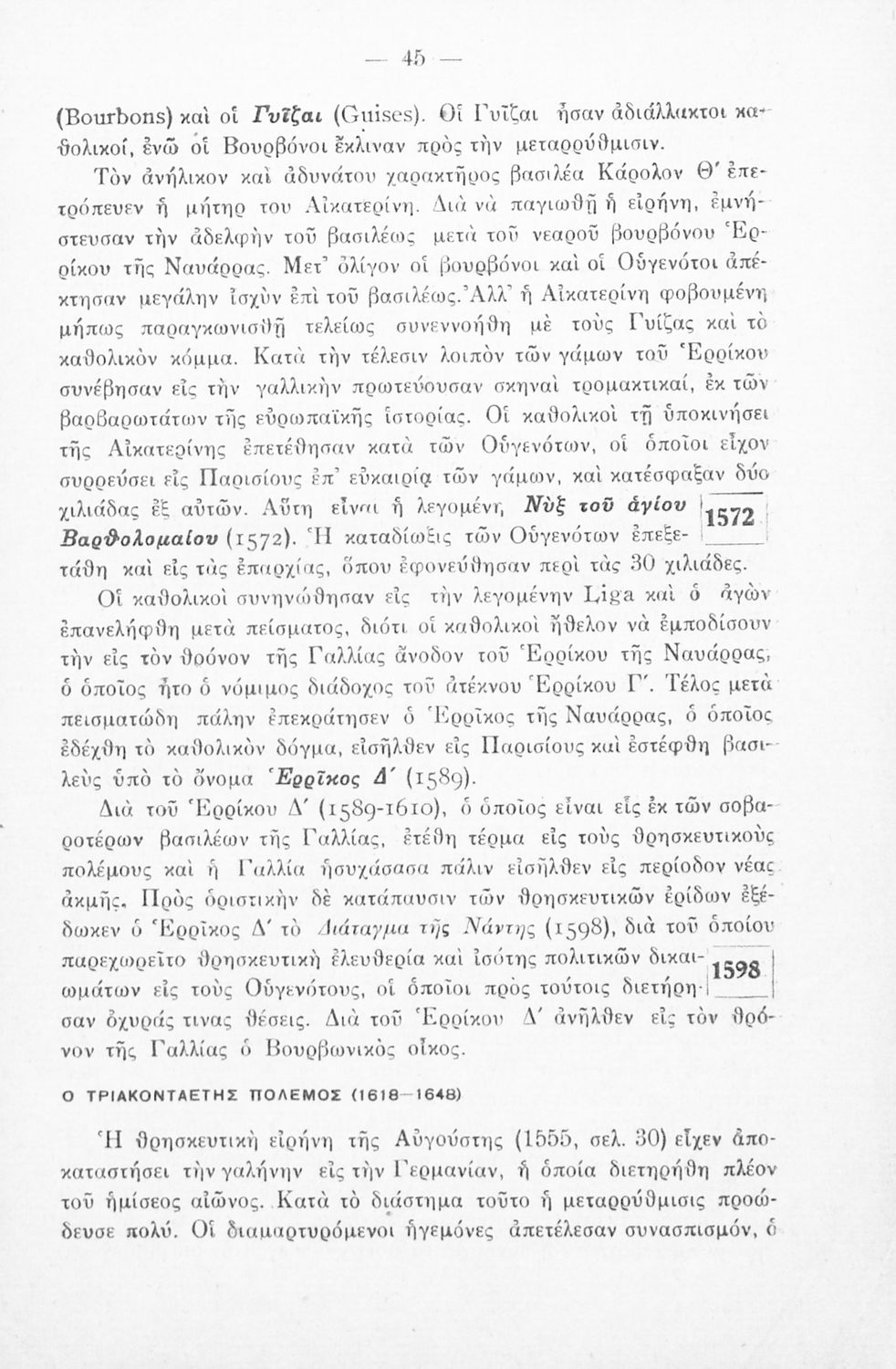 Κωδικός αναγνώρισης: 02-01637 Τίτλος: Ιστορία ελληνική και ευρωπαϊκή των νέων χρόνων δια την Δ΄ τάξιν των Γυμνασίων και τας αντιστοίχους των λοιπών σχολείων της Μέσης Εκπαιδεύσεως Συγγραφέας: Χ. Θεοδωρίδης, Αναστάσιος Λαζάρου Μέγεθος και υπόστρωμα: Σχολικό εγχειρίδιο, μαλακό εξώφυλλο, 398 σελίδες. Εικόνες (ασπρόμαυρες), σκίτσα (ασπρόμαυρα), χάρτες (ασπρόμαυροι). |