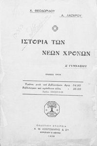 Ιστορία ελληνική και ευρωπαϊκή των νέων χρόνων δια την Δ΄ τάξιν των Γυμνασίων και τας αντιστοίχους των λοιπών σχολείων της Μέσης Εκπαιδεύσεως