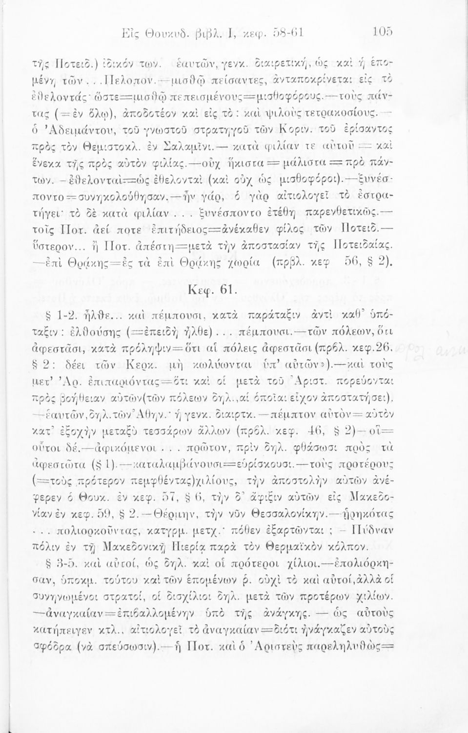 Σχολικό εγχειρίδιο Αρχαίων Ελληνικών Β΄ και Γ΄ Γυμνασίου που περιλαμβάνει εισαγωγή στη ζωή και το έργο του Θουκυδίδη, αποσπάσματα από το πρώτο βιβλίο της Ιστορίας, και ερμηνευτικά, πραγματολογικά και γλωσσικά ...