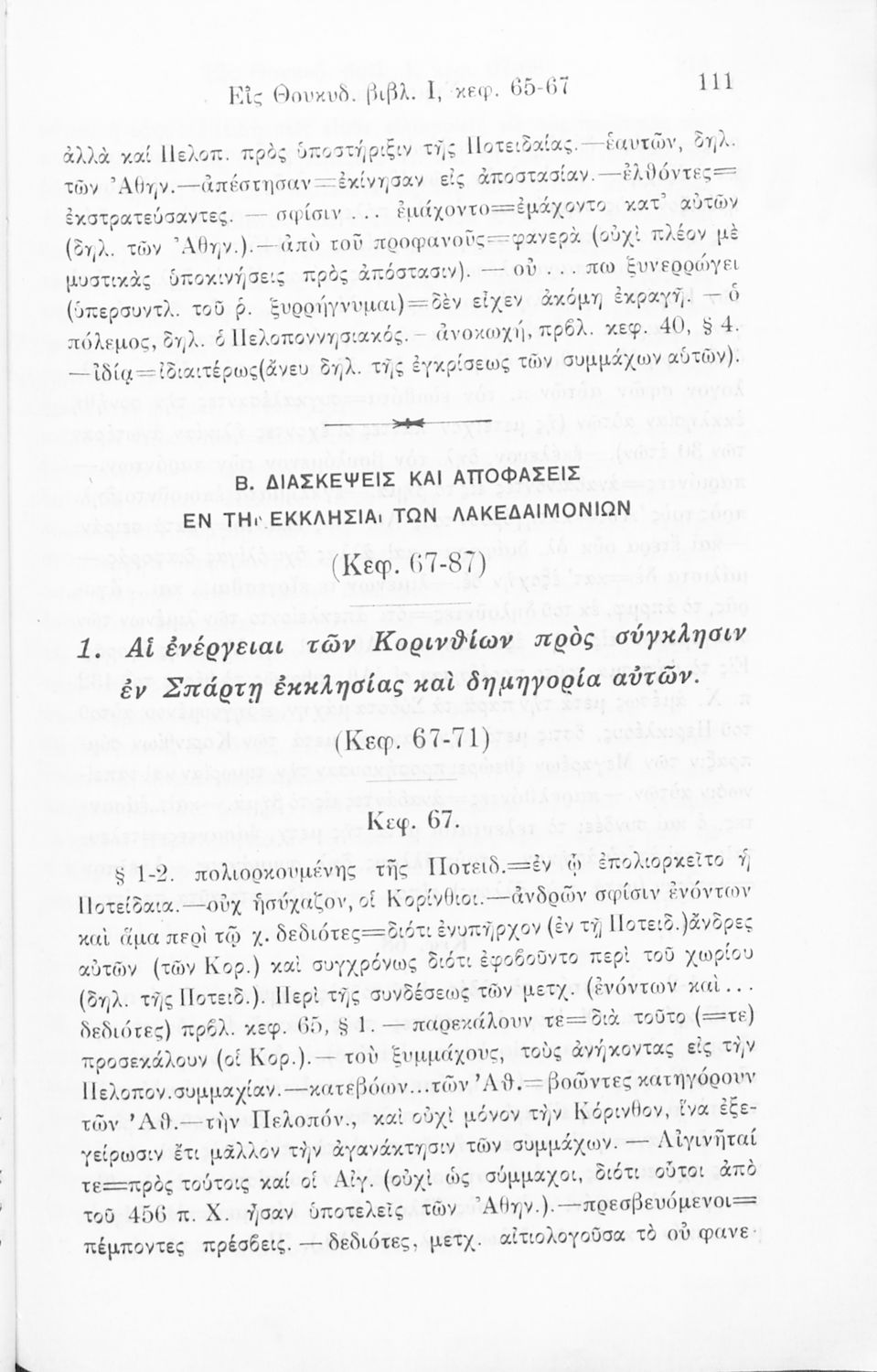 Θουκυδίδου Το πρώτον βιβλίον κατ΄ εκλογήν εκδοθέν διά την Β΄ και Γ΄ τάξιν των Γυμνασίων