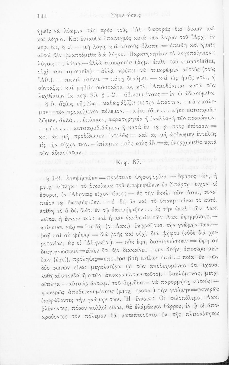 Σχολικό εγχειρίδιο Αρχαίων Ελληνικών Β΄ και Γ΄ Γυμνασίου που περιέχει αποσπάσματα από το έργο του Θουκυδίδη Ιστορία, και ερμηνευτικές και πραγματολογικές παρατηρήσεις.