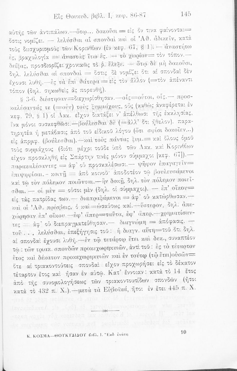 Σχολικό εγχειρίδιο Αρχαίων Ελληνικών Β΄ και Γ΄ Γυμνασίου που περιλαμβάνει εισαγωγή στη ζωή και το έργο του Θουκυδίδη, αποσπάσματα από το πρώτο βιβλίο της Ιστορίας, και ερμηνευτικά, πραγματολογικά και γλωσσικά ...
