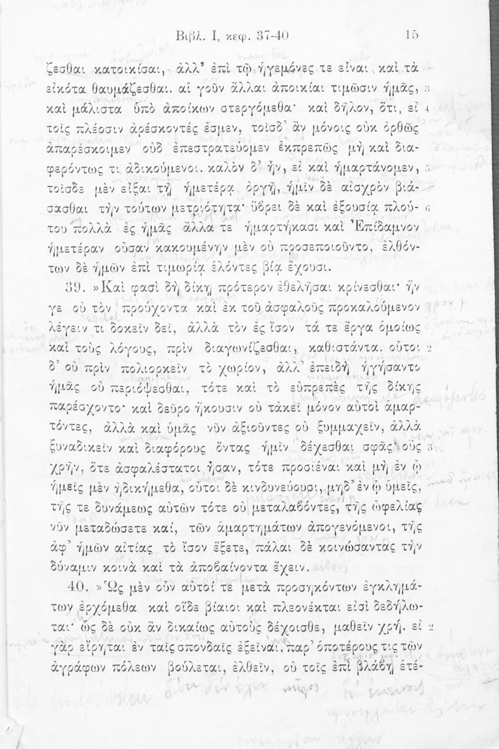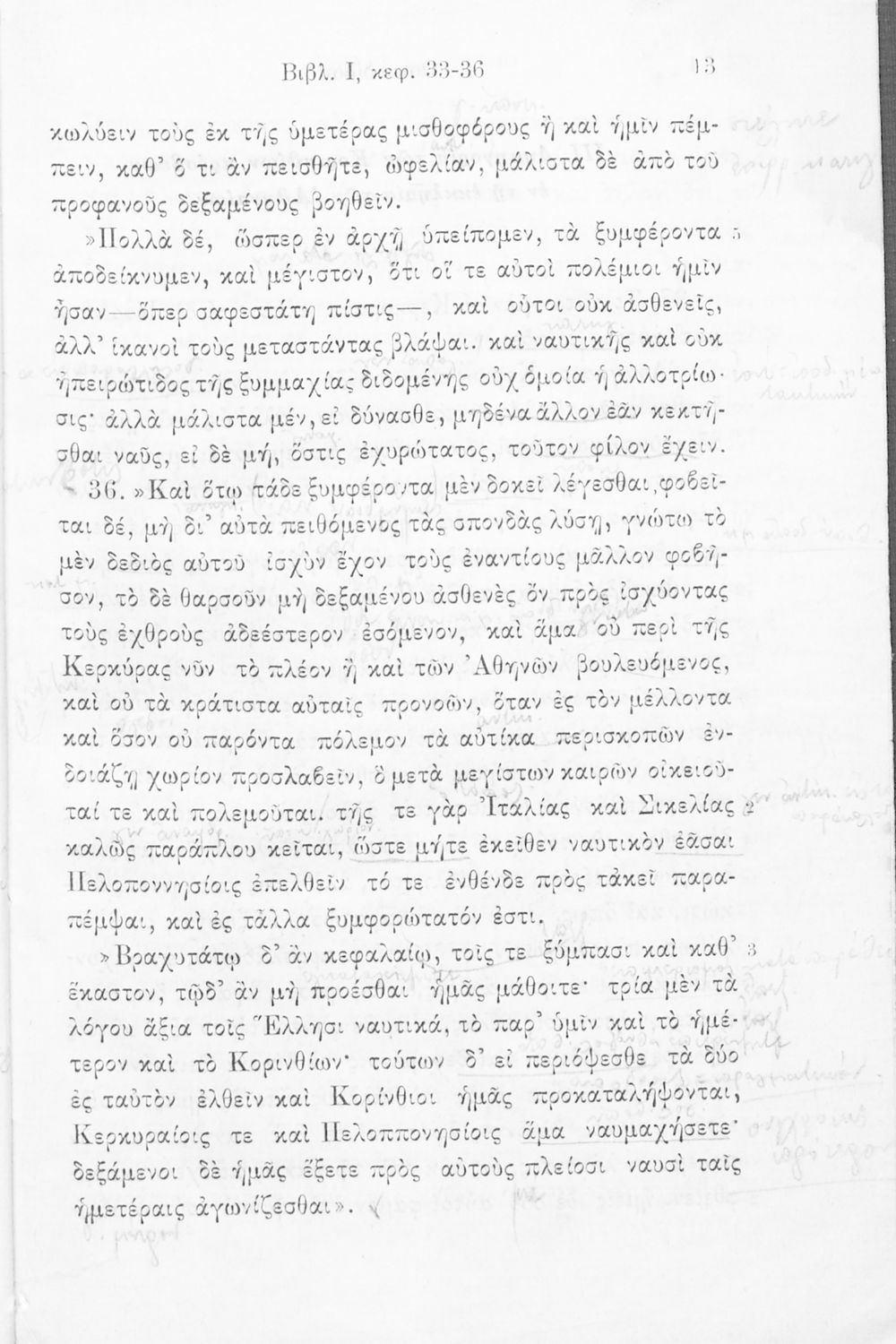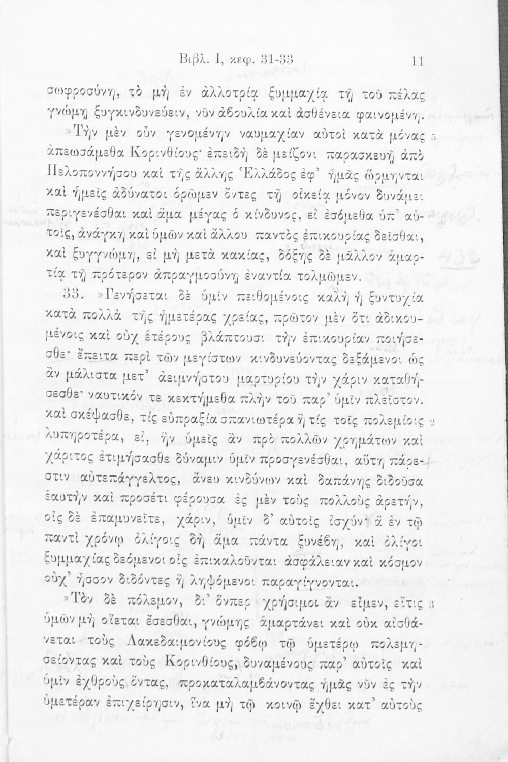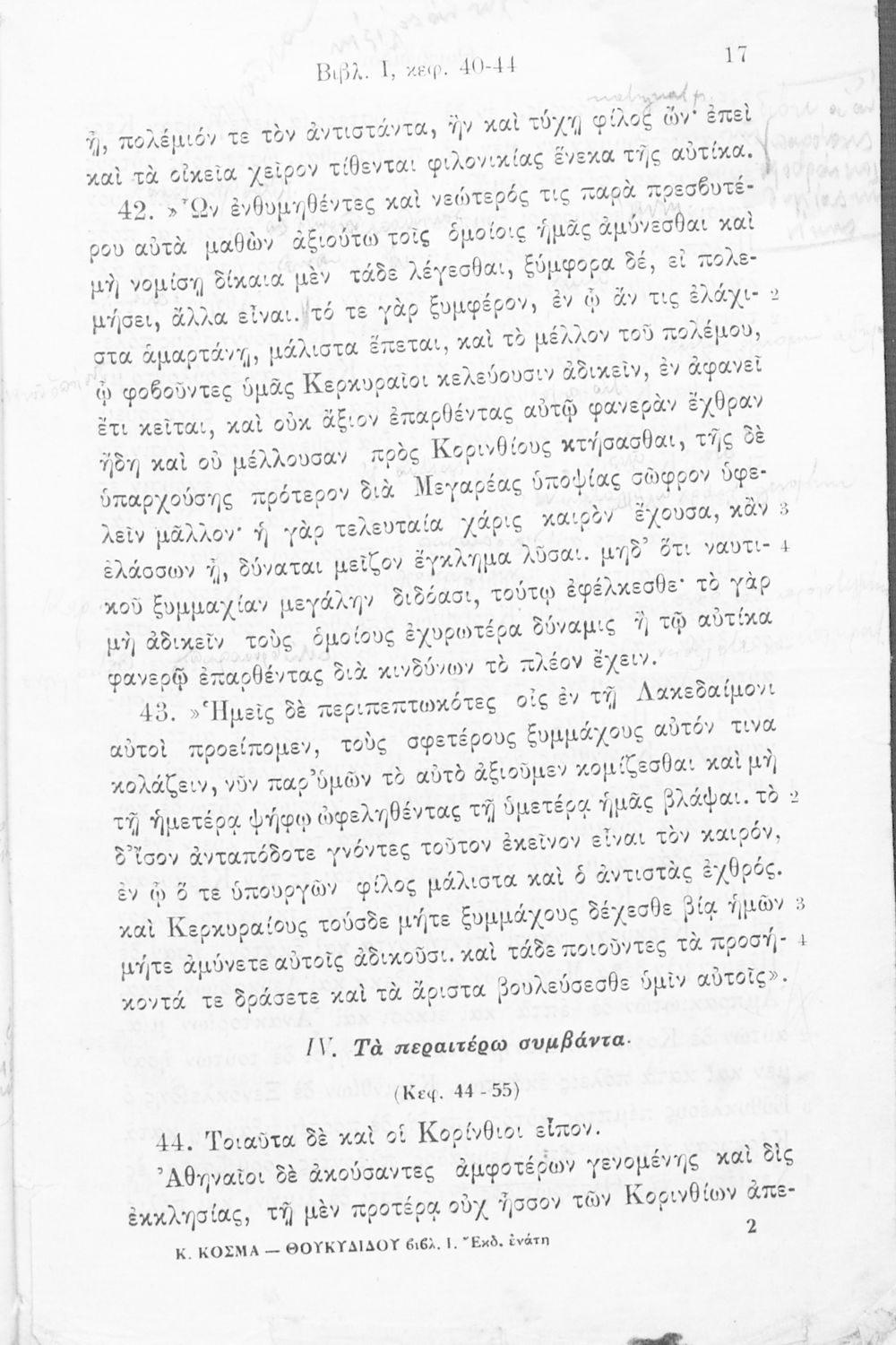 520 ## _aΣχολικό εγχειρίδιο Αρχαίων Ελληνικών Β΄ και Γ΄ Γυμνασίου που περιλαμβάνει αποσπάσματα από το πρώτο βιβλίο της Ιστορίας του Θουκυδίδη καθώς και εισαγωγή στη ζωή και το έργο του συγγραφέα. Το βιβλίο επίσης περιλαμβάνει εισαγωγικά, ερμηνευτικά, πραγματολογικά και γλωσσικά σχόλια στην υπόθεση του έργου.