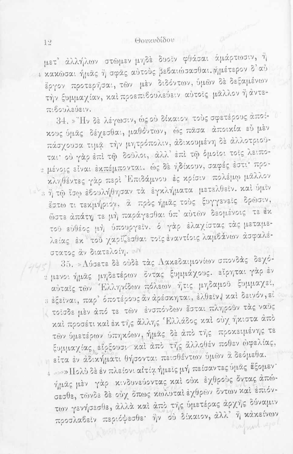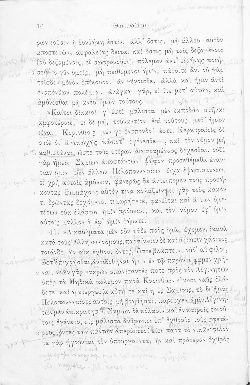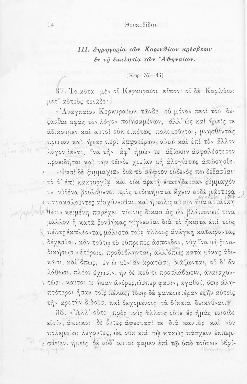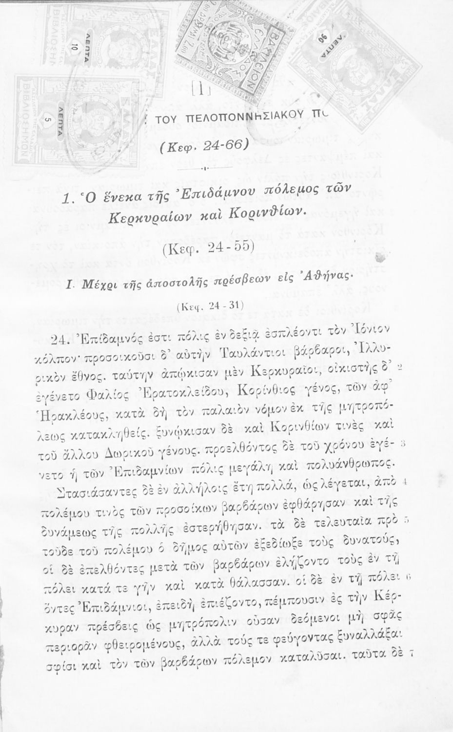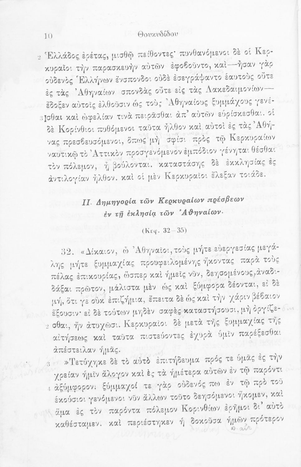 520 ## _aΣχολικό εγχειρίδιο Αρχαίων Ελληνικών Β΄ και Γ΄ Γυμνασίου που περιλαμβάνει αποσπάσματα από το πρώτο βιβλίο της Ιστορίας του Θουκυδίδη καθώς και εισαγωγή στη ζωή και το έργο του συγγραφέα. Το βιβλίο επίσης περιλαμβάνει εισαγωγικά, ερμηνευτικά, πραγματολογικά και γλωσσικά σχόλια στην υπόθεση του έργου.