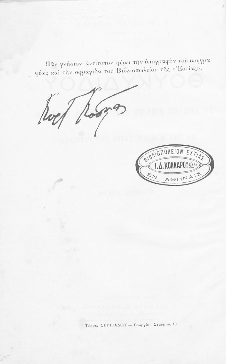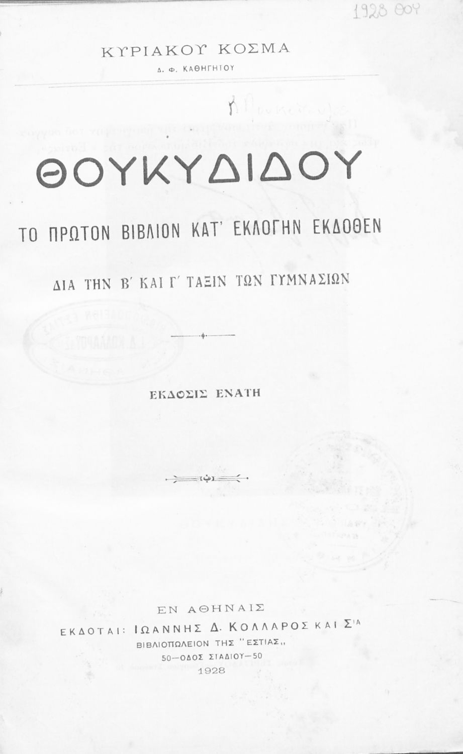 Εκδότης: Ιωάννης Δ. Κολλάρος και ΣΙΑ Έτος έκδοσης: 1928 Τόπος έκδοσης: Αθήνα Έκδοση: 9η |