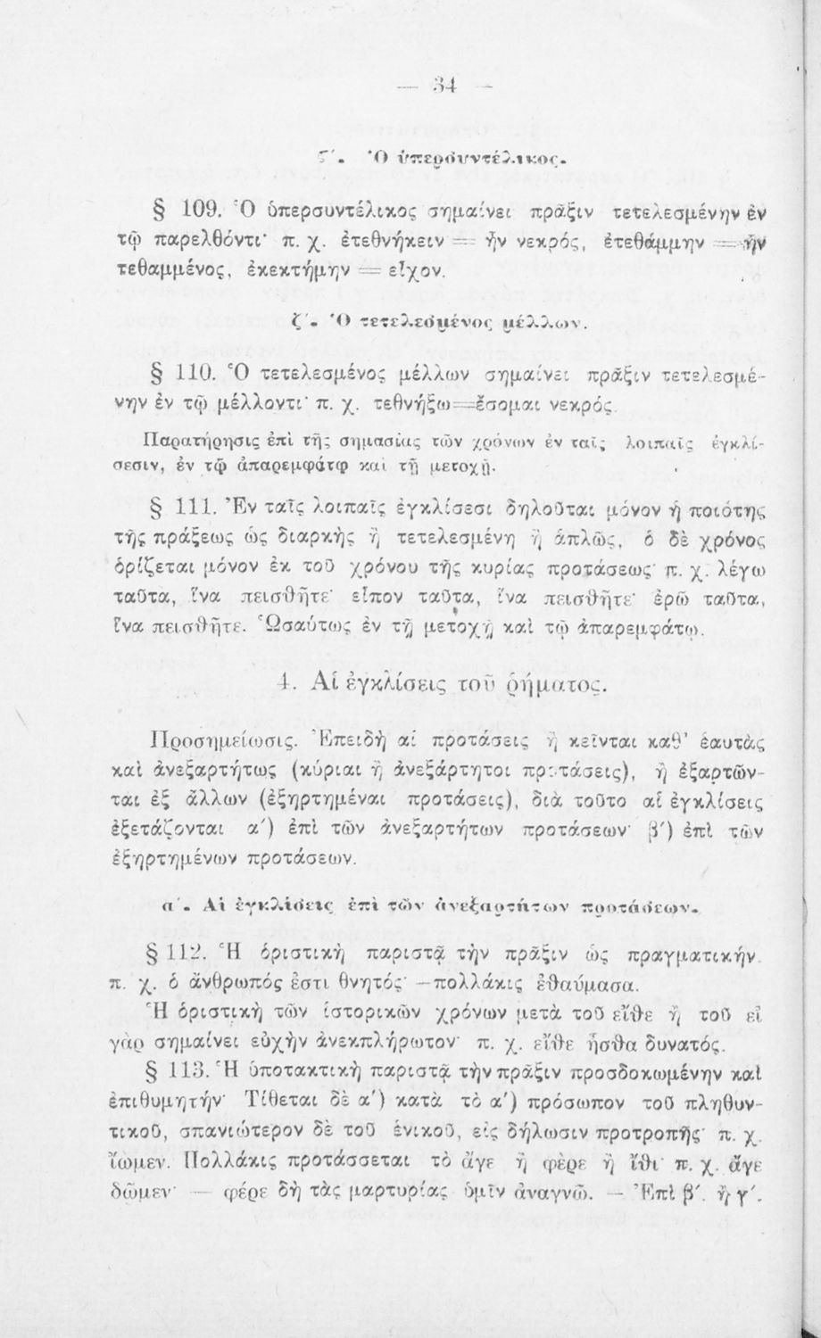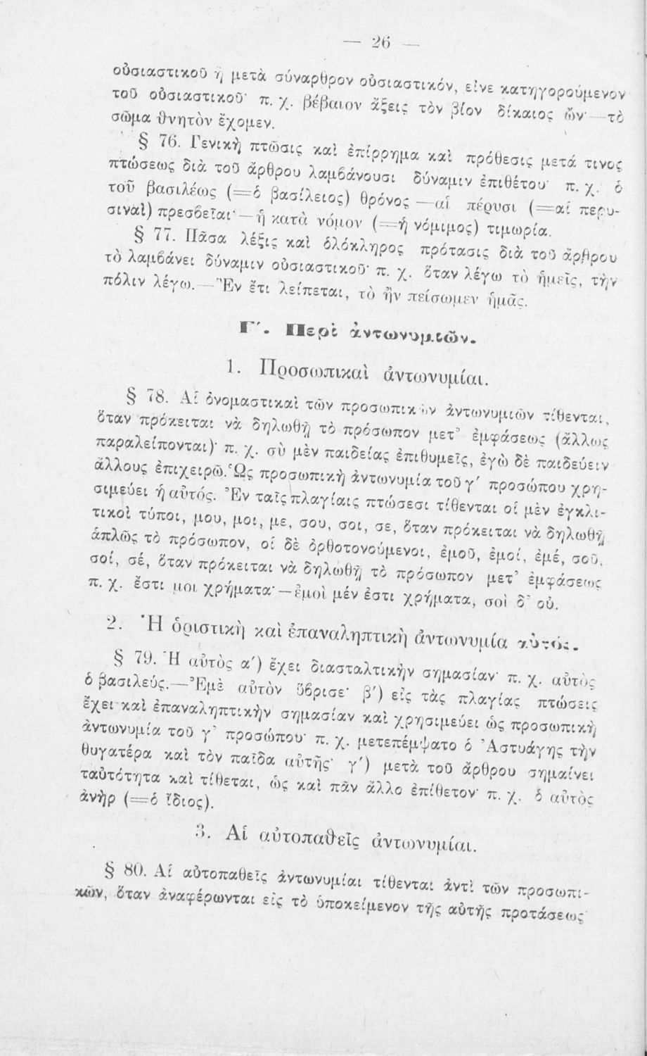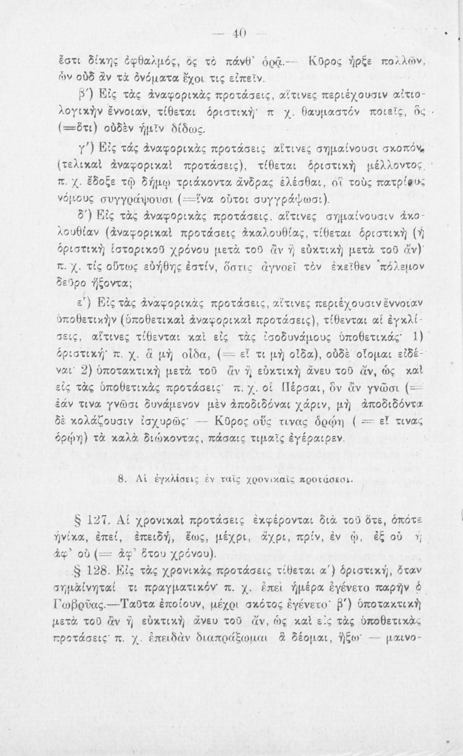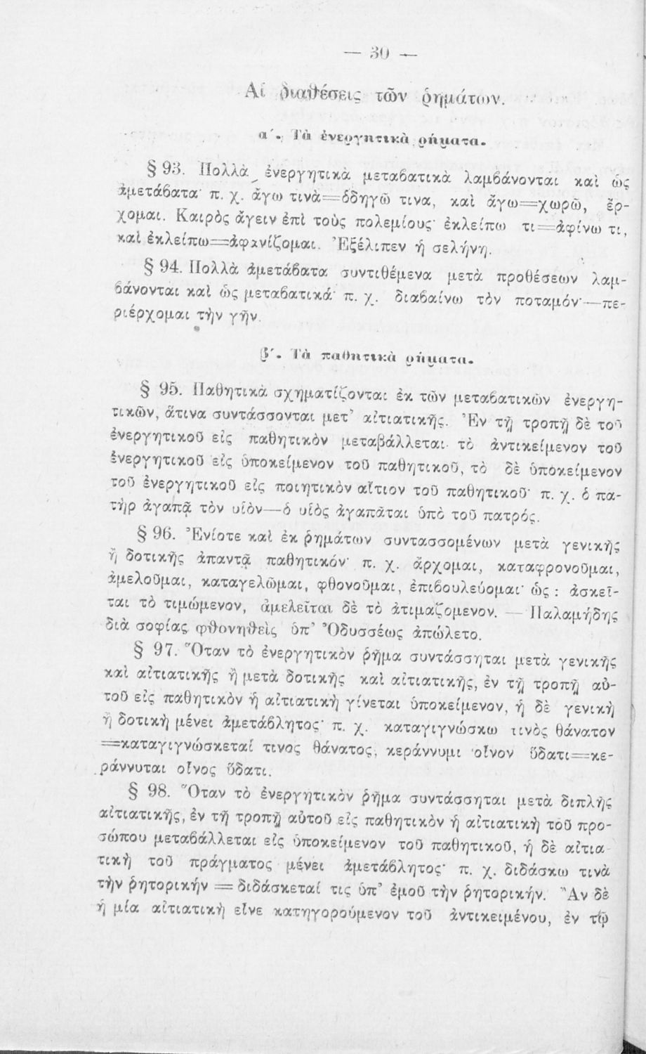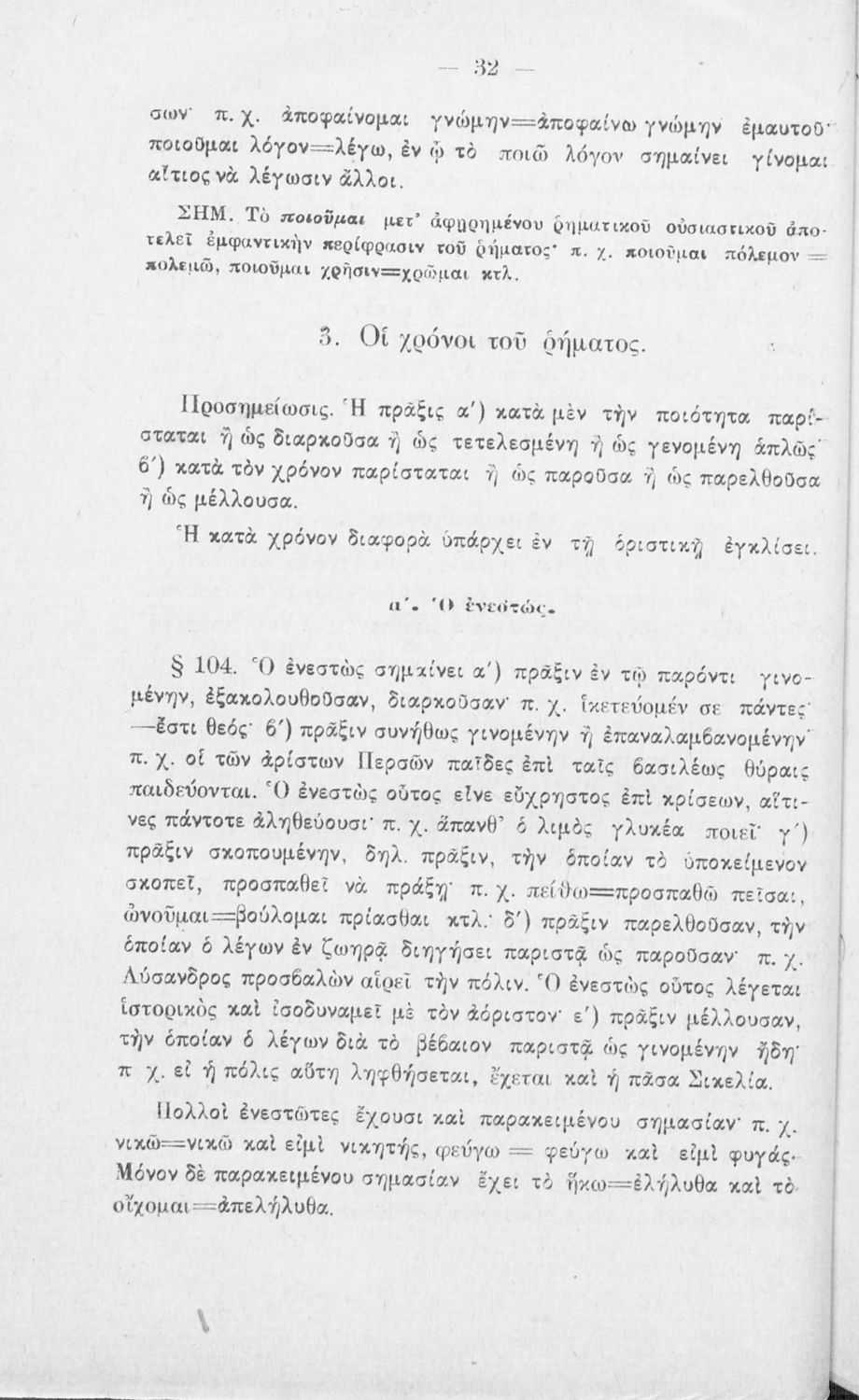 Σχολικό εγχειρίδιο Αρχαίων Ελληνικών για τα Ελληνικά Σχολεία και Παρθεναγωγεία που εστιάζει στα μέρη του λόγου και στην σύνταξή τους.