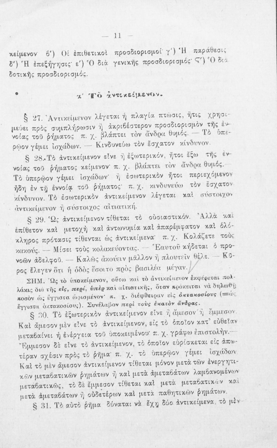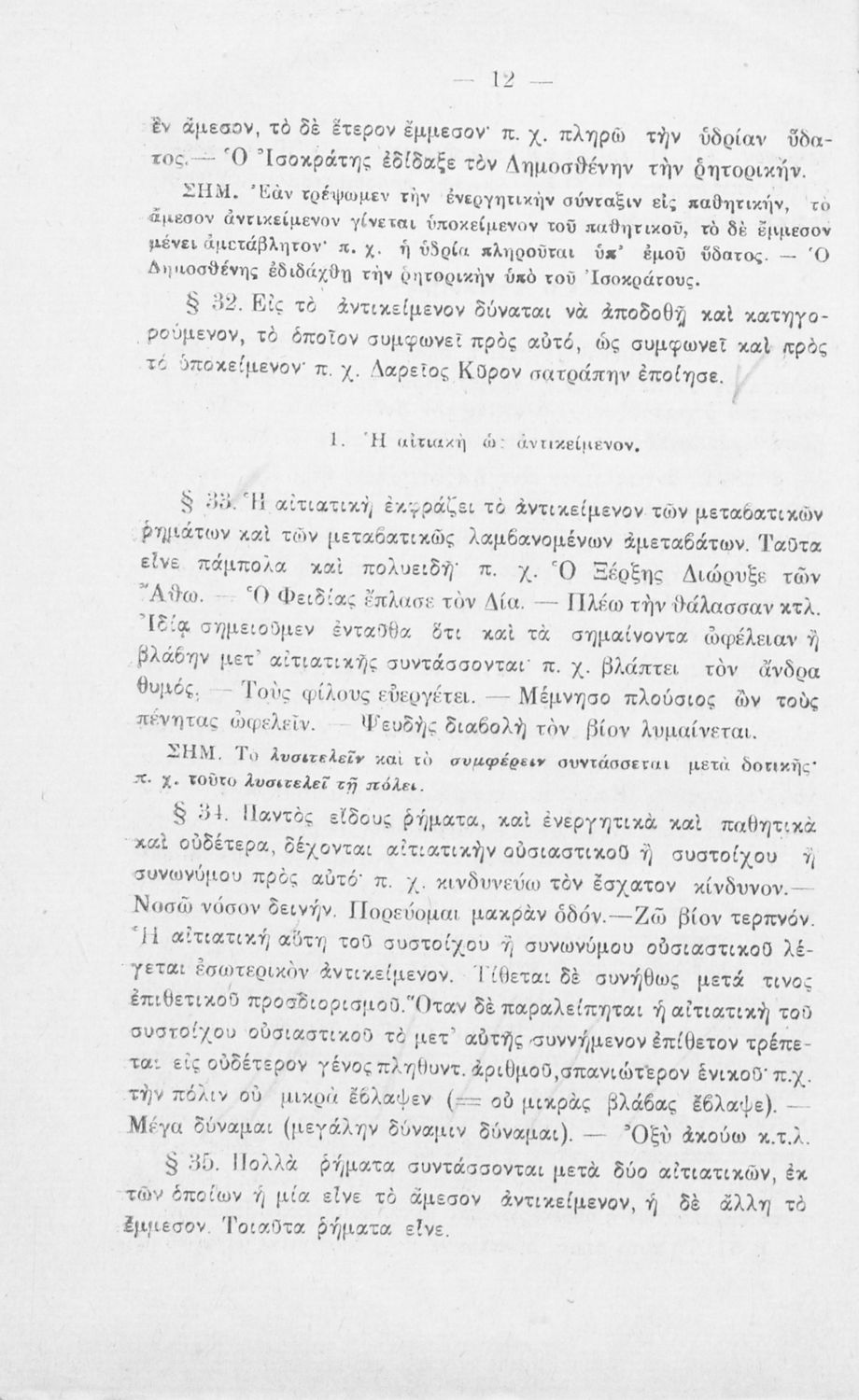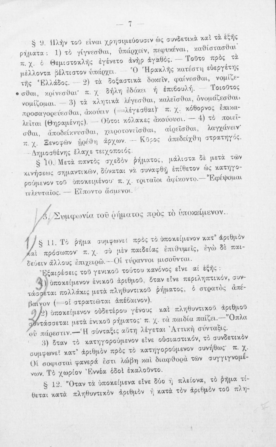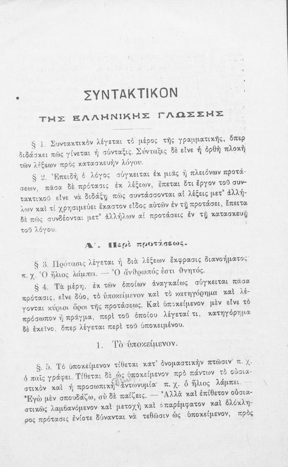 Σχολικό εγχειρίδιο Αρχαίων Ελληνικών για τα Ελληνικά Σχολεία και τα Ανώτερα Παρθεναγωγεία που εξετάζει τα μέρη του λόγου και την σύνταξή τους.